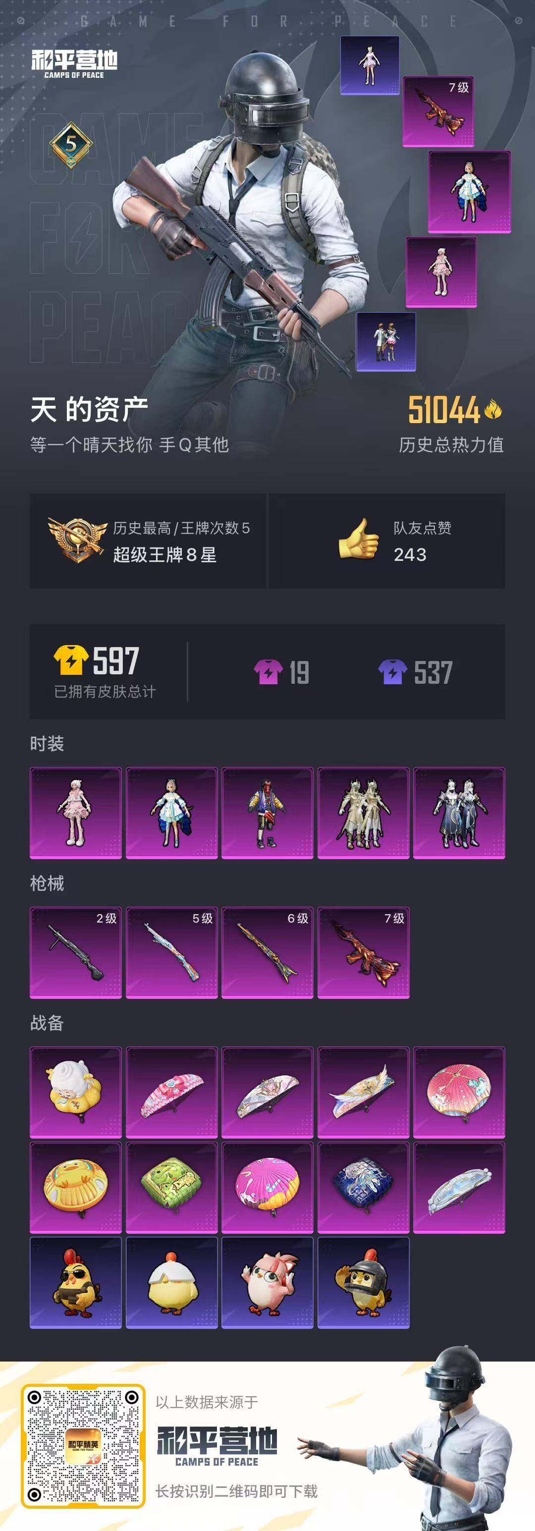 yzj11711-二次-安卓q-5粉装4特效呛11热门127套装169呛皮 51044热力值 精氪小号 洛天依 羊梦糖心 激萌罗小黑 满级m416风花雪月 6级98k创世救赎 春暖花开背包 5印记 历史超级王牌8星 【5粉装】 洛天依 羊梦糖心 射星猎手 天禅智恒 吟月归客 【4特效呛】 kar98k-巳巳如意 5级 dp-28-豹影疾电 2级 kar98k-创世救赎 6级 m41