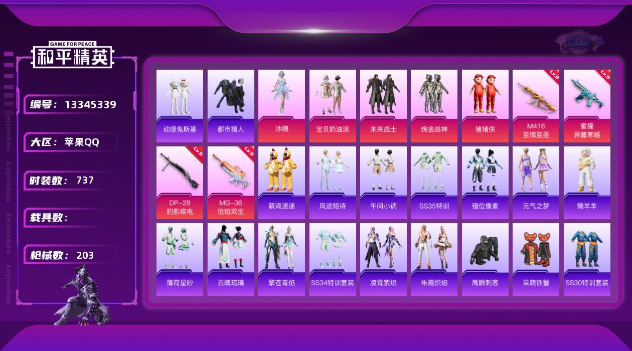 yzj11489 可二次 苹果q-2稀有5粉装4特效呛17热门 极品小身法 m4至情至圣满级 猪猪侠 绚金战神 未来战士 兔斯基 tt战队服 蓝螳螂 187套装203呛皮 61635热力值 13印记 历史卓越王牌16星 【2稀有】 都市猎人 浪漫天命 【5粉装】 冰魄 猪猪侠 宝贝奶油派 未来战士 绚金战神 【4特效呛】 mg-36-沧焰双生 5级 dp-28-豹影疾电 5级 蜜獾-异