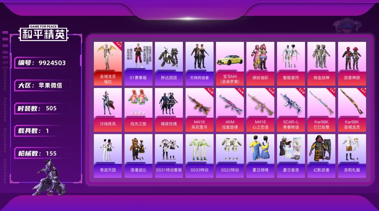 yzj9821-可二次-1神装瑞拉 s1外套 天网 猪妹 发光眼罩 浪漫波比 胖达团团 红眼罩 熔岩游骑兵面罩 苹果v-53449热力值 3王牌印记 历史超级王牌10星 125套装 155呛皮 【1载具】 宝马m4圣保罗黄 【1神装】 圣域龙灵-瑞拉 1级 【3稀有】 s1赛事外套 浪漫天命 天网终结者 【7粉装】 炫光之旅 智能音符 缤纷油彩 放客神游 绚金战神 暗夜玫瑰 沙场疾风