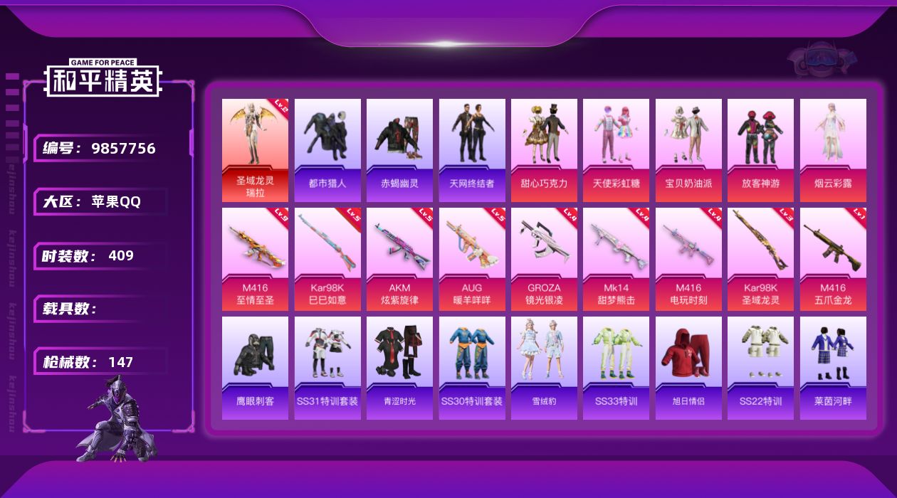 yzj9842-可二次-苹果q-47002热力值 8王牌印记 历史卓越王牌12星 【素材 身法 小极品 红装 瑞拉 2级 满级至情至圣 赤蝎 都市 天命 天网 三姐妹 发光眼罩 tt战队服 红眼罩 金羽 】 104套装 147呛皮 【1神装】 圣域龙灵-瑞拉 2级 【4稀有】 赤蝎幽灵 都市猎人 浪漫天命 天网终结者 【5粉装】 宝贝奶油派 天使彩虹糖 甜心巧克力 烟云彩露 放客神游