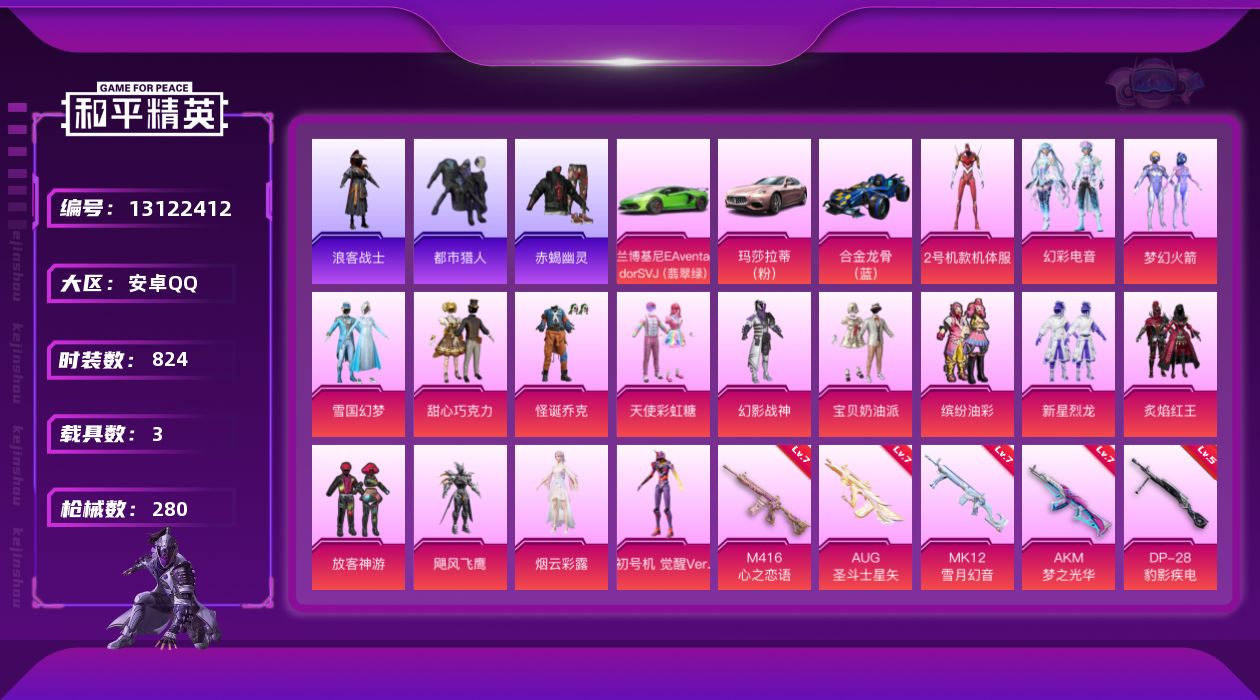 yzj11370-可二次-安卓q-3稀有3载具16粉装10特效呛21热门211套装280呛皮 96845热力值 极品身法精氪素材号 3绝世3传奇4卓越 id(牵手费)怪诞(小丑)雪国 梦幻火箭 甜心三姐妹 红螳螂 觉醒紫螳螂 猪妹 小白龙 幻影战神 都市 赤蝎 狂沙 浅蓝色牛仔衬衣 黑色rock长袖t恤 led发光眼罩 红眼罩 浪客战士 权威小番茄 小黄鸭 浪漫波比 激萌罗小黑 国宝头 粉熊包