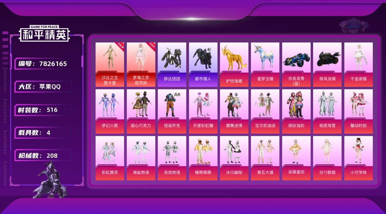 yzj8264 可二次 苹果q-86659热力值 9王牌印记 历史绝世王牌15星 142套装 208呛皮 图卡盟3级 妮芮妲1级 小丑 火箭少女 巧克力三姐妹 觉醒螳螂 m4墨龙6级 【4载具】 合金龙骨蓝色 疾风龙骑 星梦玉骢 护世瑞兽 【2神装】 梦海之灵-妮芮妲 沙丘之主-图卡盟 【3稀有】 akm-缤纷海域 都市猎人 浪漫天命 【26粉装】 觉醒初号机 梦幻火箭 蝶舞迷情 美雪 水仙
