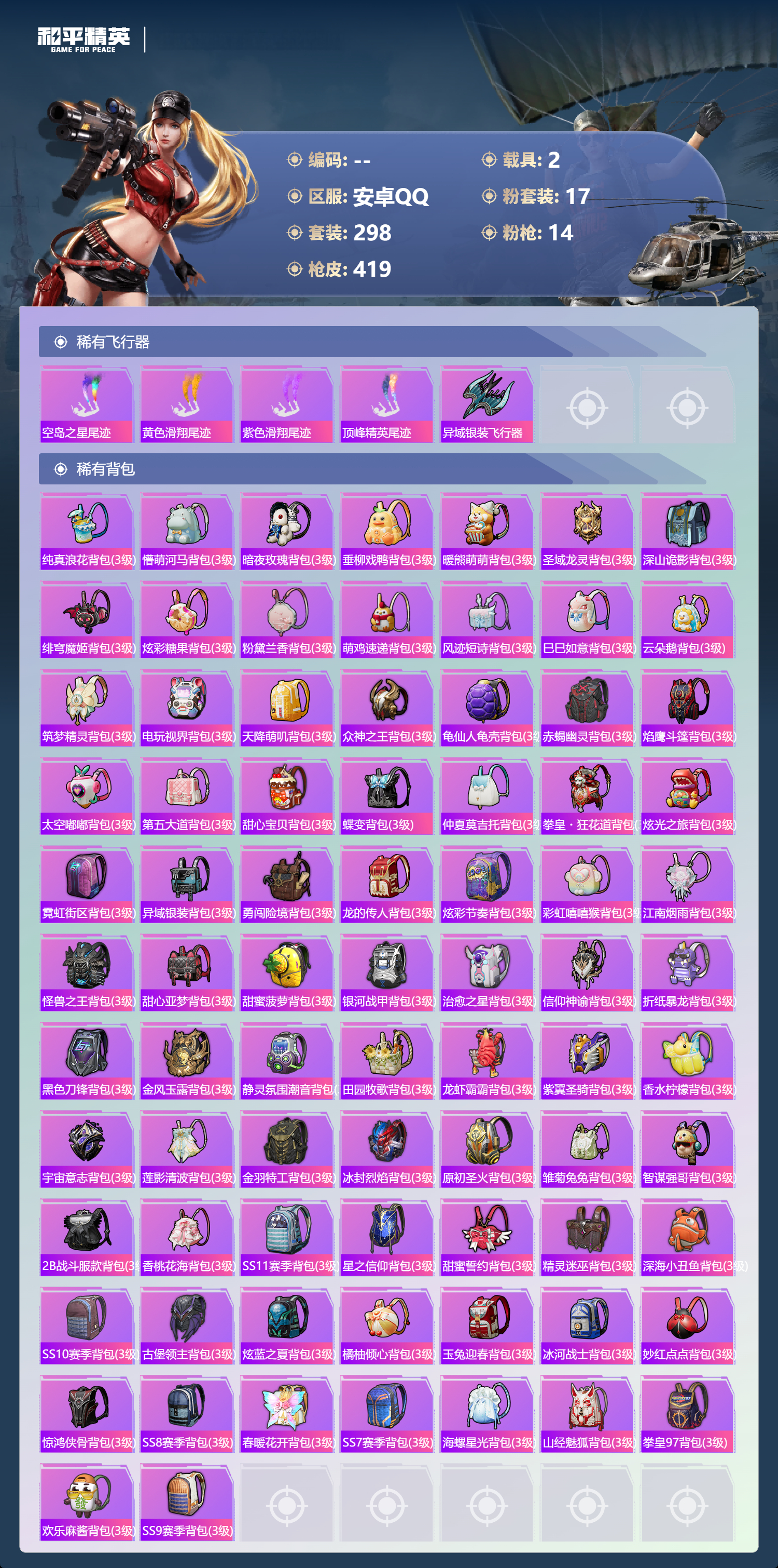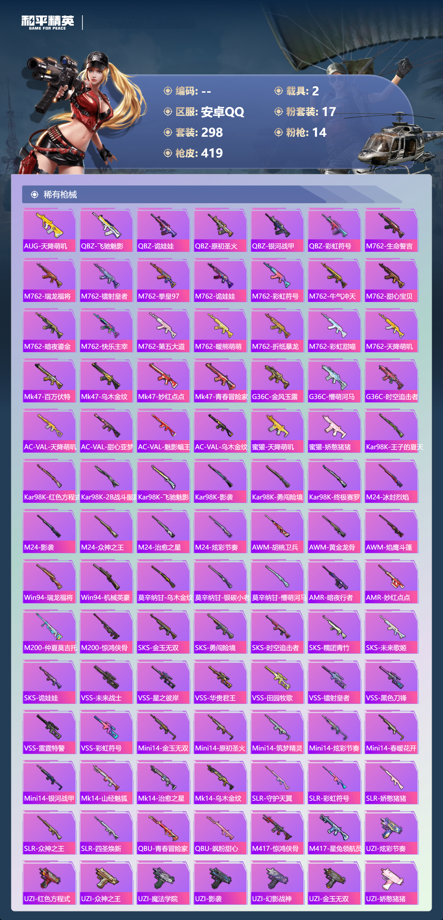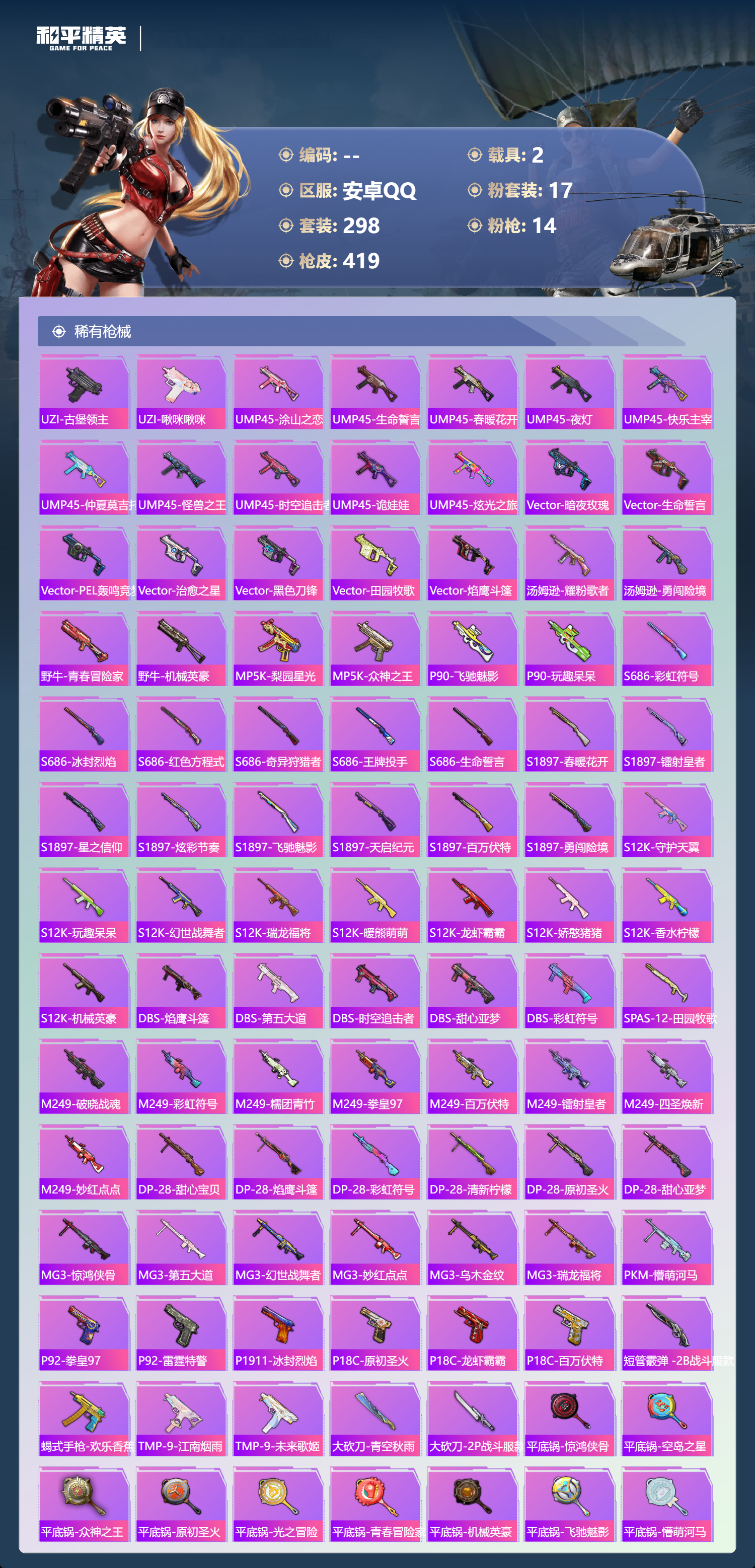 2253658安卓手q-21王牌印记-17粉装-14特效呛-2载具-热力值-298套装-419呛皮-5卓越印记-2传奇印记 【17粉装】套装-麻辣鲜香锅套装-天使彩虹糖套装-仲夏莫吉托套装-放客神游套装-甜心巧克力套装-金曜白虎套装-宝贝奶油派角色-初号机款机体服套装-快乐主宰套装-第五大道套装-蜜语绒猫套装-梦幻火箭套装-pel轰鸣竞梦者套装-橘柚倾心角色-