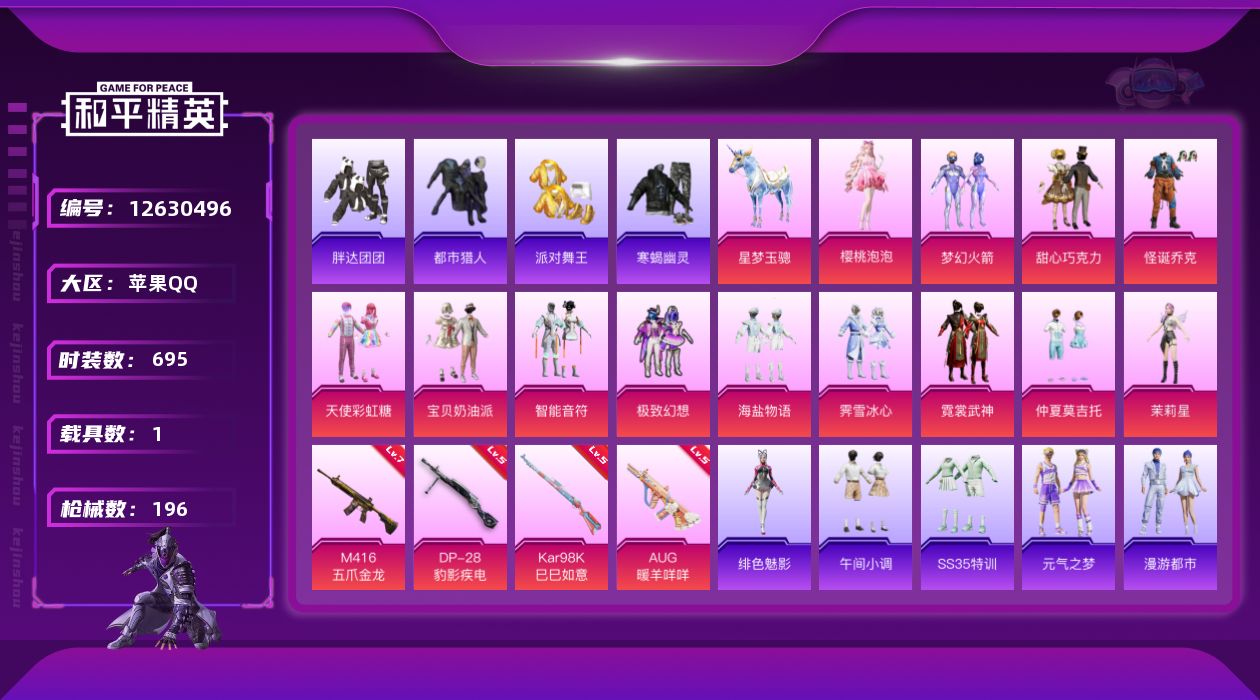 yzj11075可二次 苹果q-5稀有1载具13粉装4特效呛14热门174套装196呛皮 65351热力值 极品身法精氪号 102扭蛋碎片 70荣耀勋章 怪大(小丑)火箭少女 甜心三姐妹 都市 寒蝎 金鞋 天命 狂沙 红眼罩 胖达 ag战队服 鲨鱼服 星空马 粉熊包 1级金域圣龙飞行器 满级m4五爪金龙 特效呛全满级 童趣迷兔头盔背包一套 10印记 历史绝世王牌23星 【5稀有】 寒蝎幽灵