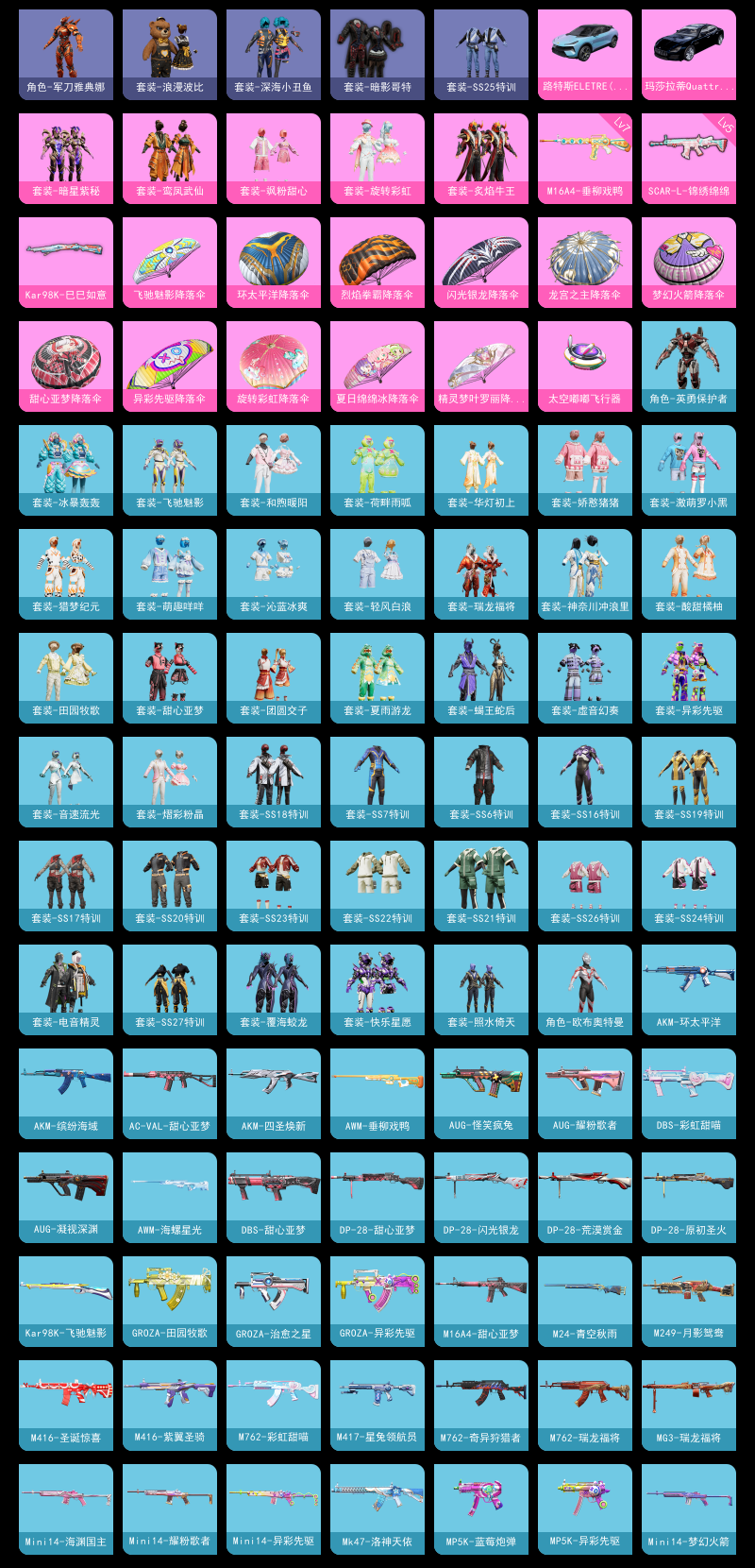 【和平精英】【txhp4254】5粉装,3特效呛,2载具,历史最高段位:超级王牌7星 王牌印记6次 热力值:46839,104套装,138呛械,197装备,88战备;套装:套装-暗星紫秘,套装-炙焰牛王,套装-旋转彩虹,套装-鸾凤武仙,套装-飒粉甜心,套装-白色伏地魔,套装-骑行爱好者,套装-冰川格斗者,套装-竞技名士,套装-深蓝色名流,套装-酒红色名流,套装-长空猛禽,套装-竞技勇士朋克,套装-蓝色守护者,套装-雨林探路者,套装-特战装甲,套装-龙腾端午,套装-沙漠毒蛇,套装-酷萌兔限定,套装-千禧之恋,套装-神秘领域,套装-怒火燎原,套装-魅力单车,套装-绮丽涂鸦,套装-耀眼新星,套装-狂沙舞者,套装-潮流炫酷,套装-沙漠兵团,套装-雪山精英,套装-幻世战舞者,套装-暗影哥特,套装-深海小丑鱼,套装-甜蜜熊情侣,套装-缤纷果语,套装-风暴特警,套装-冰川特警,套装-格斗先锋,套装-麻辣教官,套装-破蛋小黄鸡,套装-疯狂小兔子,套装-浪漫波比,套装-北国孤狼,套装-ss6特训,套装-跃动心情,套装-ss7特训,套装-霓虹街区,套装-激萌罗小黑,套装-夏日音浪,套装-神奈川冲浪里,套装-探宝勇士,套装-牛气满满,套装-战术大师,套装-牛气冲天,套装-ss18特训,套装-电音精灵,角色-欧布奥特曼,套装-快乐星愿,套装-蝎王蛇后,套装-ss16特训,角色-英勇保护者,套装-ss17特训,套装-瑞龙福将,套装-团圆交子,套装-福星高照,套装-虎虎生威吉莉,角色-军刀雅典娜,套装-异彩先驱,套装-霓虹极客,套装-冰暴轰轰,套装-空投萌叽,套装-ss19特训,套装-沁蓝冰爽,套装-飞驰魅影,套装-音速流光,套装-炫蓝之夏,套装-ss20特训,套装-覆海蛟龙,套装-猎梦纪元,套装-甜心亚梦,套装-虚音幻奏,套装-ss21特训,套装-萌趣咩咩,套装-娇憨猪猪,套装-夏雨游龙,套装-荷畔雨呱,套装-酸甜橘柚,角色-李,套装-玉兔迎春,套装-ss22特训,套装-和煦暖阳,套装-田园牧歌,套装-轻风白浪,套装-照水倚天,套装-熠彩粉晶,套装-光之冒险,套装-绯格组合,套装-ss23特训,套装-ss24特训,套装-华灯初上,套装-ss25特训,套装-龙的传人,套装-ss26特训,套装-空岛之星,套装-ss27特训;呛皮:akm-缤纷海域,akm-破晓战魂,akm-霓虹街区,akm-四圣焕新,akm-虎虎生威,akm-环太平洋,akm-龙的传人,5级scar-l-锦绣绵绵,scar-l-红色方程式,scar-l-炫彩节奏,scar-l-玉兔迎春,scar-l-乌木金纹,ac-val-甜心亚梦,ac-val-乌木金纹,ac-val-天降萌叽,蜜獾-娇憨猪猪,蜜獾-垂柳戏鸭,蜜獾-天降萌叽,m416-蓝色火焰,m416-红色方程式,m416-紫翼圣骑,m416-圣诞惊喜,m416-糯团青竹,mk47-洛神天依,mk47-乌木金纹,7级m16a4-垂柳戏鸭,m16a4-蓝色火焰,m16a4-红色方程式,m16a4-甜心亚梦,m16a4-幻世战舞者,aug-凝视深渊,aug-耀粉歌者,aug-怪笑疯兔,aug-天降萌叽,m762-奇异狩猎者,m762-牛气冲天,m762-瑞龙福将,m762-彩虹甜喵,m762-天降萌叽,groza-治愈之星,groza-异彩先驱,groza-田园牧歌,q-飞驰魅影,q-未来歌姬,g36c-乌木金纹,awm-垂柳戏鸭,awm-海螺星光,1级kar98k-巳巳如意,kar98k-红色方程式,kar98k-飞驰魅影,kar98k-乌木金纹,win94-瑞龙福将,amr-乌木金纹,m24-炫彩节奏,m24-青空秋雨,m24-乌木金纹,莫辛纳甘-乌木金纹,slr-娇憨猪猪,slr-彩虹符号,vss-未来战士,vss-星之彼岸,vss-田园牧歌,vss-绿野极光,vss-乌木金纹,mini14-梦幻火箭,mini14-耀粉歌者,mini14-海渊国主,mini14-异彩先驱,mk14-乌木金纹,sks-浪客战士,sks-糯团青竹,m417-星兔领航员,mp5k-蓝莓炮弹,mp5k-异彩先驱,mp5k-飒粉甜心,mp5k-乌木金纹,vect-生命誓言,vect-暗夜玫瑰,vect-田园牧歌,vect-乌木金纹,uzi-红色方程式,uzi-影袭,uzi-幻影战神,uzi-炫彩节奏,uzi-烈焰拳霸,uzi-娇憨猪猪,uzi-啾咪啾咪,汤姆逊-耀粉歌者,汤姆逊-炫彩节奏,汤姆逊-异彩先驱,汤姆逊-环太平洋,汤姆逊-暗夜鎏金,汤姆逊-天降萌叽,汤姆逊-乌木金纹,野牛-夜灯,野牛-乌木金纹,ump45-蓝色火焰,ump45-春暖花开,ump45-天启纪元,p90-飞驰魅影,p90-乌木金纹,dbs-甜心亚梦,dbs-彩虹甜喵,s12k-破晓战魂,s12k-瑞龙福将,s12k-娇憨猪猪,s12k-垂柳戏鸭,s12k-幻世战舞者,s12k-玩趣呆呆,s686-红色方程式,s686-深海曼妙,s1897-百万伏特,s1897-炫彩节奏,s1897-飞驰魅影,spas-12-田园牧歌,dp-28-原初圣火,dp-28-荒漠赏金,dp-28-甜心亚梦,dp-28-闪光银龙,mg3-瑞龙福将,mg3-幻世战舞者,mg3-乌木金纹,m249-破晓战魂,m249-月影鸳鸯,m249-彩虹符号,m249-糯团青竹,平底锅-瑞龙福将,平底锅-空投萌叽,平底锅-异彩先驱,平底锅-飞驰魅影,平底锅-甜心亚梦,平底锅-娇憨猪猪,平底锅-田园牧歌,平底锅-光之冒险,平底锅-空岛之星,撬棍-环太平洋,撬棍-幻世战舞者,破片手留单-呆爆全场;载具:玛莎拉蒂quattropte夜幕蓝,路特斯eletre冰川蓝;降落伞:太空嘟嘟飞行器,粉色滑翔尾迹,火焰蝠人飞行服,光之冒险尾迹,空岛之星尾迹; 详情看图4.6w热力值-5粉小丑鱼哥特浪漫波比-3特-2载具