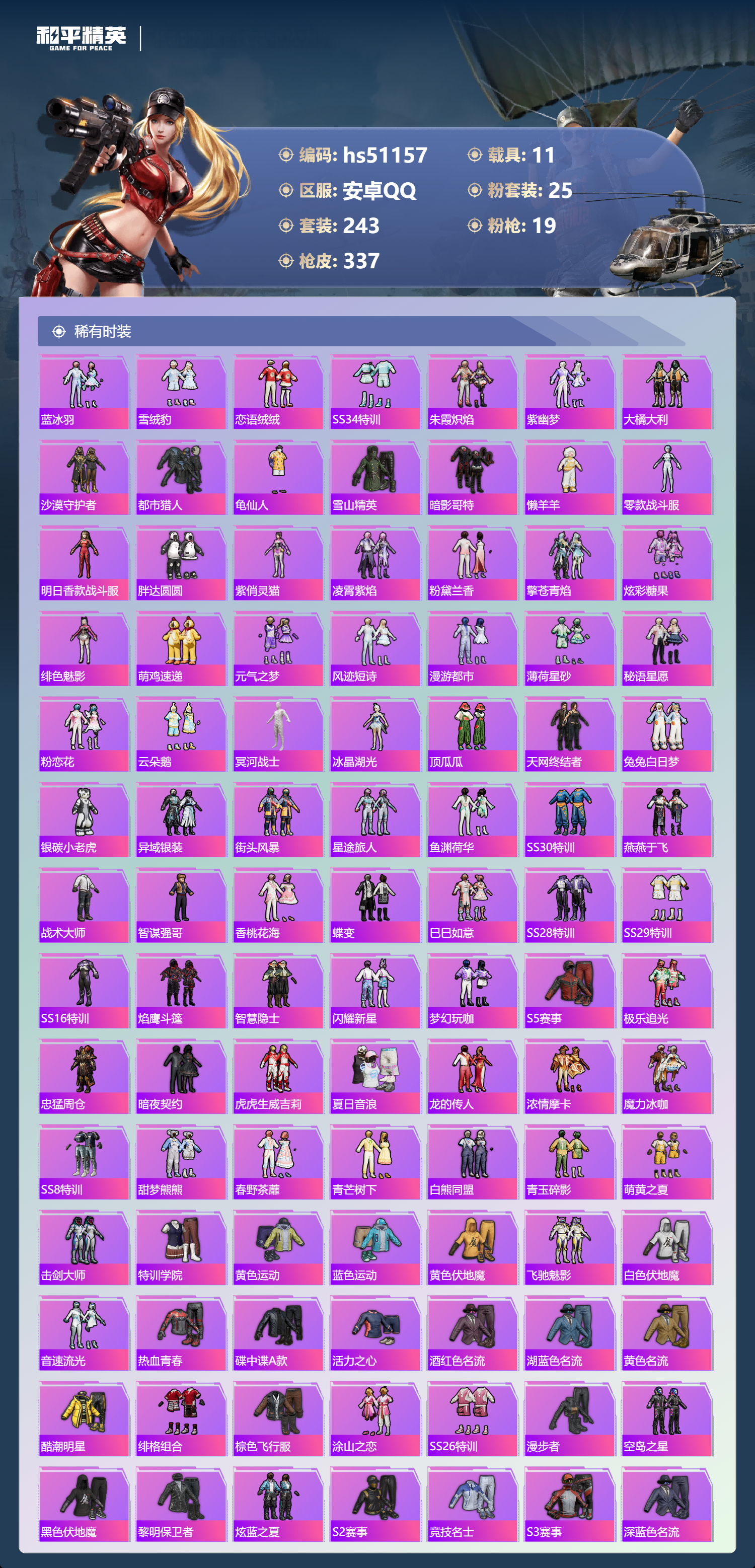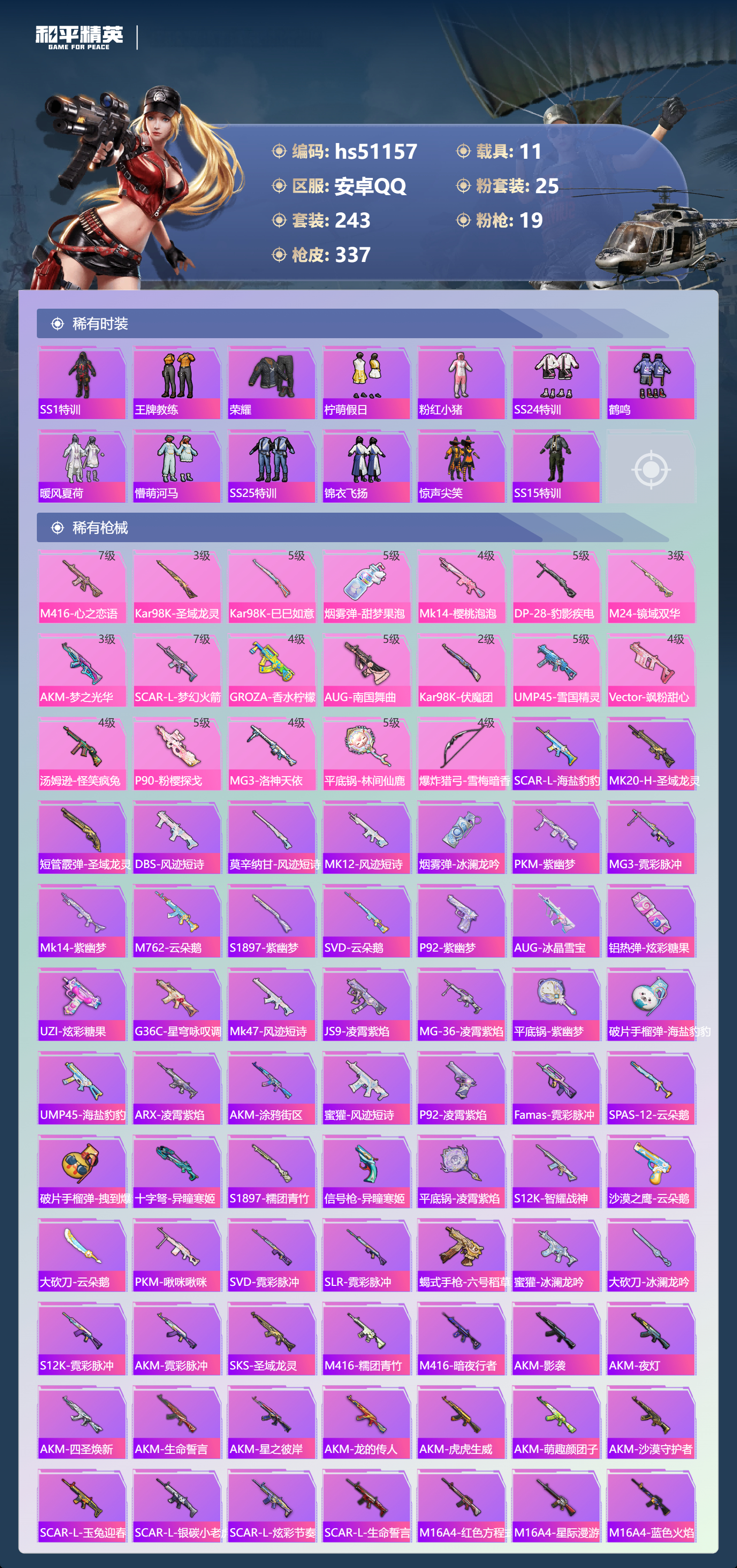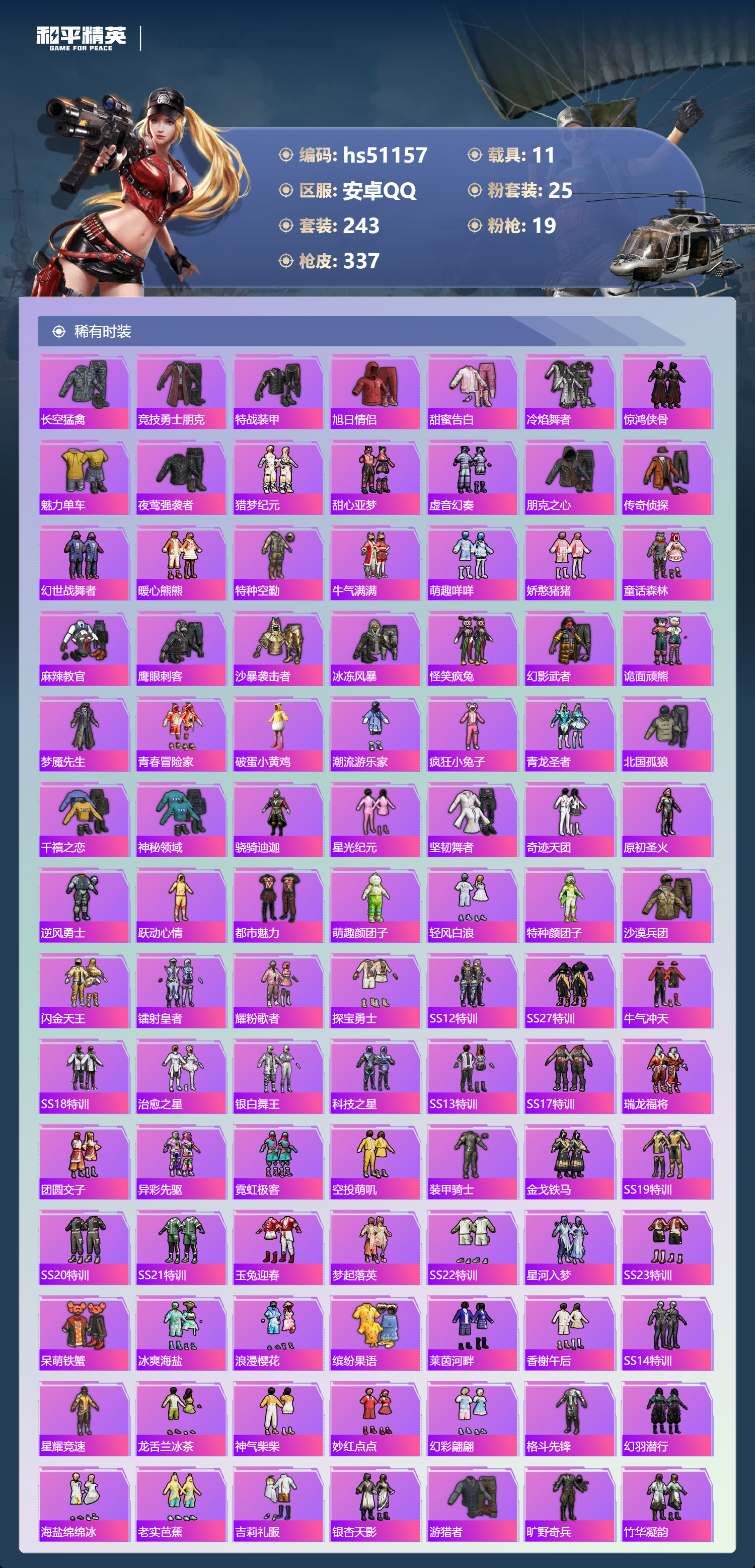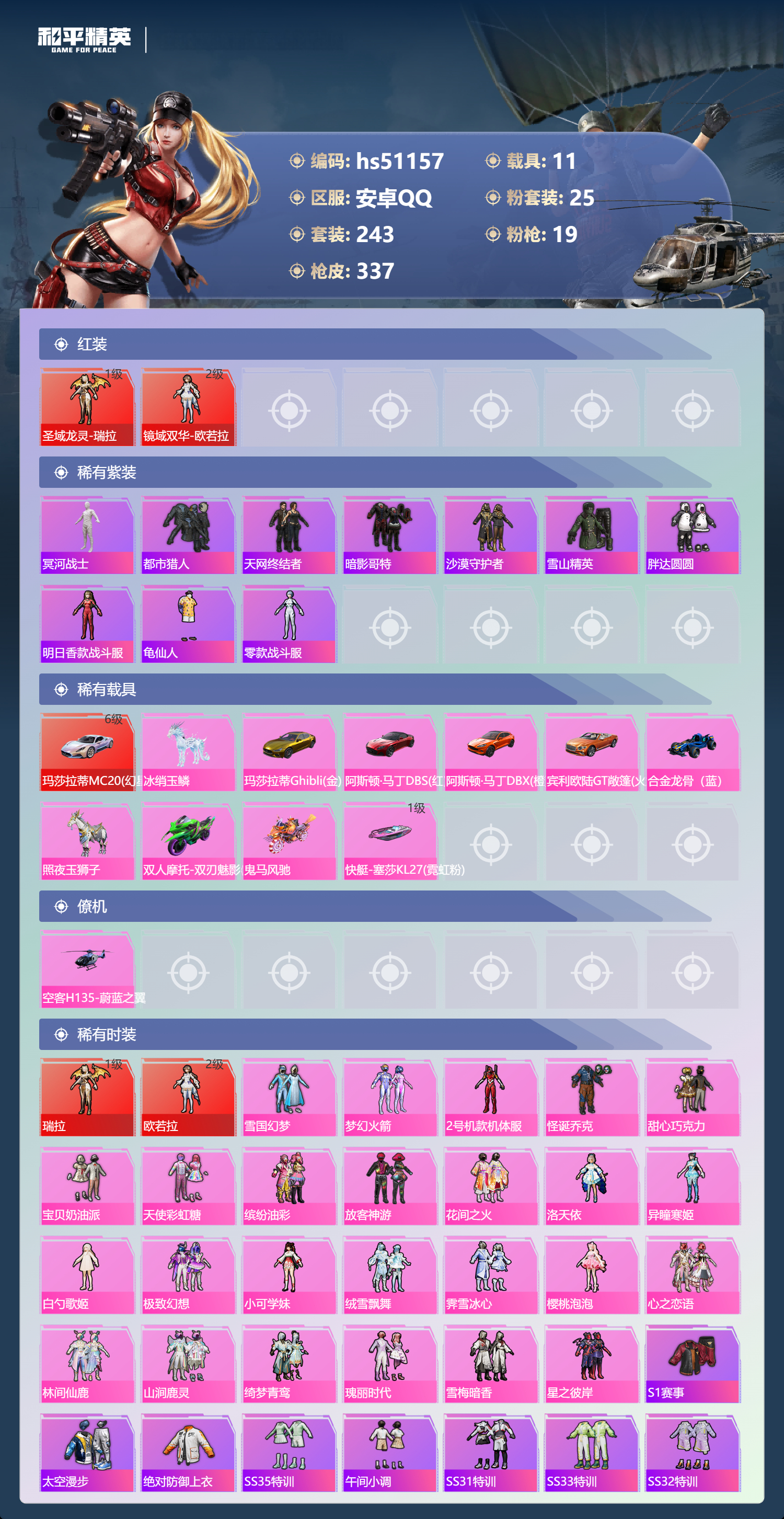 hs51157 安卓手q-25王牌印记-2红装-25粉装-19特效呛-11载具-热力值-243套装-337呛皮-8卓越印记-5传奇印记【2红装】圣域龙灵-瑞拉/1级镜域双华-欧若拉/2级【25粉装】套装-雪梅暗香套装-绮梦青鸾角色-异瞳寒姬套装-星之彼岸套装-极致幻想套装-心之恋语角色-小可学妹套装-梦幻火箭角色-洛天依套装-山涧鹿灵套装-雪国幻梦套装-缤纷