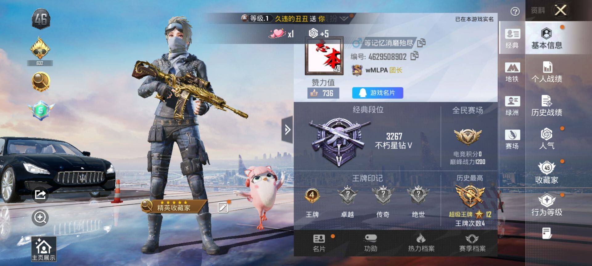 yzj11927 二次 安卓q-1稀有1载具9粉装4特效呛8热门 身法小女号 都市 泳衣 旋转彩虹 暗夜行者 狮王雄心 五爪6级 m4狮王雄心 ak影袭 暗夜行者头盔背包 67套装77呛皮 28394热力值 4印记 历史超级王牌12星 【1稀有】 都市猎人 【1载具】 玛莎拉蒂q蓝色 【9粉装】 火曜朱雀 霓裳武神 仲夏莫吉托 数码大师 冰川幽秘 星之彼岸 海螺星光 冰川红玫 旋转彩虹 【4