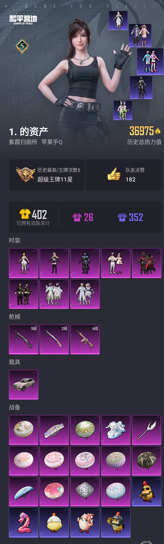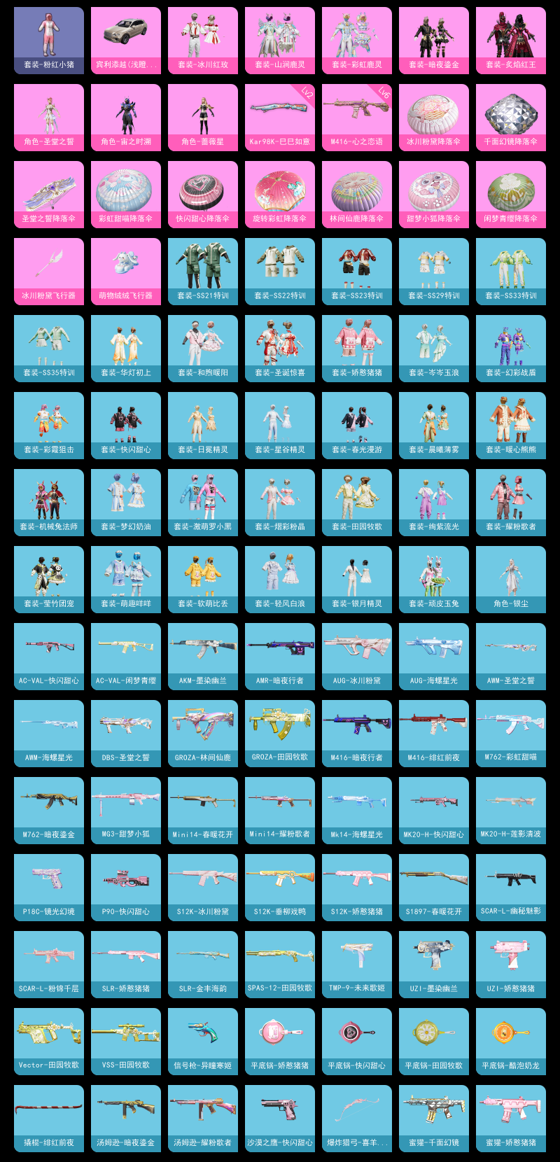 【和平精英】【lyhp16860】8粉装3特效呛1载具 圣堂之誓 罗小黑 6级恋语m4 宾利 8粉装,3特效呛,1载具,历史最高段位:超级王牌11星 王牌印记5次 热力值:36975,84套装,110呛械,135装备,59战备;套装:套装-炙焰红王,套装-彩虹鹿灵,套装-山涧鹿灵,套装-冰川红玫,套装-暗夜鎏金,角色-蔷薇星,角色-宙之时溯,角色-圣堂之誓,套装-白色伏地魔,套装-竞技名士,套装-长空猛禽,套装-海岛探路者,套装-旭日情侣,套装-人气偶像,套装-酷萌兔限定,套装-魅力单车,套装-绮丽涂鸦,套装-耀眼新星,套装-都市漫游者,套装-野性战心,套装-荣耀,套装-幻世战舞者,套装-甜蜜熊情侣,套装-缤纷果语,套装-麻辣教官,套装-粉红小猪,套装-破蛋小黄鸡,套装-疯狂小兔子,套装-霓虹街区,套装-激萌罗小黑,套装-萌黄之夏,套装-顽皮玉兔,套装-牛气满满,套装-机械兔法师,套装-牛气冲天,套装-耀粉歌者,套装-飞行日记,套装-圣诞惊喜,套装-ss21特训,套装-暖心熊熊,套装-萌趣咩咩,套装-娇憨猪猪,套装-梦幻奶油,套装-玉兔迎春,套装-ss22特训,套装-和煦暖阳,套装-田园牧歌,套装-轻风白浪,套装-莹竹团宠,套装-岑岑玉浪,套装-熠彩粉晶,套装-软萌比丢,套装-光之冒险,套装-绯格组合,套装-ss23特训,套装-日冕精灵,套装-银月精灵,套装-星谷精灵,套装-绚紫流光,套装-华灯初上,套装-龟仙人,套装-涂山之恋,套装-晨曦薄雾,套装-香桃花海,套装-龙的传人,套装-冰河战士,套装-快闪甜心,套装-春光漫游,套装-空岛之星,套装-幻彩战盾,套装-彩霞狙击,角色-银尘,套装-海盐绵绵冰,套装-蝶变,套装-ss29特训,角色-无面战甲,套装-ss30特训,套装-ss31特训,套装-ss33特训,套装-ss32特训,套装-元气之梦,套装-ss34特训,套装-ss35特训,套装-萌鸡速递;呛皮:scar-l-彩虹符号,scar-l-玉兔迎春,scar-l-幽秘魅影,scar-l-粉锦千层,scar-l-海盐豹豹,q-彩虹符号,6级m416-心之恋语,m416-绯红前夜,m416-红色方程式,m416-暗夜行者,ac-val-乌木金纹,ac-val-天降萌叽,ac-val-闲梦青缨,ac-val-快闪甜心,m762-彩虹甜喵,m762-暗夜鎏金,蜜獾-娇憨猪猪,蜜獾-千面幻镜,蜜獾-天降萌叽,蜜獾-乌木金纹,m16a4-幻世战舞者,m16a4-冰河战士,akm-涂鸦街区,akm-彩虹符号,akm-墨染幽兰,akm-霓彩脉冲,famas-霓彩脉冲,famas-乌木金纹,aug-冰川粉黛,aug-海螺星光,aug-天降萌叽,groza-林间仙鹿,groza-田园牧歌,groza-海盐豹豹,groza-无面战甲,mk47-乌木金纹,awm-海螺星光,awm-圣堂之誓,2级kar98k-巳巳如意,amr-暗夜行者,amr-乌木金纹,m24-乌木金纹,win94-乌木金纹,莫辛纳甘-乌木金纹,mini14-春暖花开,mini14-耀粉歌者,mini14-涂山之恋,mini14-香桃花海,mk14-乌木金纹,mk14-海螺星光,mk14-冰河战士,mk14-紫晶流影,vss-田园牧歌,vss-彩虹符号,slr-娇憨猪猪,slr-金丰海韵,slr-霓彩脉冲,mk20-h-莲影清波,mk20-h-快闪甜心,mk20-h-乌木金纹,sks-炫彩节奏,sks-糯团青竹,汤姆逊-耀粉歌者,汤姆逊-暗夜鎏金,汤姆逊-天降萌叽,p90-快闪甜心,p90-玩趣呆呆,p90-乌木金纹,vect-田园牧歌,ump45-涂山之恋,uzi-娇憨猪猪,uzi-墨染幽兰,uzi-冰河战士,uzi-啾咪啾咪,aks-74u-乌木金纹,mp5k-乌木金纹,s12k-娇憨猪猪,s12k-冰川粉黛,s12k-垂柳戏鸭,s12k-霓彩脉冲,spas-12-田园牧歌,spas-12-乌木金纹,s1897-春暖花开,s1897-炫彩节奏,dbs-圣堂之誓,dbs-乌木金纹,s686-生命誓言,m249-彩虹符号,m249-糯团青竹,m249-无面战甲,mg3-甜梦小狐,mg3-幻世战舞者,mg3-乌木金纹,5级dp-28-豹影疾电,沙墨之鹦-快闪甜心,p1911-无面战甲,p18c-镜光幻境,信号呛-异瞳寒姬,tmp-9-未来歌姬,撬棍-绯红前夜,平底锅-飞行日记,平底锅-娇憨猪猪,平底锅-田园牧歌,平底锅-酷泡奶龙,平底锅-快闪甜心,平底锅-空岛之星,破片手留单-呆爆全场,破片手留单-拽到爆炸,爆炸猎弓-喜羊羊与灰太狼,盐雾蛋-冰氧夏日;载具:宾利添越浅瞪羚棕;降落伞:冰川粉黛飞行器,萌物绒绒飞行器,空岛之星尾迹; 详情看图
