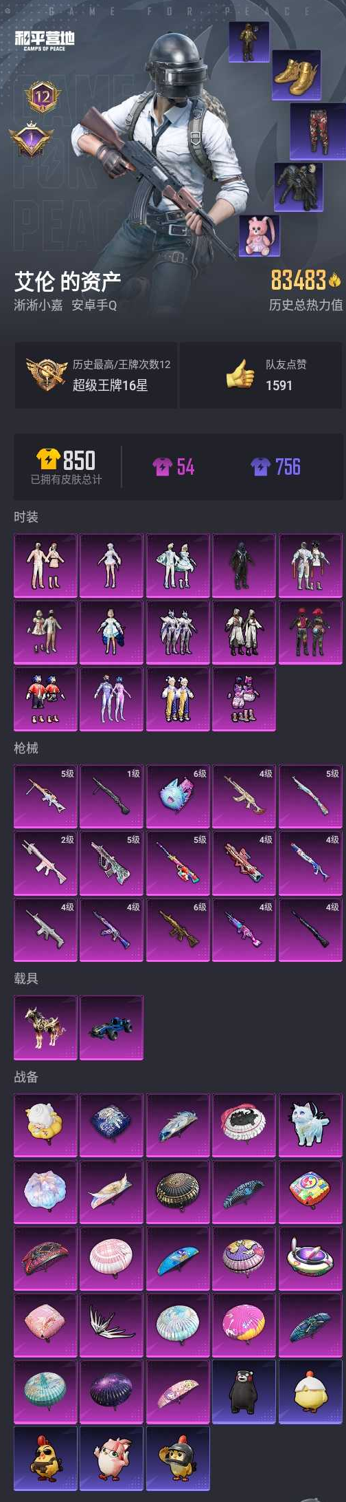【和平精英】【lyhp16830】14粉15特效呛2载 男神套【都市猎人 赤蝎幽灵 派对舞王】梦幻火箭 洛天依 第五大道 智能音符 放克救赎 多呛型 m4金龙 akm星际 scar-l童话 蓝猫手蕾 合金龙骨 黑耀马 粉熊背包 14粉装,15特效呛,2载具,历史最高段位:超级王牌16星 王牌印记12次 热力值:83548,180套装,243呛械,273装备,127战备;套装:套装-银河战甲,套装-宝贝奶油派,套装-梦幻火箭,套装-智能音符,套装-放客神游,角色-洛天依,套装-蓝莓炮弹,套装-精灵娃娃,套装-紫电风暴,套装-音爆索尼克,套装-第五大道,套装-雪梅暗香,套装-雪月幻音,角色-荧海星豚,套装-特训学院,套装-猎鹰,套装-青年教官,套装-橘黑制服,套装-红色运动,套装-黄色运动,套装-蓝色运动,套装-黄色伏地魔,套装-白色伏地魔,套装-黑色伏地魔,套装-冰川格斗者,套装-竞技名士,套装-深蓝色名流,套装-湖蓝色名流,套装-黄色名流,套装-猛禽,套装-长空猛禽,套装-漫步者,套装-黎明保卫者,套装-雨林探路者,套装-旭日情侣,套装-赤蝎幽灵,套装-冷焰舞者,套装-都市猎人,套装-水银刺客,套装-浪漫天命,套装-特战装甲,套装-贵族骑装,套装-灰色格斗者,套装-冰冻风暴,套装-完美偶像,套装-特战英豪,套装-千禧之恋,套装-怒火燎原,套装-魅力单车,套装-绮丽涂鸦,套装-狂战萌兔,套装-竞技达人朋克,套装-野性战心,套装-狂沙舞者,套装-萌熊伴侣,套装-派对舞王,套装-幻世战舞者,套装-清新柠檬,套装-奇异狩猎者,套装-金耀舞者,套装-暗影哥特,套装-弄潮海豚,套装-缤纷果语,套装-滨海厨神,套装-alan walker,套装-冰川特警,套装-星河浪客,套装-胖达团团,套装-胖达圆圆,套装-麻辣教官,套装-金环蜂王,套装-粉红小猪,套装-闪耀星光,套装-鹤鸣,套装-霓虹街区,套装-激萌罗小黑,套装-白熊同盟,套装-萌黄之夏,套装-击剑大师,套装-夏日音浪,套装-探宝勇士,套装-牛气满满,套装-潮流游乐家,套装-战术大师,套装-牛气冲天,套装-ss18特训,套装-治愈之星,套装-科技之星,套装-飞行日记,套装-梦起落英,套装-星河入梦,套装-浪漫樱花,套装-ss14特训,套装-ss15特训,套装-暗夜傀儡,套装-ss17特训,套装-瑞龙福将,套装-团圆交子,套装-冰爽风暴,套装-爆裂葡萄,套装-炫光向阳,套装-福星高照,套装-缤纷焰火,套装-异彩先驱,套装-霓虹极客,套装-空投萌叽,套装-ss19特训,套装-沁蓝冰爽,套装-极速竞梦,套装-飞驰魅影,套装-音速流光,套装-炫蓝之夏,套装-ss20特训,套装-猎梦纪元,套装-甜心亚梦,套装-虚音幻奏,套装-ss21特训,套装-萌趣咩咩,套装-娇憨猪猪,套装-荷畔雨呱,套装-玉兔迎春,套装-ss22特训,套装-和煦暖阳,套装-田园牧歌,套装-轻风白浪,套装-光之冒险,套装-绯格组合,套装-ss23特训,套装-摩登艾咪,套装-飞狐塔尔斯,套装-莱茵河畔,套装-香榭午后,套装-神气柴柴,套装-懵萌河马,套装-灵蜜圈圈,套装-妙红点点,套装-幻彩翩翩,套装-竹华凝韵,套装-ss24特训,套装-华灯初上,角色-短笛,套装-龟仙人,套装-涂山之恋,套装-ss25特训,套装-惊鸿侠骨,套装-锦衣飞扬,套装-沙丘之歌,套装-深海梦境,套装-果汁能量,套装-龙的传人,套装-ss26特训,套装-快闪甜心,套装-春光漫游,套装-贝斯之夜,套装-幻羽潜行,套装-ss27特训,套装-恋语绒绒,套装-异域银装,角色-夜瞳黯灵,角色-绛羽幽主,套装-ss31特训,套装-ss33特训,套装-云朵鹅,套装-巳巳如意,套装-ss32特训,套装-彩虹兔,套装-雪绒豹,玩偶服-懒羊羊,套装-蓝海鲸歌,玩偶服-喜羊羊,套装-元气之梦,套装-ss34特训,套装-擎苍青焰,套装-朱霞炽焰,套装-游乐,套装-凌霄紫焰,套装-薄荷星砂,套装-ss35特训,套装-午间小调,套装-萌鸡速递;呛皮:4级akm-星际浪客,akm-灼热熔岩,akm-生命誓言,akm-冰凉西瓜,akm-奇异狩猎者,akm-破晓战魂,akm-星之信仰,akm-霓虹街区,akm-夜灯,akm-彩虹符号,akm-环太平洋,akm-霓彩脉冲,g36c-绮梦青鸾,g36c-懵萌河马,g36c-乌木金纹,ac-val-甜心亚梦,ac-val-乌木金纹,ac-val-天降萌叽,ac-val-快闪甜心,蜜獾-娇憨猪猪,蜜獾-精灵梦叶罗丽,蜜獾-乌木金纹,6级m416-五爪金龙,m416-夜灯,m416-蓝色火焰,m416-红色方程式,m416-动感兔斯基,m416-月影鸳鸯,m416-糯团青竹,m416-魔童闹海 敖闰,groza-影袭,groza-春暖花开,groza-治愈之星,groza-彩虹符号,groza-蓝莓炮弹,groza-异彩先驱,groza-田园牧歌,groza-懵萌河马,4级scar-l-纯梦嫁纱,scar-l-红色方程式,scar-l-黄金龙骨,scar-l-玫瑰恋情,scar-l-炫彩节奏,scar-l-玉兔迎春,mk47-乌木金纹,mk47-妙红点点,mk47-炫光之旅,mk47-风迹短诗,4级m762-鬼刀,m762-奇异狩猎者,m762-镭射皇者,m762-烈焰拳霸,m762-瑞龙福将,m762-第五大道,m762-天降萌叽,m762-云朵鹅,5级aug-超新星,aug-甜蜜菠萝,aug-青春冒险家,aug-流星咚咚,aug-天降萌叽,famas-霓彩脉冲,famas-乌木金纹,q-彩虹符号,q-飞驰魅影,arx-凌霄紫焰,m16a4-蓝色火焰,m16a4-甜心亚梦,m16a4-幻世战舞者,awm-音爆索尼克,awm-焰鹰斗篷,awm-乌木金纹,4级m24-星之信仰,m24-影袭,m24-奇异狩猎者,m24-治愈之星,m24-香水柠檬,m24-炫彩节奏,m24-乌木金纹,m200-雪梅暗香,m200-惊鸿侠骨,m200-乌木金纹,5级amr-炫光之旅,amr-妙红点点,amr-喜羊羊与灰太狼,amr-乌木金纹,莫辛纳甘-乌木金纹,莫辛纳甘-懵萌河马,莫辛纳甘-风迹短诗,5级kar98k-巳巳如意,kar98k-影袭,kar98k-金玉无双,kar98k-彩虹符号,kar98k-炫彩节奏,kar98k-蓝莓炮弹,kar98k-飞驰魅影,win94-瑞龙福将,win94-乌木金纹,svd-云朵鹅,2级m417-第五大道,m417-惊鸿侠骨,mini14-金玉无双,mini14-梦幻火箭,mini14-异彩先驱,mini14-涂山之恋,mini14-香桃花海,mini14-绯穹魔姬