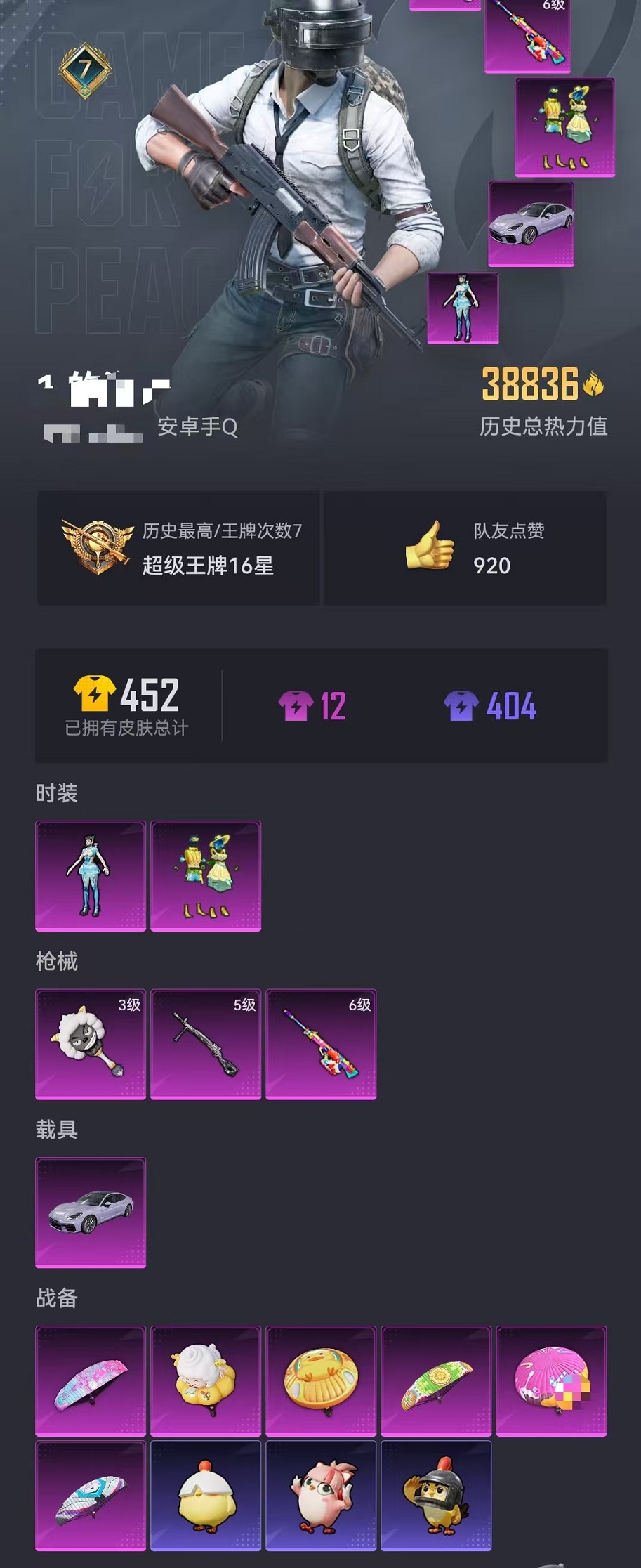 可二次【保时捷 2粉装3特效呛1载具可秒换绑】 安卓-38836热力值-7印记-102套装-122呛皮 【1载具】 保时捷panamera星辰紫【1稀有】 akm-百万伏特【2粉装】 香水柠檬 角色-异瞳寒姬【3特效呛】 amr-炫光之旅6级 dp-28-豹影疾电5级 平底锅-喜羊羊与灰太狼3级【31热门】 m416-葫芦兄弟 groza-蓝莓炮弹 长空猛禽 牛气冲天 霓虹街区