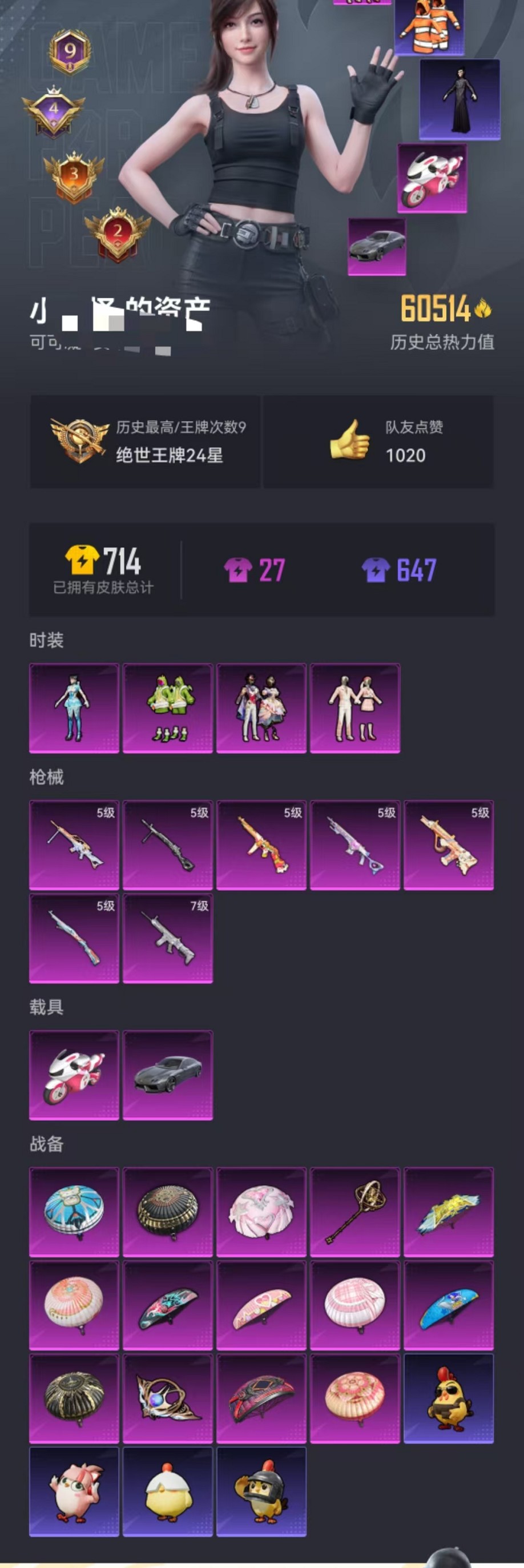 【4粉装7特效呛2载具可秒换绑】 安卓q区-60514热力值-9印记-146套装-189呛皮 【2载具】 兰博轿车灰色 极速兔兔车【4粉装】 第五大道 恐龙拽拽 星穹咏叹调 角色-异瞳寒姬【7特效呛】 scar-l-纯梦嫁纱7级 mk14-甜梦熊击5级 汤姆逊-热量炸弹5级 kar98k-巳巳如意5级 dp-28-豹影疾电5级 aug-暖羊咩咩5级 mg-36-沧焰双生