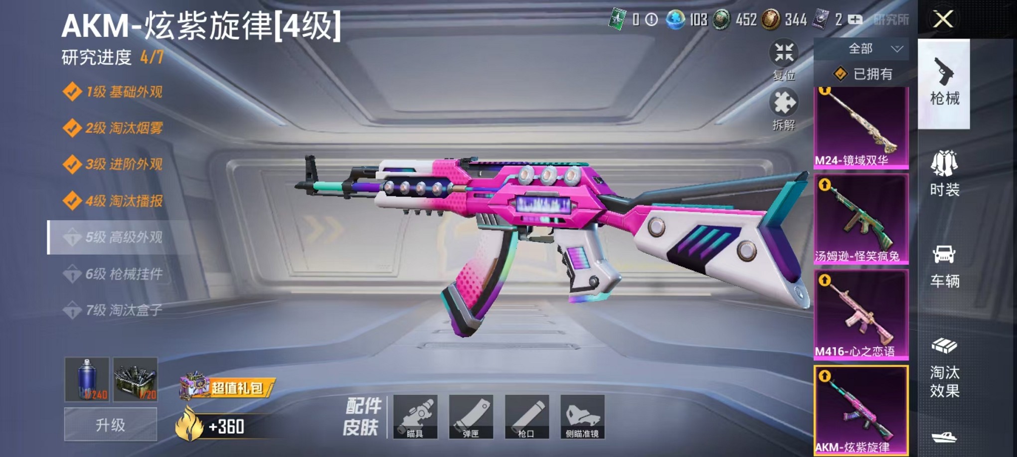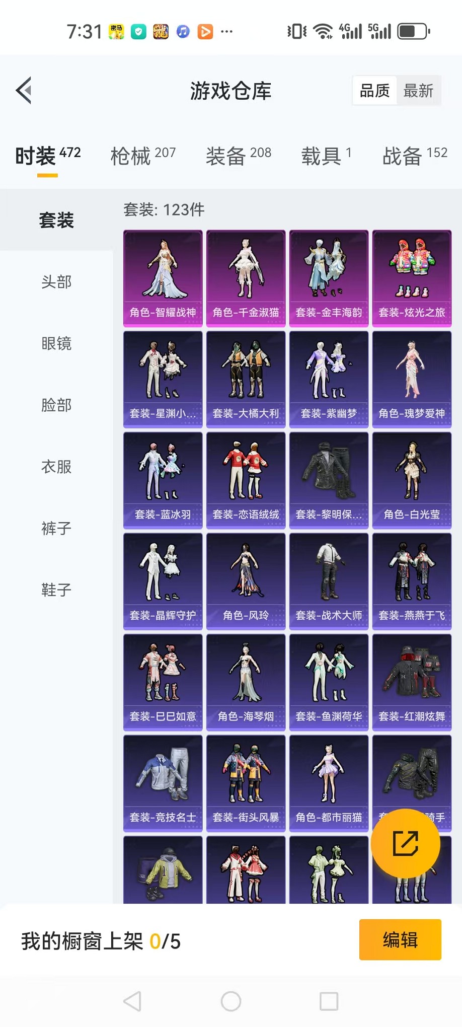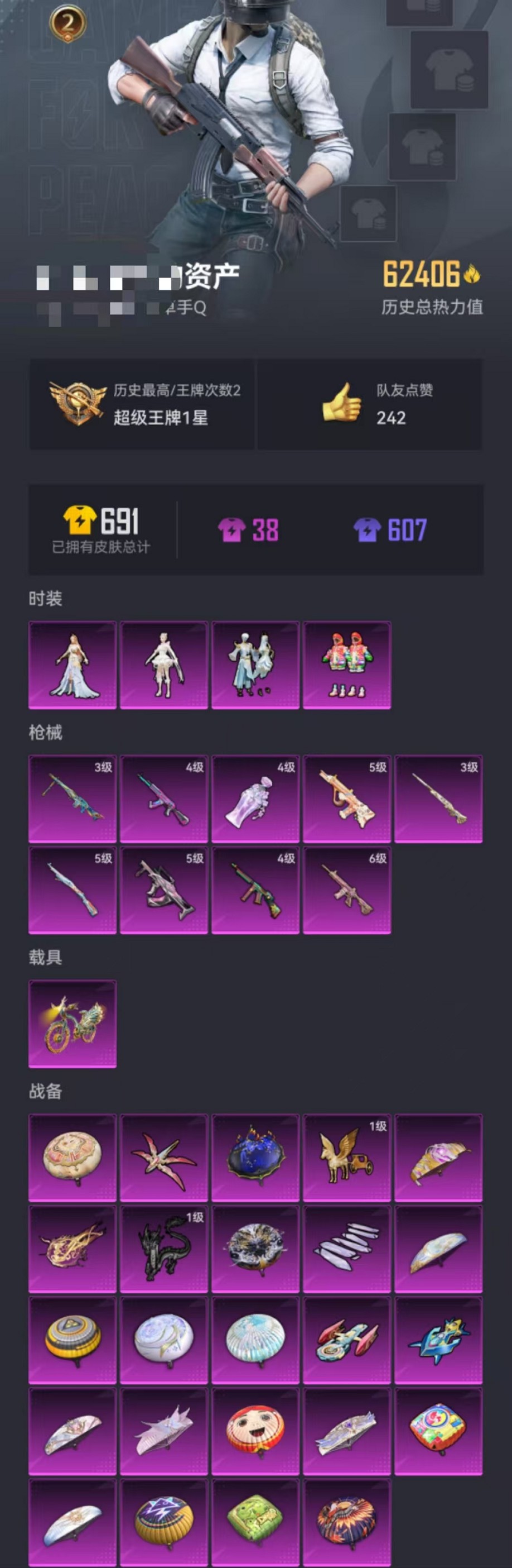 【小丑鱼红眼罩 9特效呛4粉装1载具可秒换绑】 安卓q区-62406热力值-2印记-123套装-207呛皮 【1载具】 辉羽雀灵自行车【4粉装】 炫光之旅 金丰海韵 角色-智耀战神 角色-千金淑猫【8特效呛】 m416-心之恋语6级 akm-炫紫旋律4级 汤姆逊-怪笑疯兔4级 m24-镜域双华3级 groza-镜光银凌5级 kar98k-巳巳如意5级 aug-暖羊咩咩5