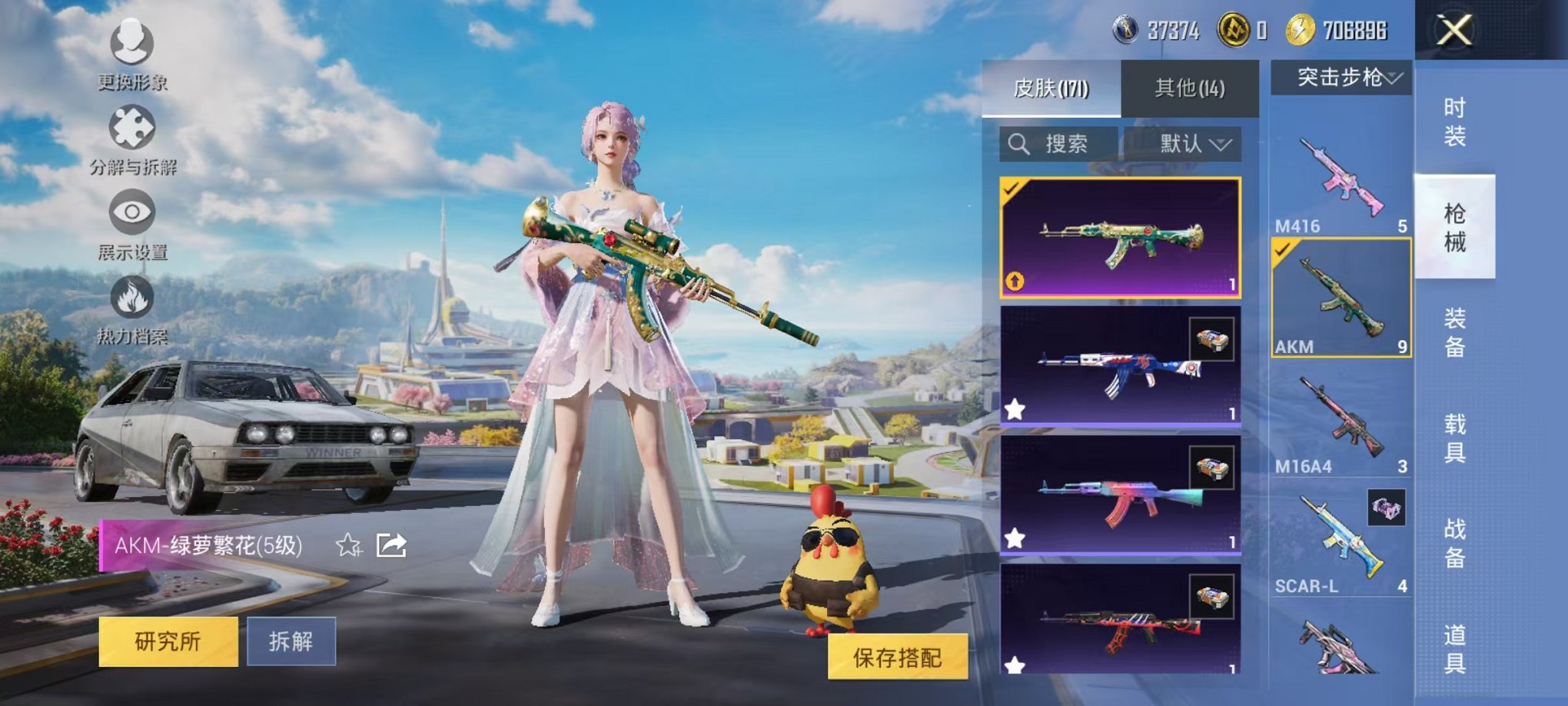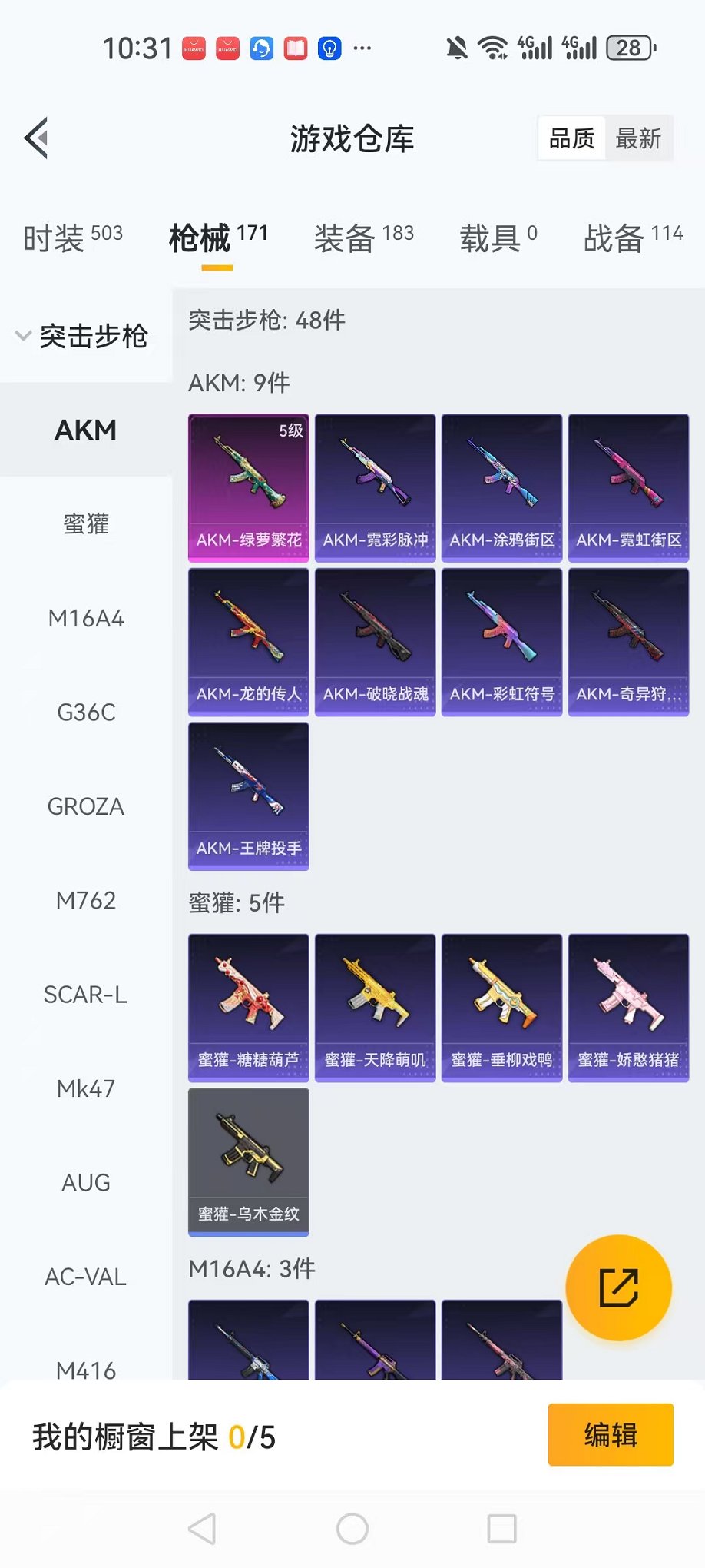 可二次【3粉装5特效呛可秒换绑】 安卓q区-48643热力值-4印记-130套装-171呛皮 【3粉装】 海盐物语 暗夜鎏金 角色-烟云彩露【5特效呛】 akm-绿萝繁花5级 m416-电玩时刻5级 groza-镜光银凌5级 kar98k-巳巳如意5级 dp-28-豹影疾电5级【38热门】 m416-蓝色火焰 groza-彩虹符号 长空猛禽 虚音幻奏 甜心亚梦 牛气冲天 霓虹