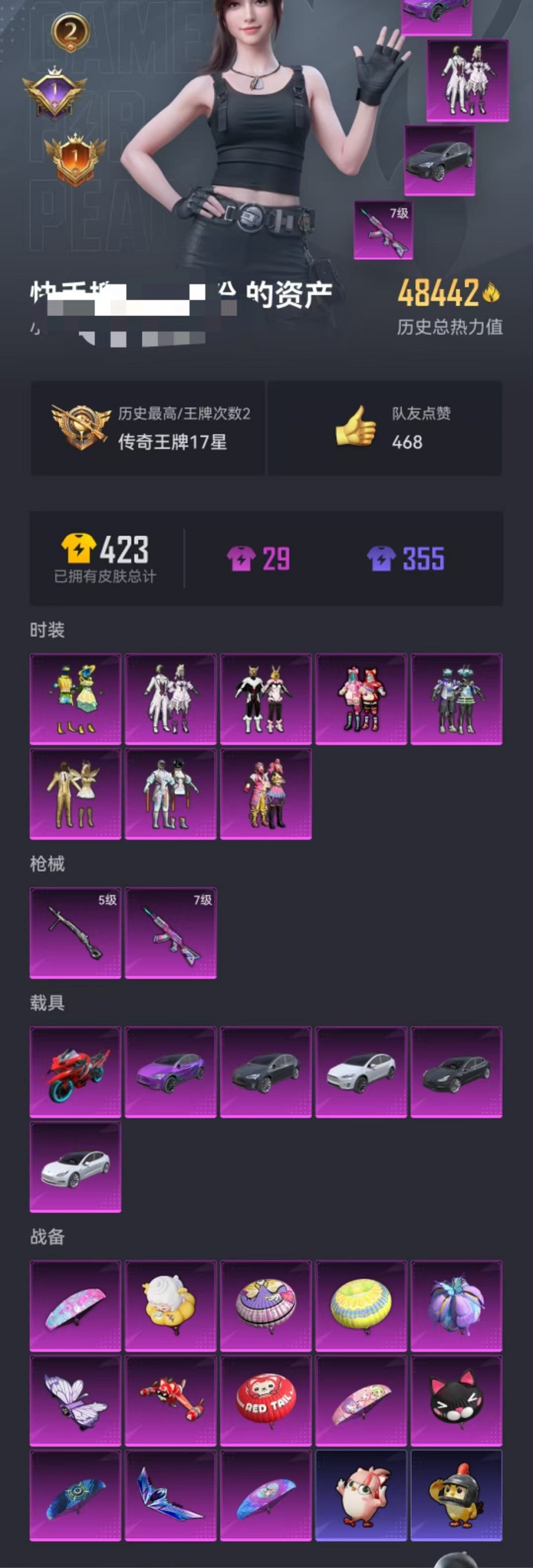 可二次【6载具8粉装2特效呛猪妹 可秒换绑】 安卓q区-48442热力值-2印记-92套装-105呛皮 【6载具】 特斯拉x紫色 特斯拉3白色 特斯拉3银色 特斯拉x白色 特斯拉x银色 双刃魅影红色【8粉装】 缤纷油彩(猪脸妹) 香水柠檬 金属狂野 静灵氛围 智能音符 鳞翅贤者 迷蝶贵族 俏皮狐尾【2特效呛】 akm-炫紫旋律7级 dp-28-豹影疾电5级【27热门】 m416-神秘黑猫