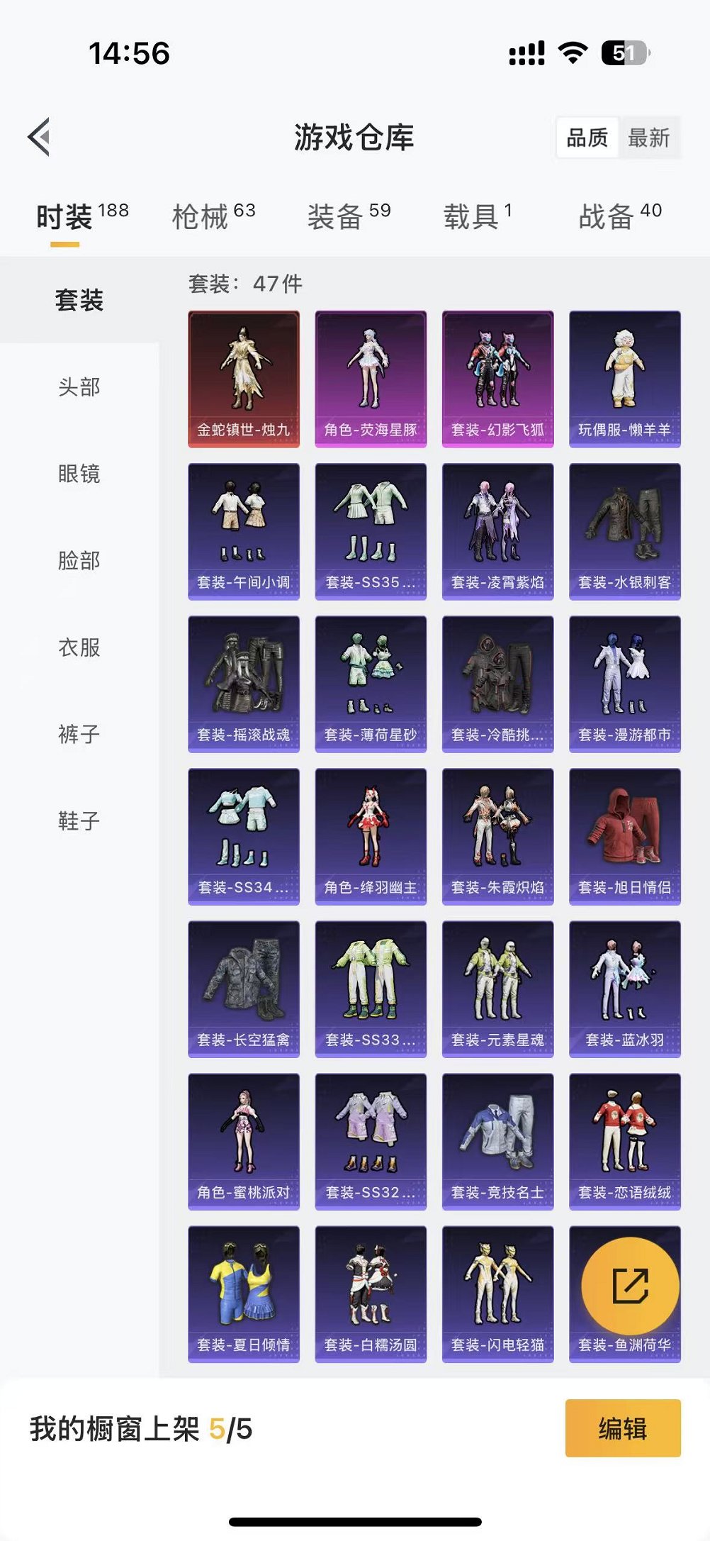 可二次【1红装烛九2粉装3特效呛1载具可秒换绑】 苹果q区-19803热力值-2印记-47套装-63呛皮 【1红装】 金蛇镇世-烛九2级【1载具】 护世瑞兽【2粉装】 幻影飞狐 角色-荧海星豚【3特效呛】 kar98k-巳巳如意5级 dp-28-豹影疾电5级 aug-暖羊咩咩5级【10热门】 m416-蓝色火焰 长空猛禽 水银刺客 白色伏地魔 ss23特训 ss22特训 awm-