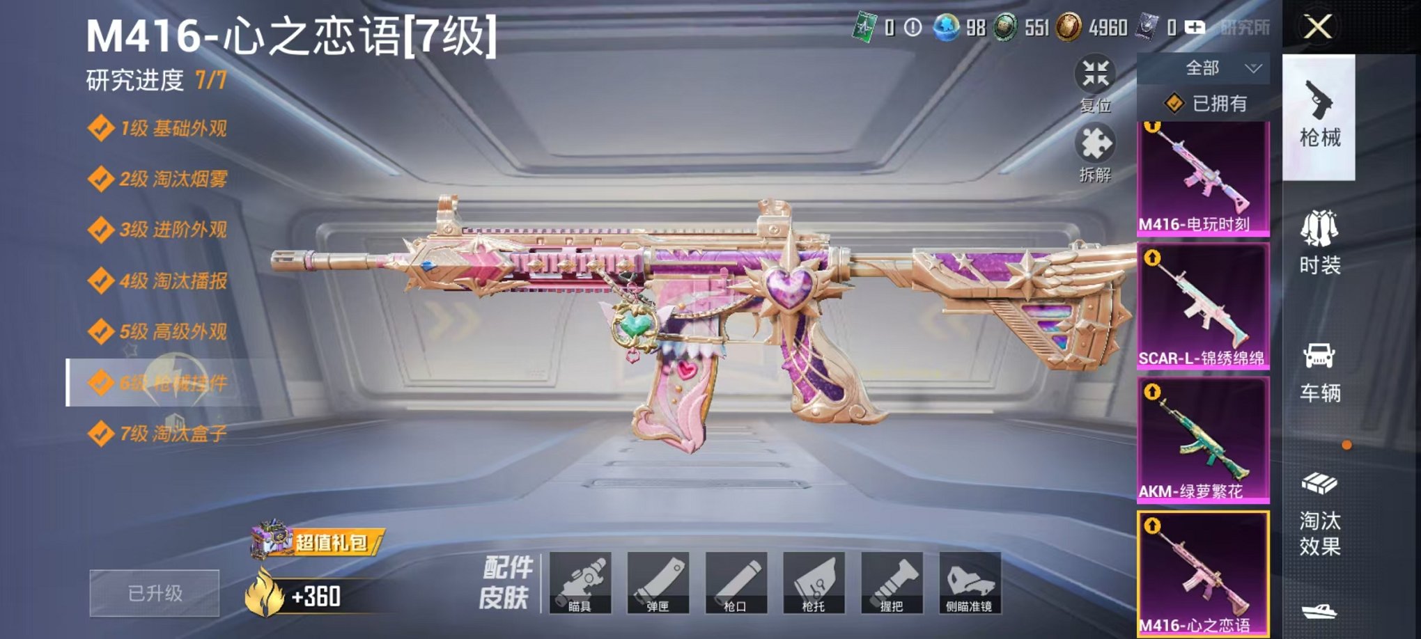 【都市金鞋满级心之恋语6粉装10特效呛可秒换绑】 安卓q区-84147热力值-15印记-204套装-265呛皮 【3稀有】 8号机 mark.06 派对舞王【6粉装】 霓裳武神 海渊国主 妙趣可丽 星穹咏叹调 角色-狂花道·不知火舞 角色-羊梦糖心【10特效呛】 scar-l-锦绣绵绵5级 m416-心之恋语7级 akm-绿萝繁花5级 m416-电玩时刻5级 ump45-量子极限