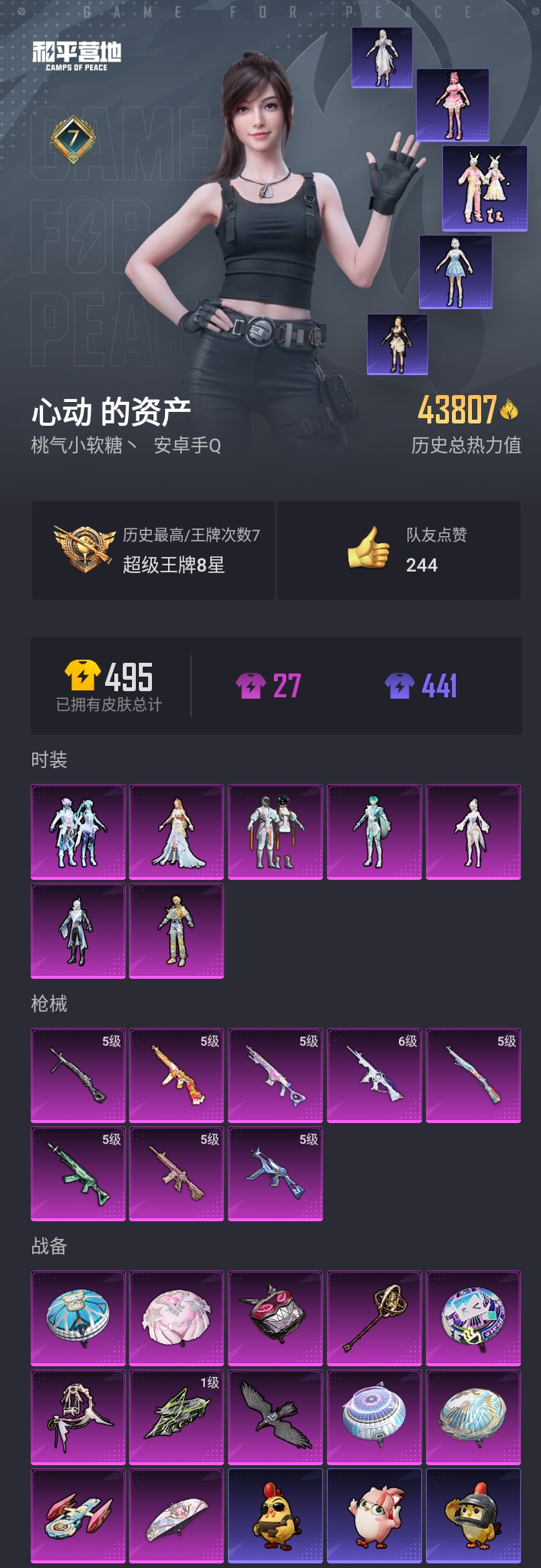 【和平精英】【lyhp16902】7粉装8特效呛 智能音符 女娲 6级女娲m4 5级恋语m4 7粉装,8特效呛,0载具,历史最高段位:超级王牌8星 王牌印记7次 热力值:43807,99套装,124呛械,169装备,86战备;套装:套装-智能音符,时空协奏·火花,角色-女娲灵识,角色-伏羲圣卦,角色-玄冥寒域,角色-智耀战神,套装-幻彩电音,套装-特训学院,套装-猎鹰,套装-红色运动,套装-黄色运动,套装-蓝色运动,套装-黄色伏地魔,套装-白色伏地魔,套装-黑色伏地魔,套装-竞技名士,套装-深蓝色名流,套装-酒红色名流,套装-湖蓝色名流,套装-黄色名流,套装-猛禽,套装-长空猛禽,套装-海岛探路者,套装-旭日情侣,套装-冰冻风暴,套装-暗金炫舞,套装-魅力单车,套装-竞技达人朋克,套装-森林游猎者,套装-甜蜜菠萝,套装-弄潮海豚,套装-缤纷果语,套装-滨海厨神,套装-龙魂突击队,套装-元素星魂,套装-破蛋小黄鸡,套装-白糯汤圆,套装-战术大师,套装-曼妙人鱼,套装-热情海星,套装-纯真浪花,套装-光之冒险,套装-绯格组合,套装-香榭午后,套装-青玉碎影,套装-香桃花海,套装-冰河战士,套装-焰鹰斗篷,套装-幻羽潜行,套装-恋语绒绒,套装-ss28特训,角色-白光莹,角色-情公主,角色-冰公主,角色-银尘,套装-街头风暴,套装-海盐绵绵冰,套装-蝶变,套装-创世·幻影,套装-粉日山川,套装-小熊娃娃,套装-ss29特训,套装-雏菊兔兔,套装-萝兰蝴蝶,角色-绯色魅影,套装-火种守卫者,套装-异域银装,角色-都市丽猫,套装-星途旅人,套装-ss30特训,套装-青团波波,套装-棉花软糖,套装-糖糖葫芦,套装-ss31特训,套装-鱼渊荷华,套装-石蕴玉辉,套装-燕燕于飞,套装-智谋强哥,套装-紫幽梦,套装-粉恋花,套装-ss33特训,套装-云朵鹅,套装-巳巳如意,套装-ss32特训,套装-彩虹兔,套装-蓝冰羽,套装-顶瓜瓜,套装-雪绒豹,套装-大橘大利,套装-星渊小夜曲,套装-霓虹热舞,套装-元气之梦,套装-ss34特训,套装-薄荷星砂,套装-ss35特训,套装-午间小调,套装-风迹短诗,套装-粉黛兰香,套装-萌鸡速递;呛皮:m16a4-冰河战士,m16a4-千金淑猫,蜜獾-精灵梦叶罗丽,蜜獾-糖糖葫芦,蜜獾-鸡智如我,蜜獾-风迹短诗,蜜獾-绿洲时空,蜜獾-乌木金纹,5级m762-青锋波束,m762-雏菊兔兔,m762-云朵鹅,scar-l-夜灯,scar-l-炫彩节奏,scar-l-星途旅人,scar-l-海盐豹豹,groza-影袭,groza-海盐豹豹,famas-桃粉嫣然,famas-乌木金纹,akm-涂鸦街区,akm-玄冥寒域,q-彩虹符号,q-萌萌彩虹球,q-纯真浪花,mk47-洛神天依,mk47-风迹短诗,aug-天降萌叽,aug-异域银装,aug-紫晶流影,ac-val-时光之吻,5级m416-心之恋语,6级m416-女娲灵识,g36c-星穹咏叹调,m200-乌木金纹,5级kar98k-巳巳如意,kar98k-顶峰精英,莫辛纳甘-风迹短诗,awm-焰鹰斗篷,awm-纯真浪花,svd-云朵鹅,win94-乌木金纹,amr-鸡智如我,5级mk14-甜梦熊击,mk14-冰河战士,mk14-紫幽梦,slr-霓彩脉冲,mini14-香桃花海,mini14-雏菊兔兔,mk20-h-星途旅人,mk20-h-糖糖葫芦,mk20-h-乌木金纹,m417-玩趣呆呆,vss-香桃花海,mk12-风迹短诗,sks-迅猛狂鲨,uzi-天降萌叽,uzi-冰河战士,vect-生命誓言,vect-焰鹰斗篷,vect-燕燕于飞,野牛-雏菊兔兔,野牛-燕燕于飞,5级ump45-量子极限,ump45-夜灯,ump45-海盐豹豹,ump45-糖糖葫芦,5级汤姆逊-热量炸弹,汤姆逊-天降萌叽,汤姆逊-纯真浪花,汤姆逊-智耀战神,aks-74u-乌木金纹,mp5k-乌木金纹,p90-巳巳如意,s1897-精灵梦叶罗丽,s1897-紫幽梦,s1897-糯团青竹,s1897-荧海星豚,s686-彩虹符号,s686-千金淑猫,s686-巳巳如意,spas-12-燕燕于飞,spas-12-云朵鹅,spas-12-乌木金纹,dbs-歌者泠鸢,dbs-彩虹符号,dbs-焰鹰斗篷,dbs-幻彩电音,dbs-风迹短诗,dbs-乌木金纹,s12k-夜灯,s12k-玩趣呆呆,aa12-g-纯真浪花,5级dp-28-豹影疾电,dp-28-焰鹰斗篷,m249-彩虹符号,m249-无面战甲,pkm-啾咪啾咪,pkm-紫幽梦,mg3-幻世战舞者,mg3-第五大道,mg3-霓彩脉冲,沙墨之鹦-未来领航者,沙墨之鹦-云朵鹅,p92-紫幽梦,r1895-雏菊兔兔,p18c-糖糖葫芦,r45-幻彩电音,信号呛-异瞳寒姬,蝎式手呛-燕燕于飞,平底锅-焰鹰斗篷,平底锅-精灵梦叶罗丽,平底锅-纯真浪花,平底锅-雏菊兔兔,平底锅-糖糖葫芦,平底锅-许七安,平底锅-紫幽梦,大砍刀-云朵鹅,破片手留单-星途旅人,破片手留单-海盐豹豹,破片手留单-拽到爆炸,破片手留单-巳巳如意,十子怒-燕燕于飞,十子怒-异域银装,盐雾蛋-冰氧夏日;降落伞:鸿潮鸣舰飞行器,英伦信使飞行器,牡丹亭・游园飞行器,时光之誓飞行器,幽焰列车飞行器,异域银装飞行器,顶峰精英尾迹; 详情看图