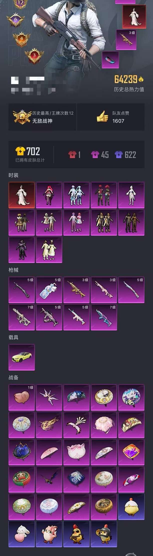 【无敌战神1红装11粉装9特效呛1载具可秒换绑】 苹果q区-64239热力值-12印记-历史最高段位:无敌战神-121套装-182呛皮 【1红装】 盛世惊鸿-云鸾2级【1载具】 宝马m4圣保罗黄【11粉装】 宝贝奶油派 甜心巧克力 天使彩虹糖 闲梦青缨 星云暗核 繁龙极客 放客神游 创世·救赎 幻彩电音 角色-绯穹魔姬 角色-女娲灵识【9特效呛】 scar-l-锦绣绵绵5级 akm-