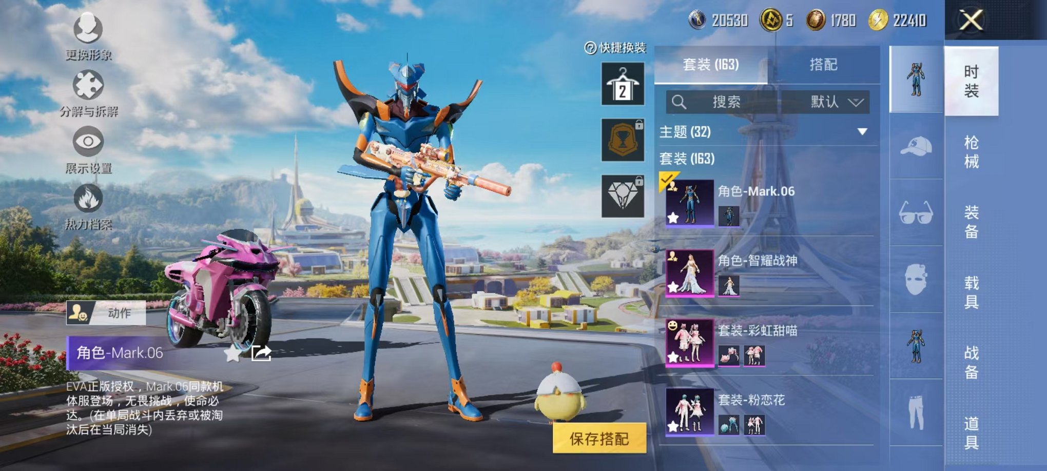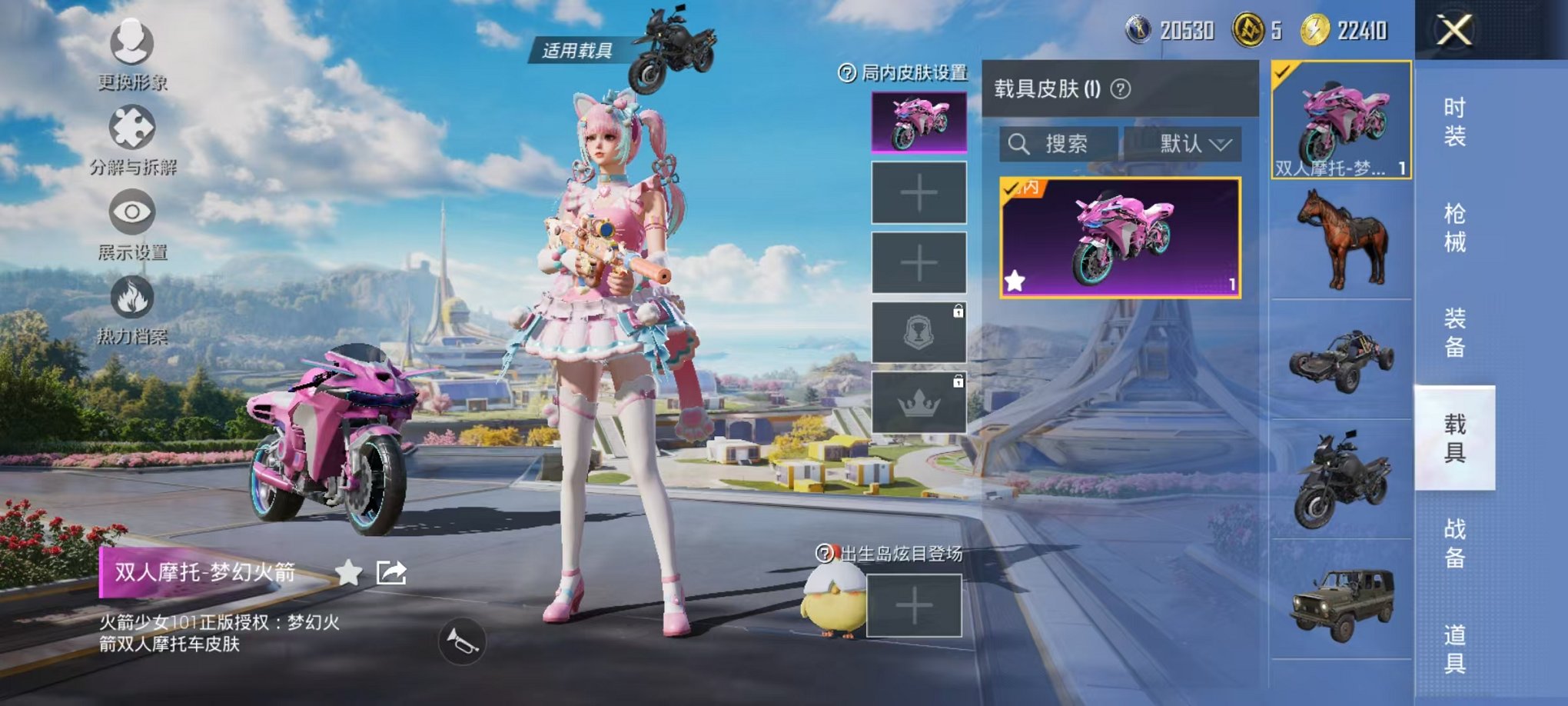 可二次【蓝螳螂红眼罩2粉装8特效呛1载具可秒换绑】 安卓q区-68060热力值-5印记-163套装-219呛皮 【1载具】 双人摩托梦幻火箭【1稀有】 mark.06【2粉装】 彩虹甜喵 角色-智耀战神【8特效呛】 m249-彩虹甜喵7级 m416-电玩时刻5级 ump45-量子极限5级 mk14-甜梦熊击5级 groza-镜光银凌5级 kar98k-巳巳如意5级 dp-
