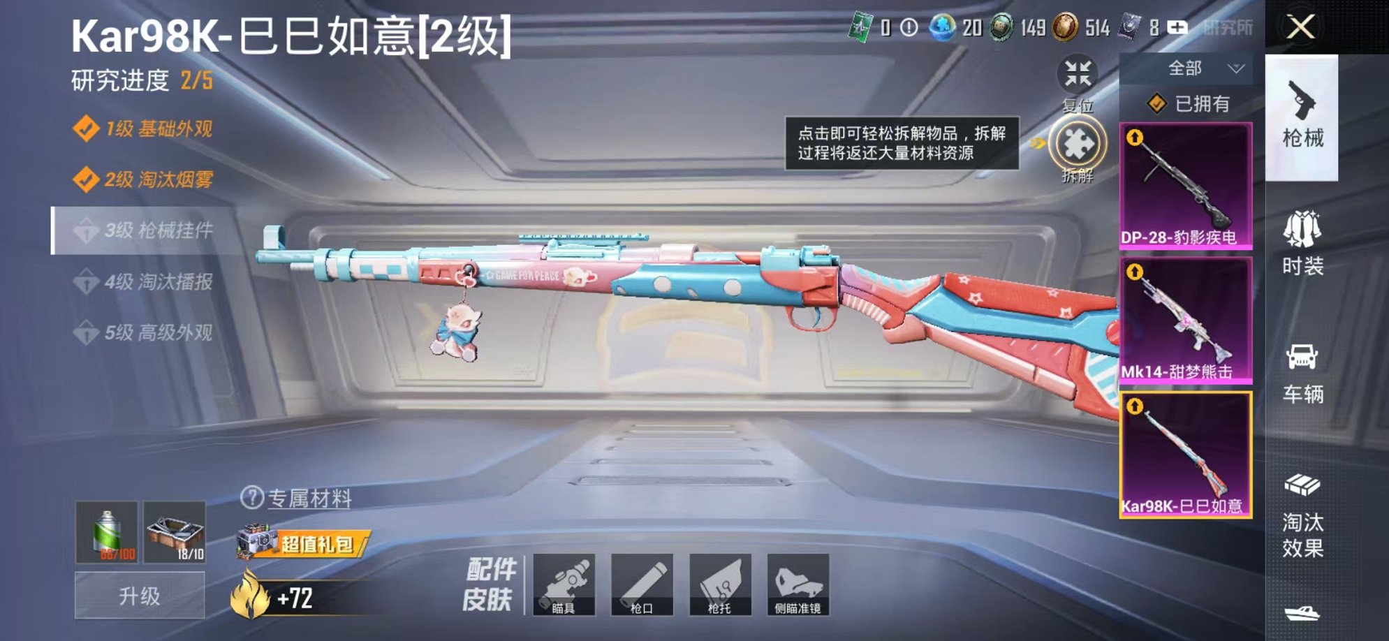 可二次【1粉装3特效呛可秒换绑】 安卓q区-9154热力值25套装-36呛皮 【1粉装】 角色-异瞳寒姬【3特效呛】 mk14-甜梦熊击5级 kar98k-巳巳如意2级 dp-28-豹影疾电5级【2热门】 白色伏地魔 mg3-幻世战舞者 营地id:1023359270