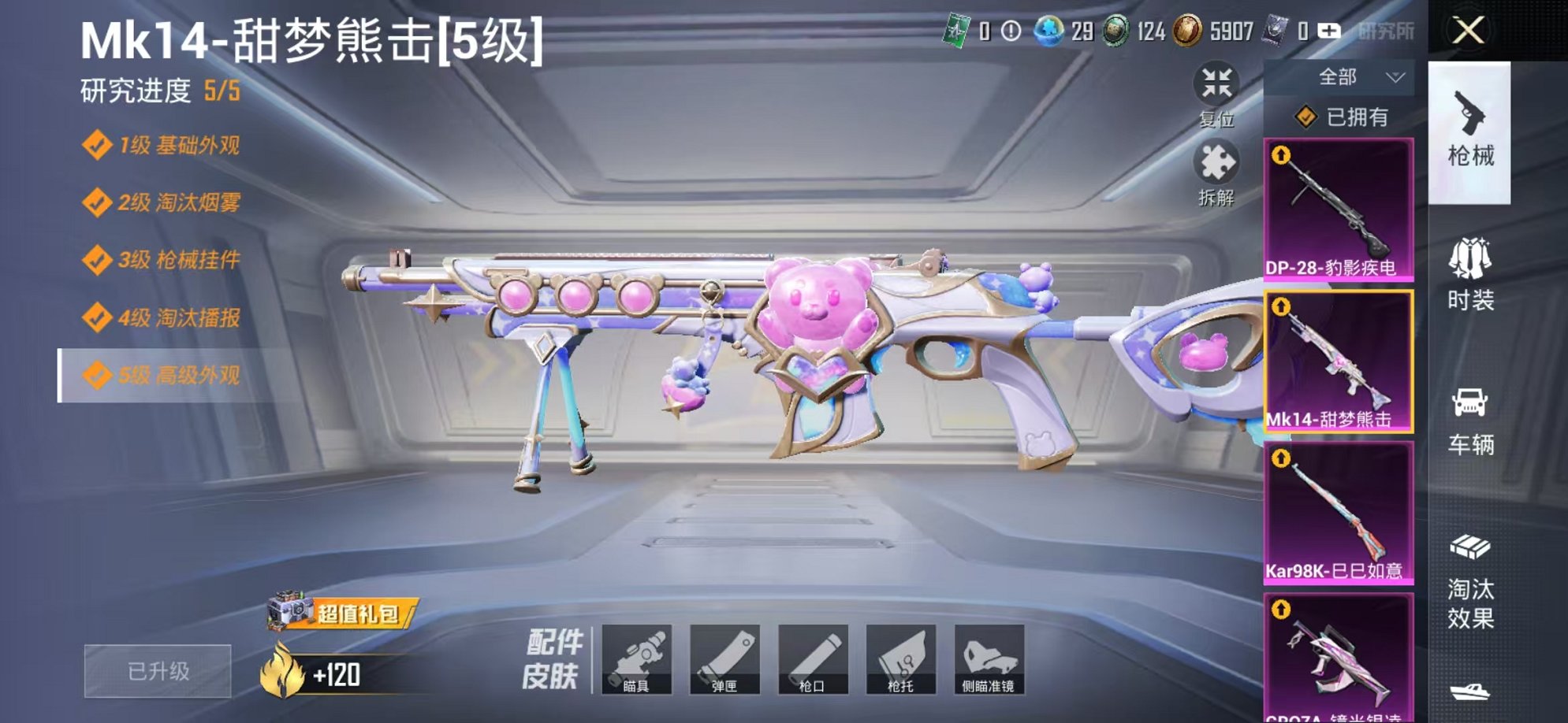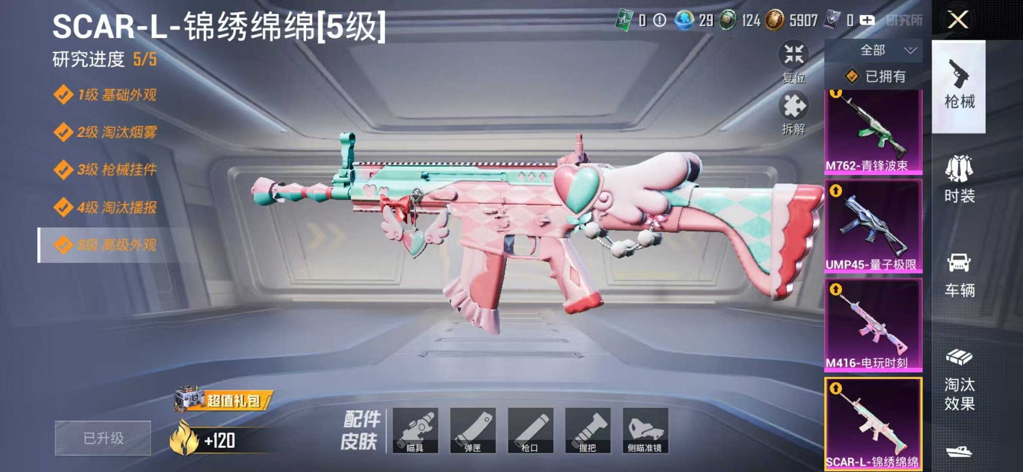 【女号2粉装8特效呛可秒换绑】 安卓q区-45323热力值-4印记-128套装-180呛皮 【2粉装】 第五大道 角色-萨利娅【8特效呛】 scar-l-锦绣绵绵5级 m416-电玩时刻5级 ump45-量子极限5级 m762-青锋波束5级 mk14-甜梦熊击5级 groza-镜光银凌5级 kar98k-巳巳如意5级 dp-28-豹影疾电5级【29热门】 m416