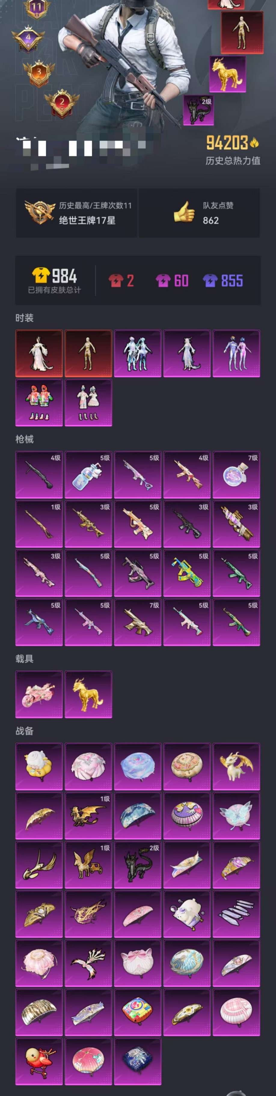【连体号2红装3级图卡盟5粉装20特效呛2载具带王者11传说可秒换绑】 安卓q区-94203热力值-11印记-167套装-276呛皮 【2红装】 盛世惊鸿-云鸾1级 沙丘之主-图卡盟3级【2载具】 盛世惊鸿摩托车 护世瑞兽【5粉装】 梦幻火箭 炫光之旅 蜜语绒猫 幻彩电音 角色-幻海仙踪【20特效呛】 scar-l-锦绣绵绵5级 p90-沙丘之主3级 groza-香水柠檬5级