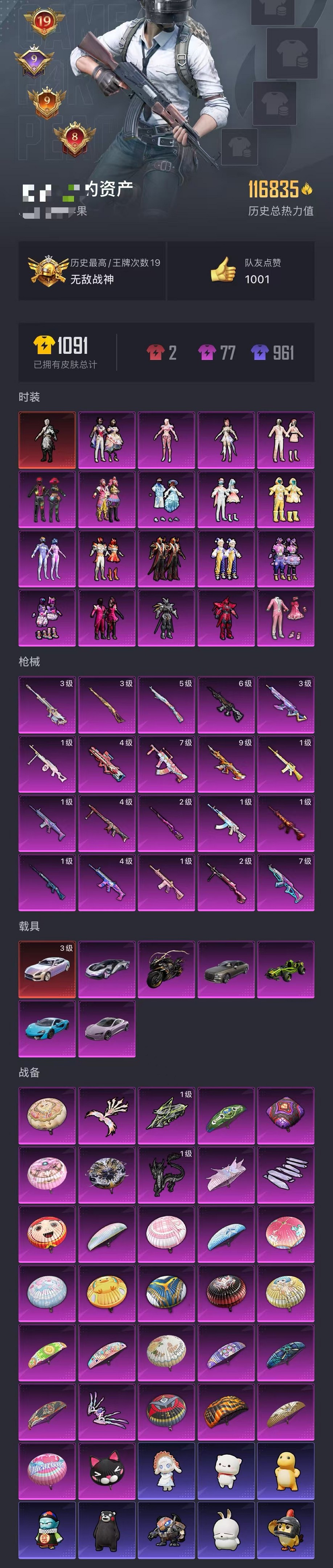 可二次【3级玛莎3级敖渊19粉装20特效呛7载具】 苹果v区-116835热力值-19印记-历史最高段位:无敌战神-179套装-297呛皮 【1红装】 墨龙九天-敖渊3级【7载具】 特斯拉r沁心粉 合金龙骨绿色 玛莎拉蒂quattropte幻星粉3级 宾利飞驰布罗德盖棕双色 迈凯伦570s天际蓝 疾风龙骑 时空跃影星辉银【2稀有】 mark.06 奇异狩猎者【19粉装