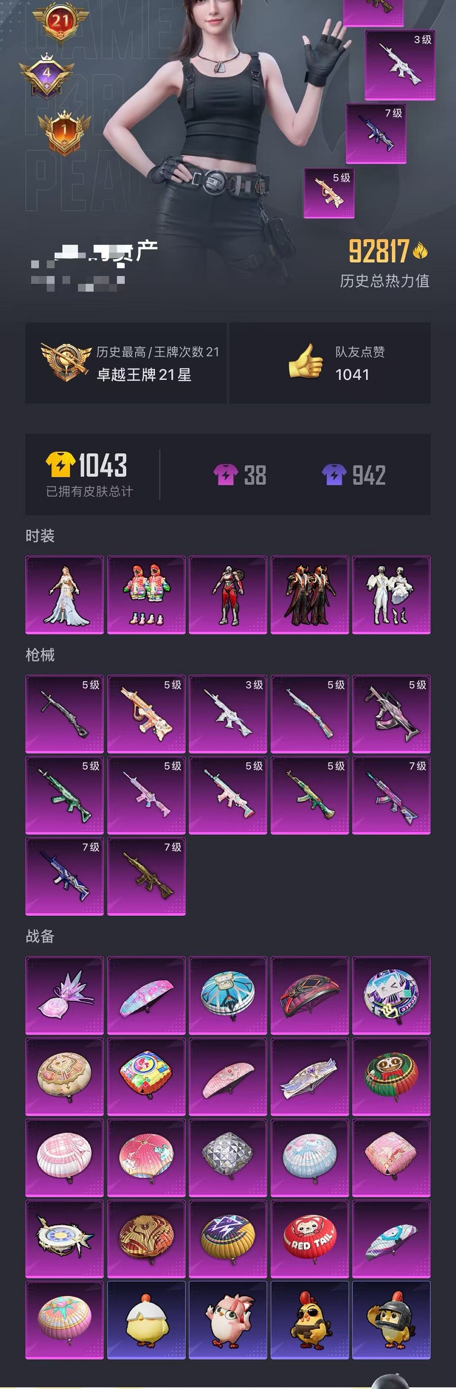 可二次【巡查衣满级五爪5粉装12特效呛 可秒换绑】 苹果q区-92817热力值-21印记-192套装-315呛皮 【2稀有】 巡查衣 awm-黄金龙骨【5粉装】 阿尔茜 炫光之旅 寒光使者 炙焰牛王 角色-智耀战神【12特效呛】 scar-l-青春物语7级 scar-l-锦绣绵绵5级 m416-五爪金龙7级 akm-炫紫旋律7级 akm-绿萝繁花5级 m416-电玩时刻5级