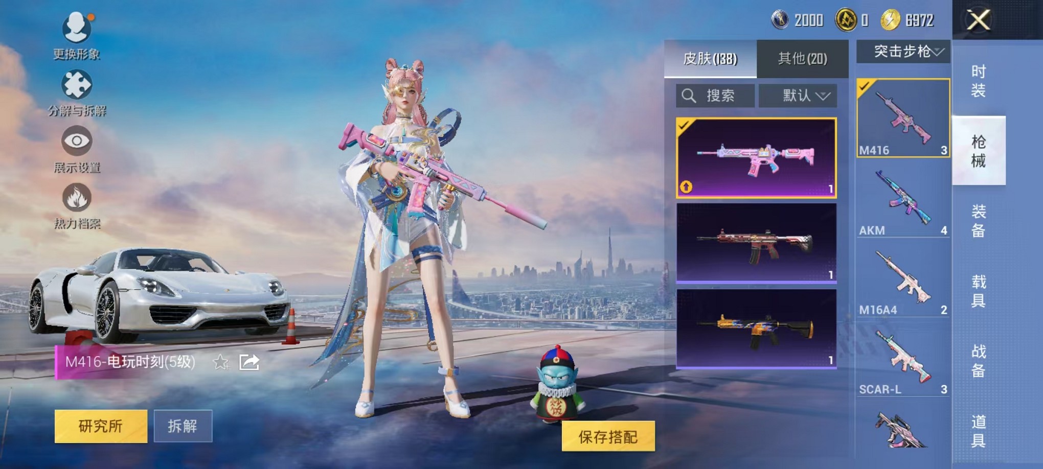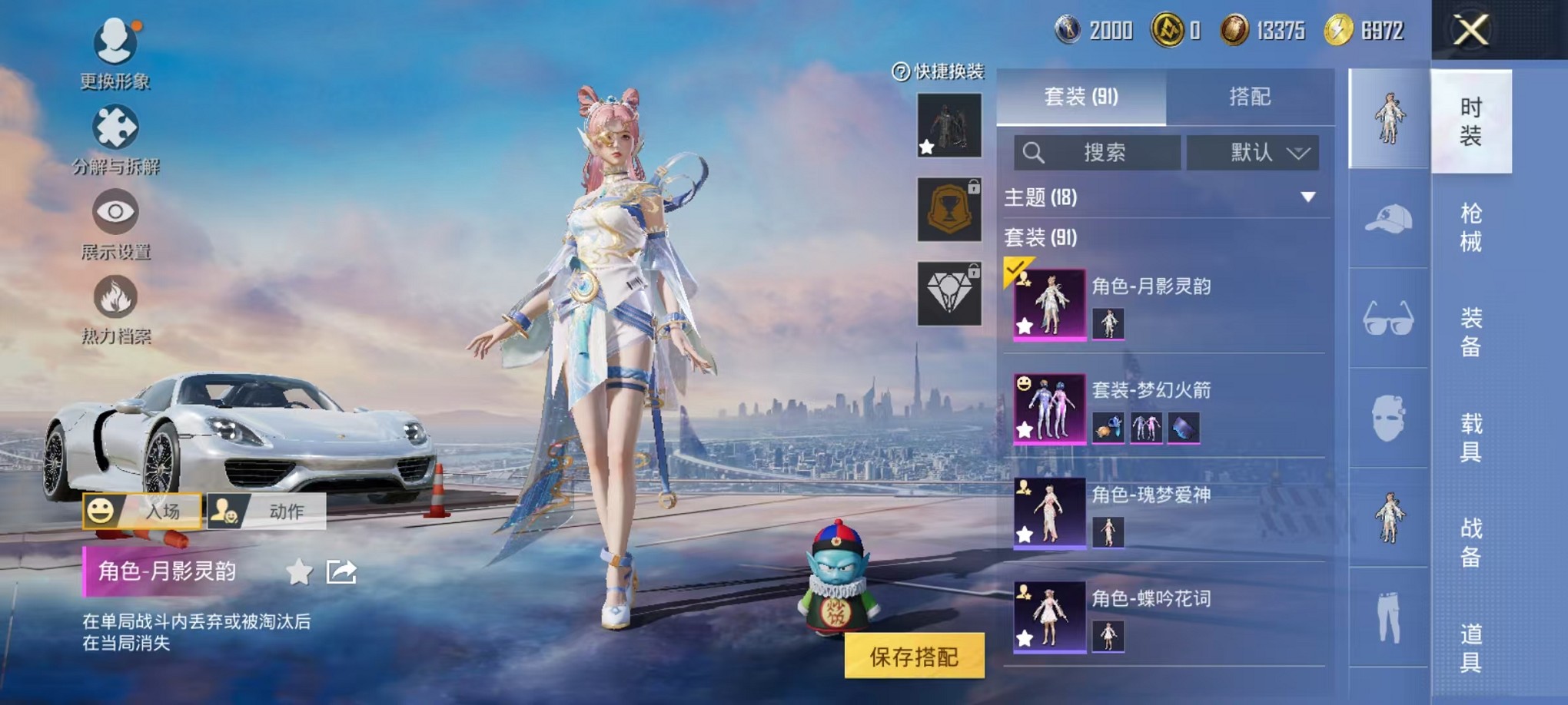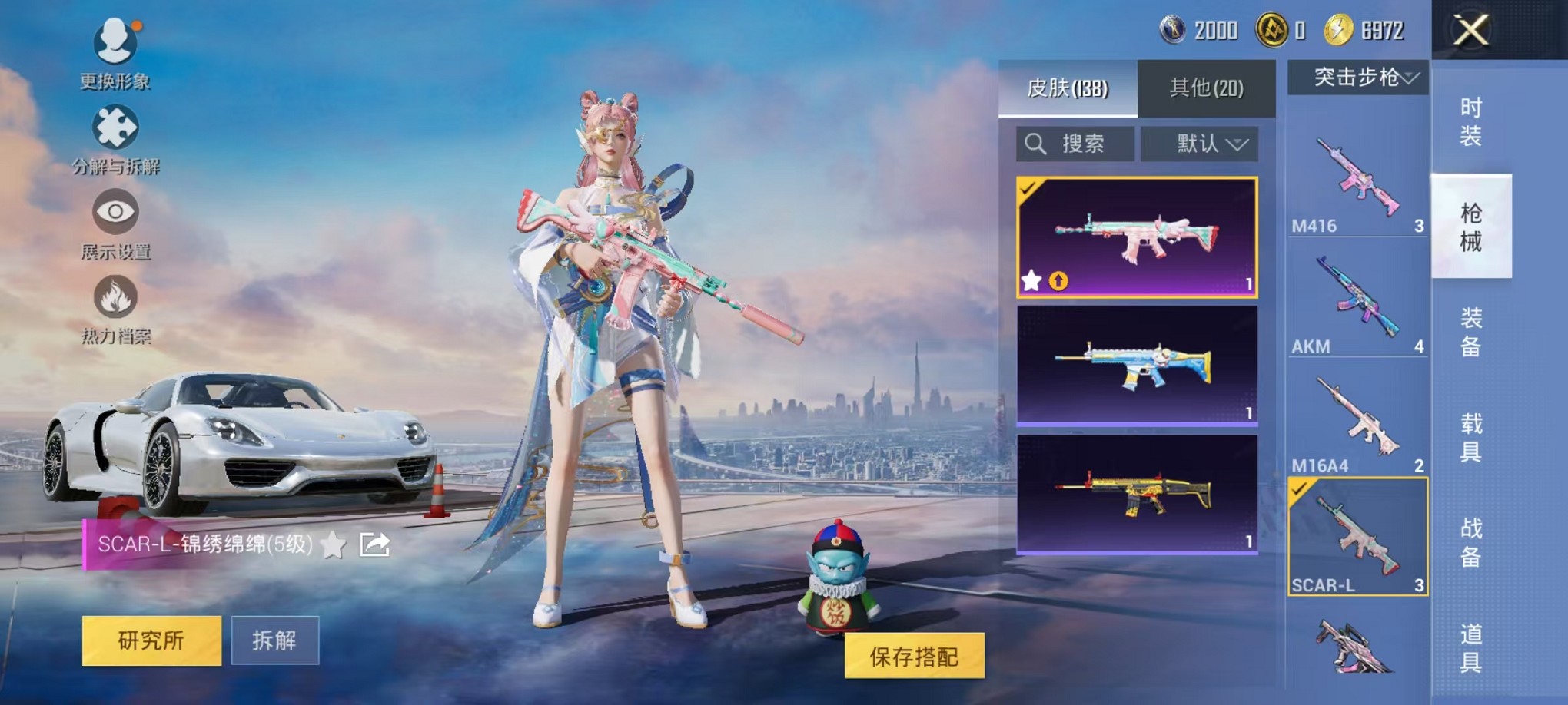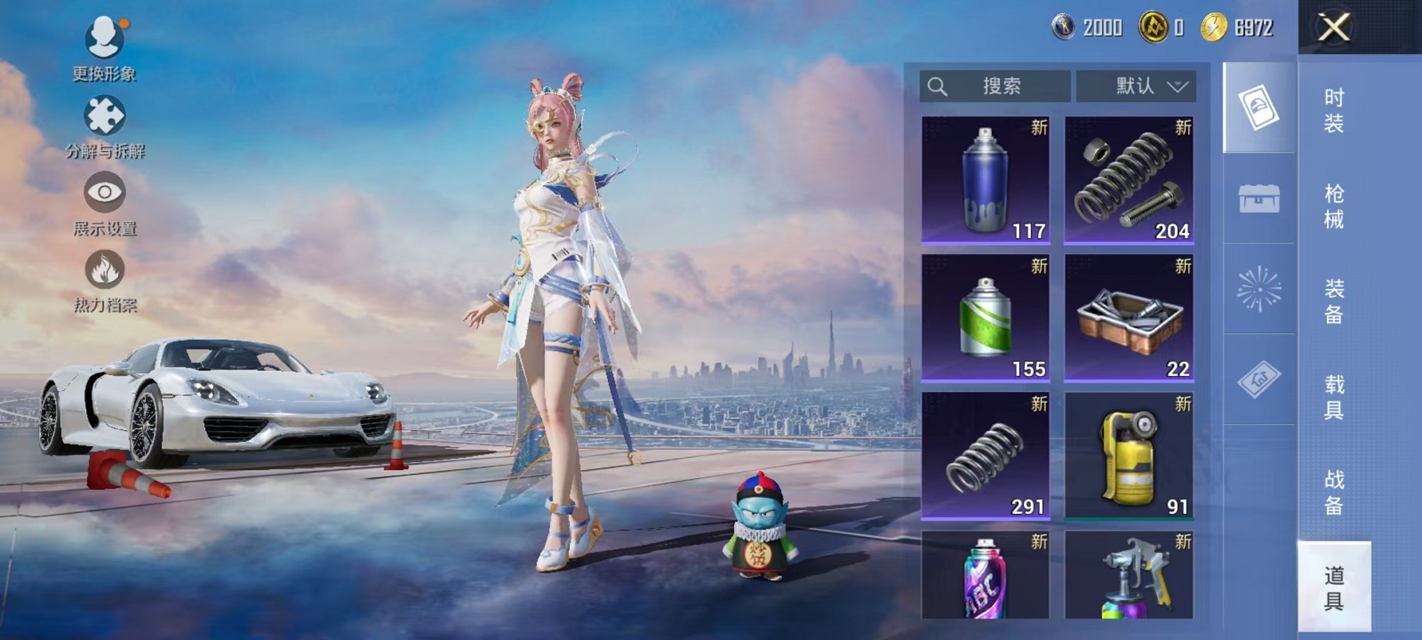 【2粉装8特效呛1载具 可秒换绑】 安卓q区-38769热力值-3印记-91套装-136呛皮 【1载具】 保时捷918 sper液态银【1稀有】 奇异狩猎者【2粉装】 梦幻火箭 角色-月影灵韵【8特效呛】 scar-l-锦绣绵绵5级 m416-电玩时刻5级 m762-青锋波束5级 mk14-甜梦熊击5级 groza-镜光银凌5级 kar98k-巳巳如意5级 dp-