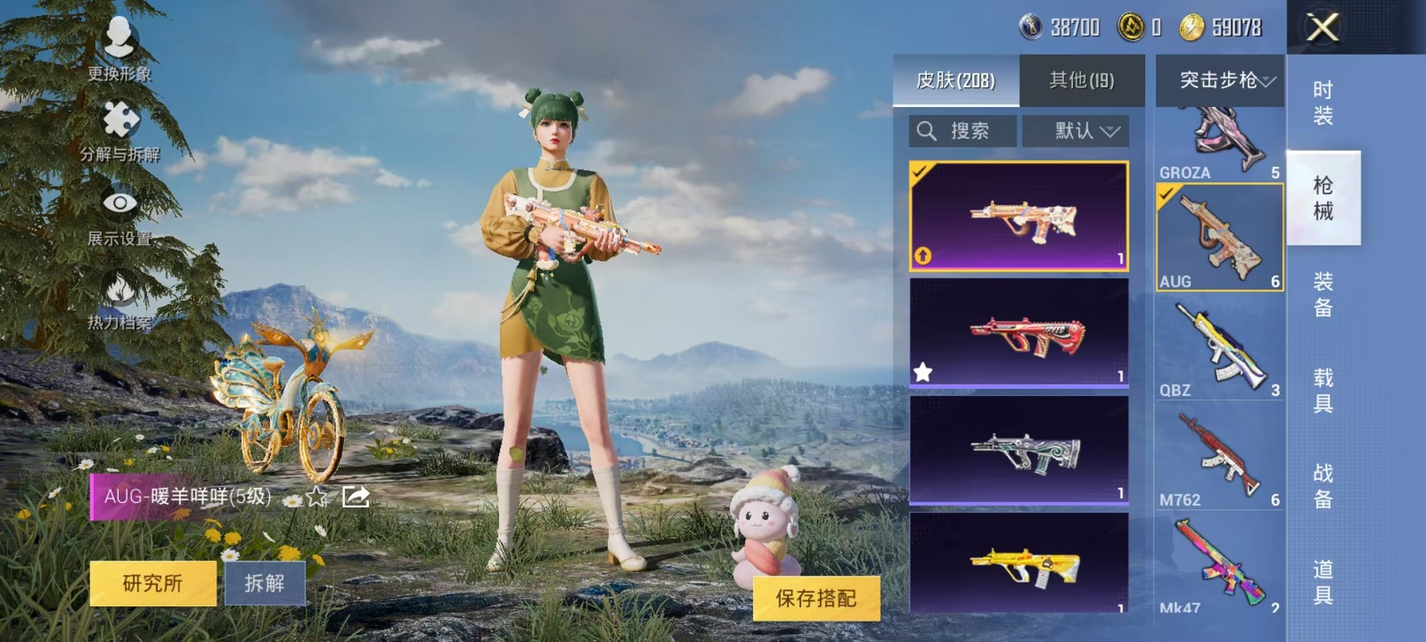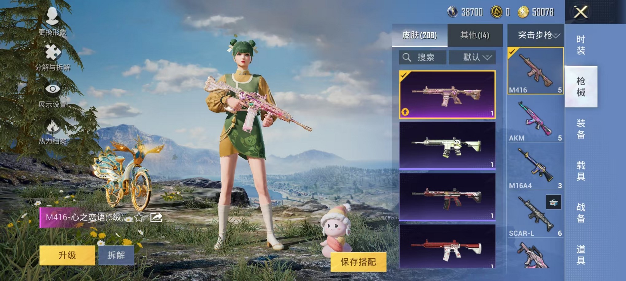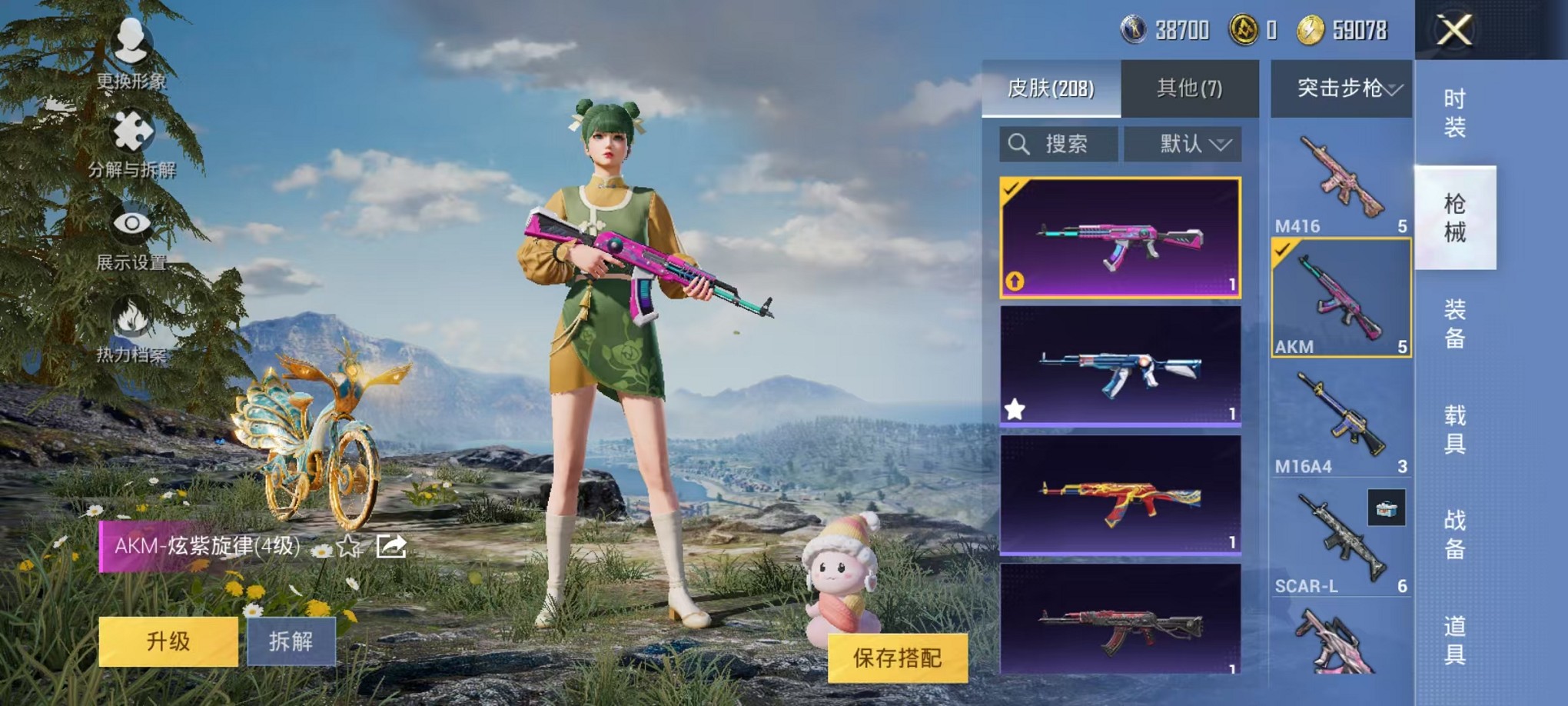 【心之恋语 雅典娜红眼罩 4粉装9特效呛1载具 可秒换绑】 安卓q区-62406热力值-2印记-126套装-207呛皮 【1载具】 辉羽雀灵自行车【4粉装】 炫光之旅 金丰海韵 角色-智耀战神 角色-千金淑猫【9特效呛】 m416-心之恋语6级 akm-炫紫旋律4级 汤姆逊-怪笑疯兔4级 m24-镜域双华3级 mg3-辉羽雀灵3级 groza-镜光银凌5级 kar98k-