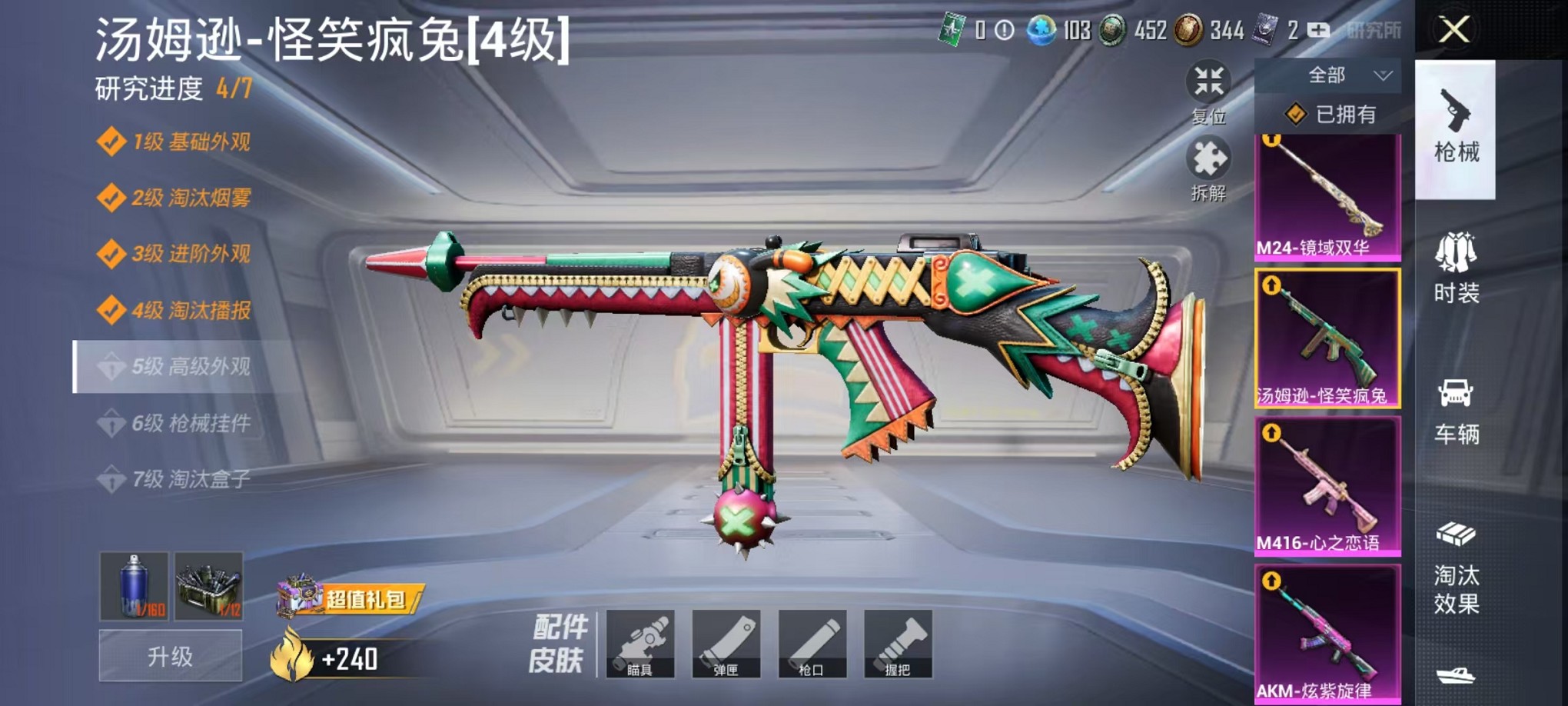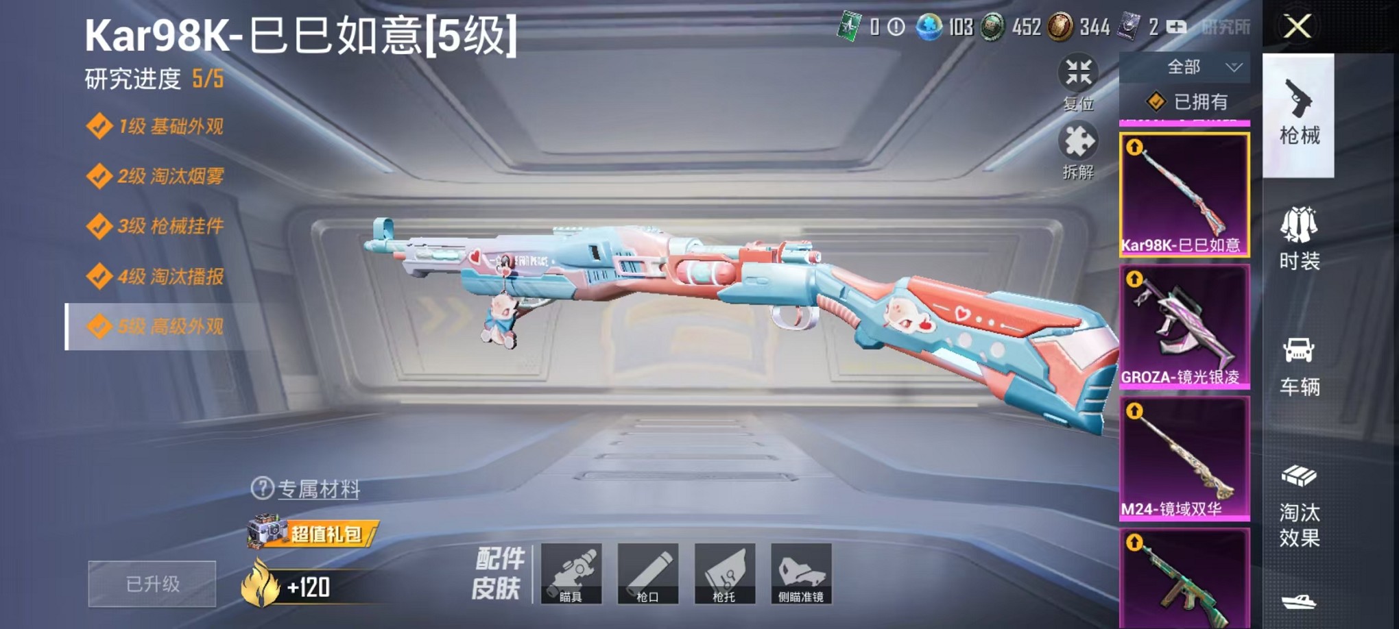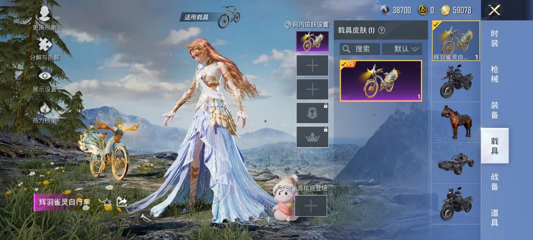 【心之恋语 雅典娜红眼罩 4粉装9特效呛1载具 可秒换绑】 安卓q区-62406热力值-2印记-126套装-207呛皮 【1载具】 辉羽雀灵自行车【4粉装】 炫光之旅 金丰海韵 角色-智耀战神 角色-千金淑猫【9特效呛】 m416-心之恋语6级 akm-炫紫旋律4级 汤姆逊-怪笑疯兔4级 m24-镜域双华3级 mg3-辉羽雀灵3级 groza-镜光银凌5级 kar98k-