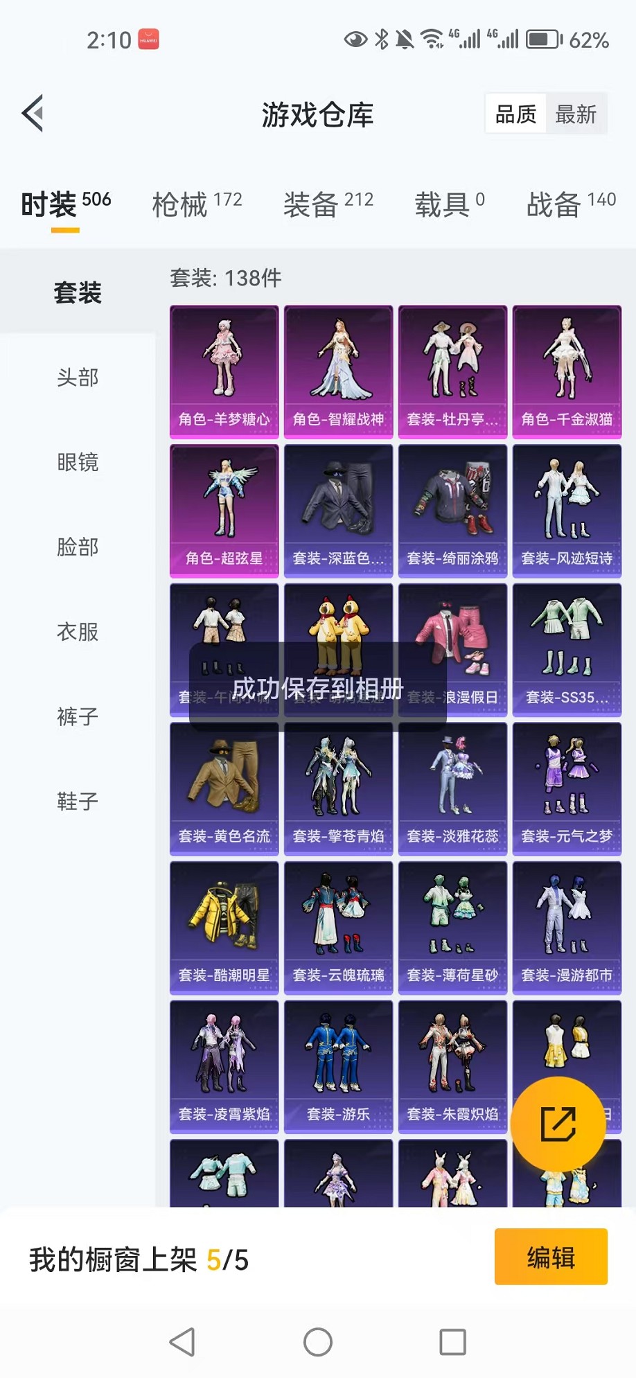 【5粉装5特效呛可秒换绑】 安卓q区-51333热力值-11印记-138套装-172呛皮 【5粉装】 角色-智耀战神 角色-超弦星 角色-千金淑猫 牡丹亭·游园 角色-羊梦糖心【5特效呛】 m416-电玩时刻5级 amr-智耀战神7级 kar98k-巳巳如意5级 dp-28-豹影疾电5级 aug-暖羊咩咩5级【20热门】 m416-蓝色火焰 长空猛禽 沙漠雄狮 极速红龙 冰川