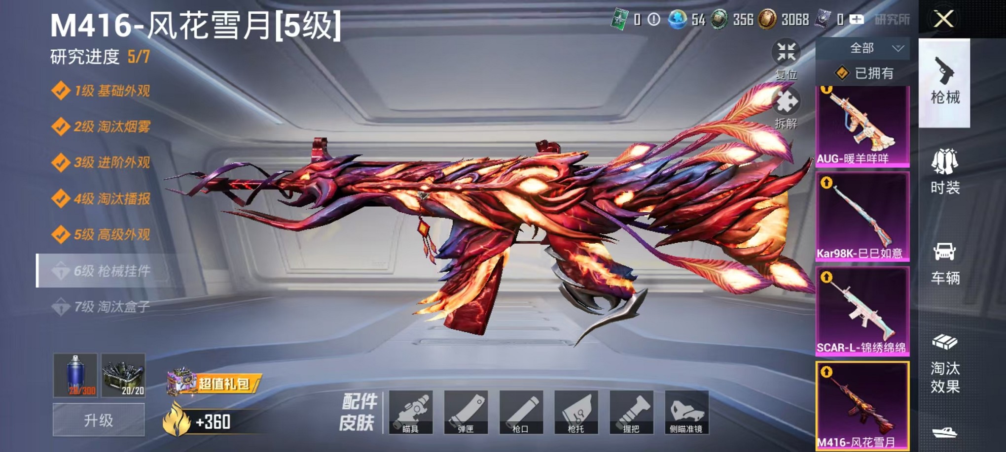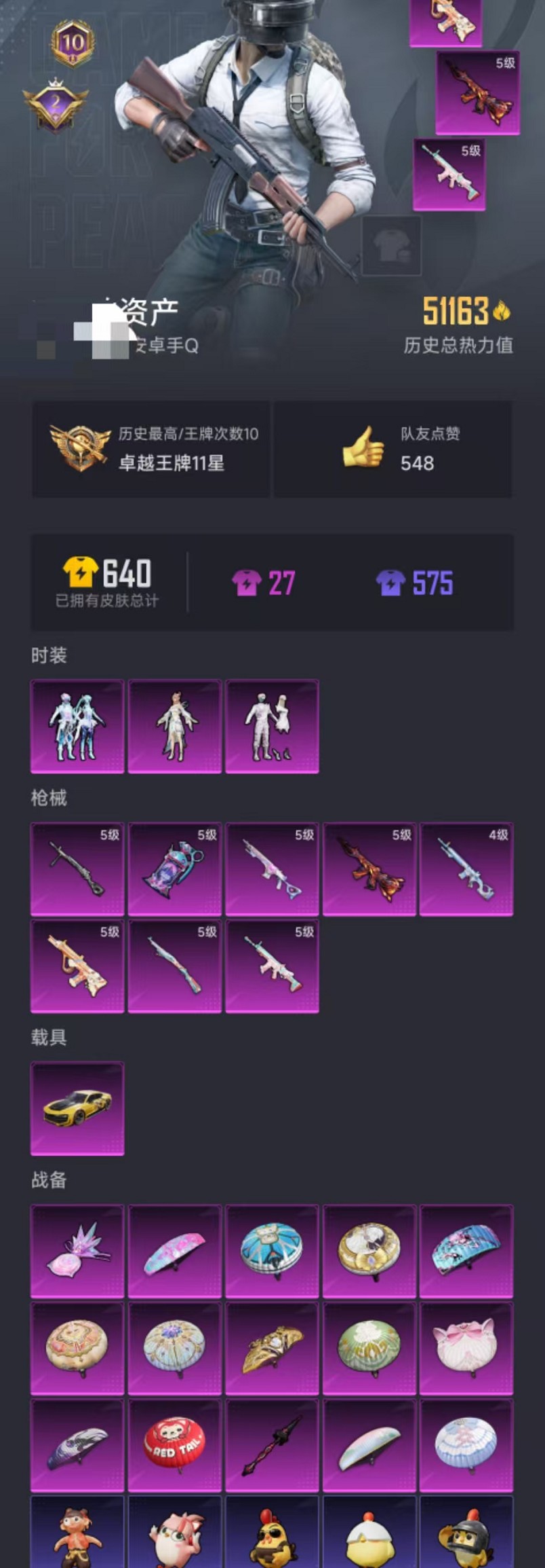 【女号小丑鱼红眼罩 3粉装8特效呛1载具 可秒换绑】 安卓q区-51163热力值-10印记-119套装-172呛皮 【1载具】 永恒黄蜂【3粉装】 镜光幻境 幻彩电音 角色-月影灵韵【8特效呛】 scar-l-锦绣绵绵5级 m416-风花雪月5级 12-雪月幻音4级 mk14-甜梦熊击5级 盐雾蛋-电雾迷城5级 kar98k-巳巳如意5级 dp-28-豹影疾电5级
