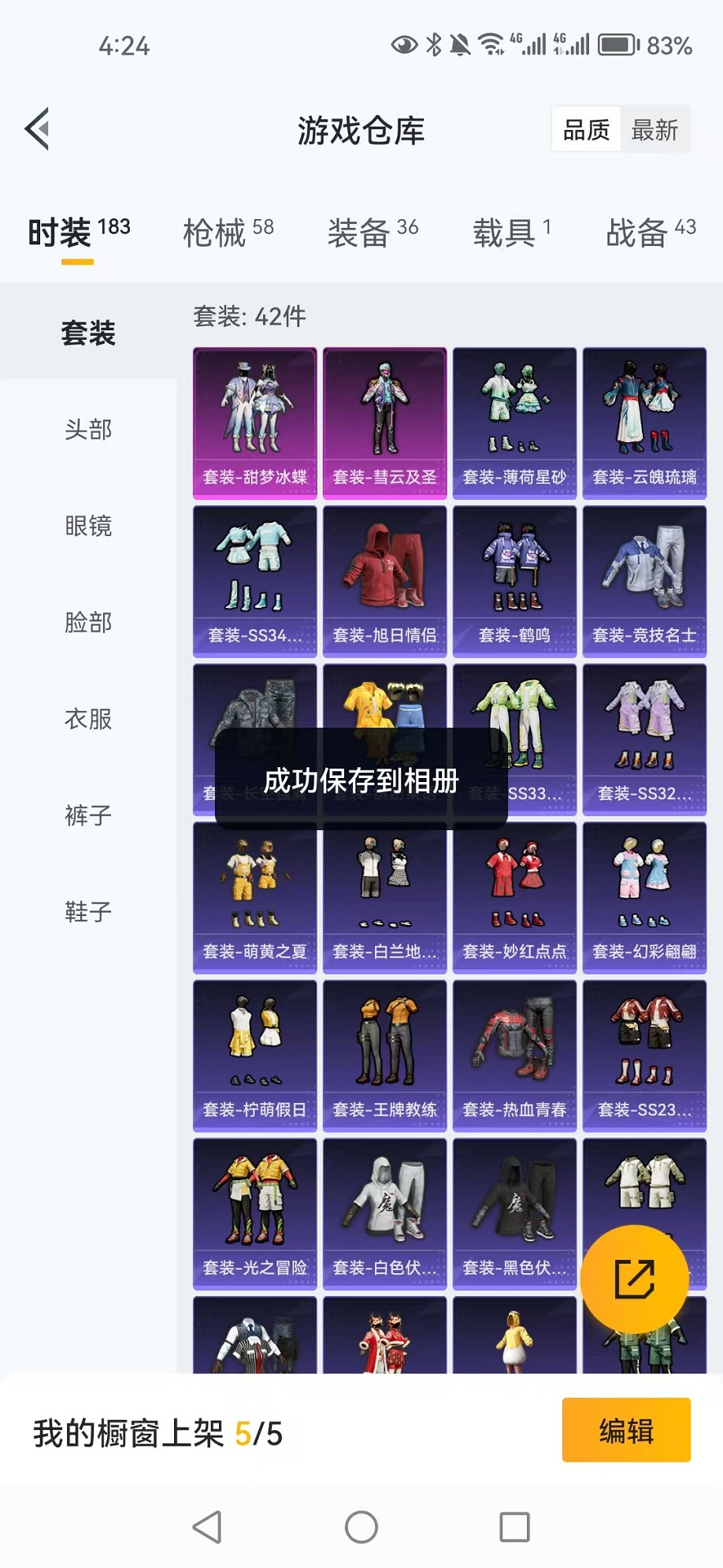 可二次【2粉装1特效呛1载具 可秒换绑】 安卓q区-15328热力值-4印记-42套装-58呛皮 【1载具】 路特斯el花绽灰【2粉装】 甜梦冰蝶 彗云及圣【1特效呛】 dp-28-豹影疾电1级【15热门】 m416-蓝色火焰 长空猛禽 妙红点点 破蛋小黄鸡 白色伏地魔 ss23特训 ss22特训 kar98k-王子的夏天 scar-l-玉兔迎春 m762-天降萌叽 mk47-乌木金纹 um