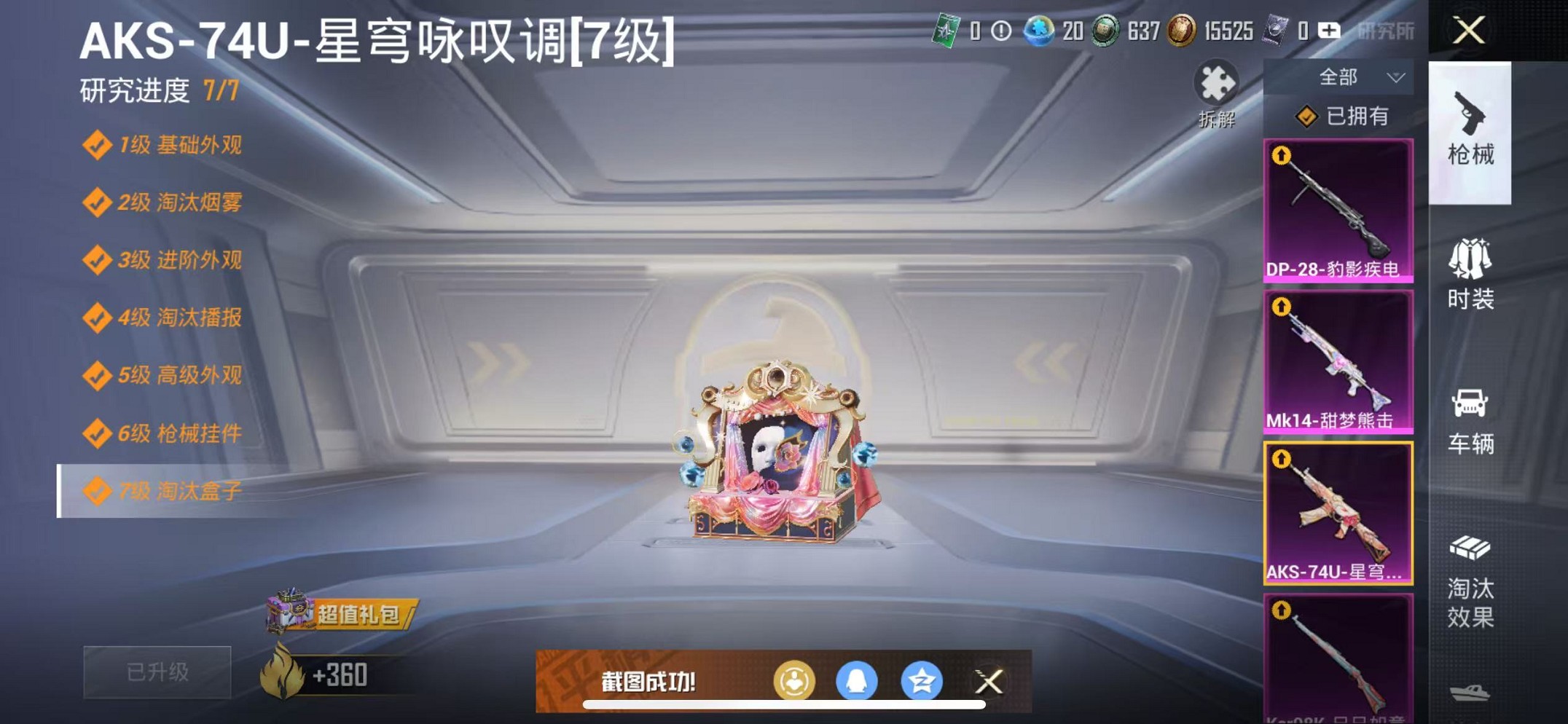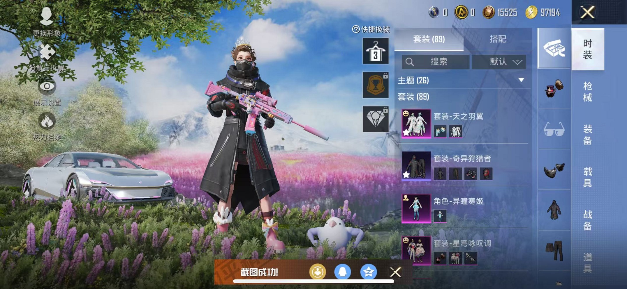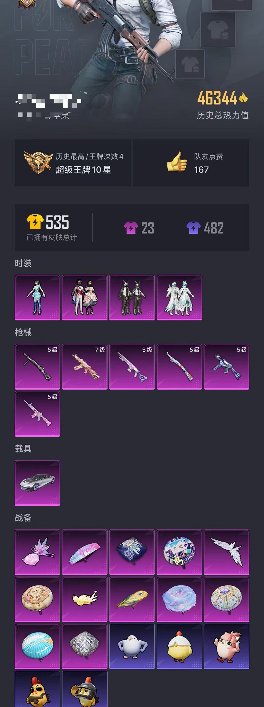 【蓝螳螂蜘蛛侠4粉装6特效呛1载具 可秒换绑】 苹果q区-46344热力值-4印记-89套装-145呛皮 【1载具】 星河领航磐石银【2稀有】 mark.06 奇异狩猎者【4粉装】 数码大师 天之羽翼 星穹咏叹调 角色-异瞳寒姬【6特效呛】 m416-电玩时刻5级 ump45-量子极限5级 mk14-甜梦熊击5级 aks-74u-星穹咏叹调7级 kar98k-巳巳如意5级