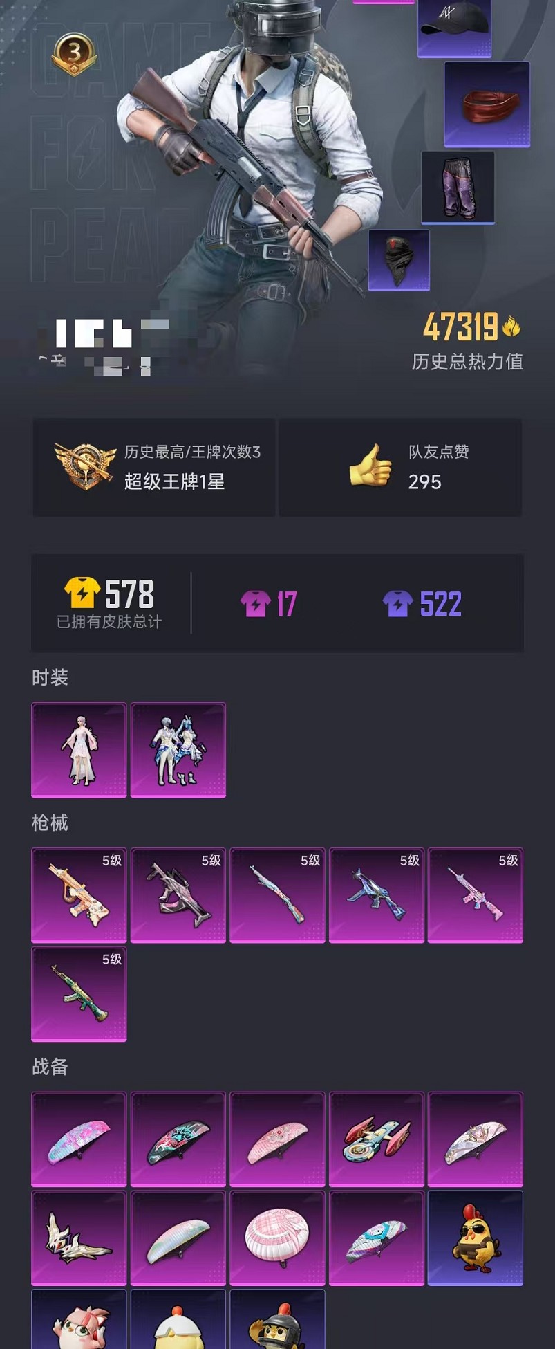 可二次【浪漫波比红眼罩黄金龙骨 2粉装6特效呛 可秒换绑】 安卓q区-47319热力值-3印记-131套装-164呛皮 【2稀有】 m416-黄金龙骨 awm-黄金龙骨【2粉装】 未来歌姬 角色-烟云彩露【6特效呛】 akm-绿萝繁花5级 m416-电玩时刻5级 ump45-量子极限5级 groza-镜光银凌5级 kar98k-巳巳如意5级 aug-暖羊咩咩5级【34热门