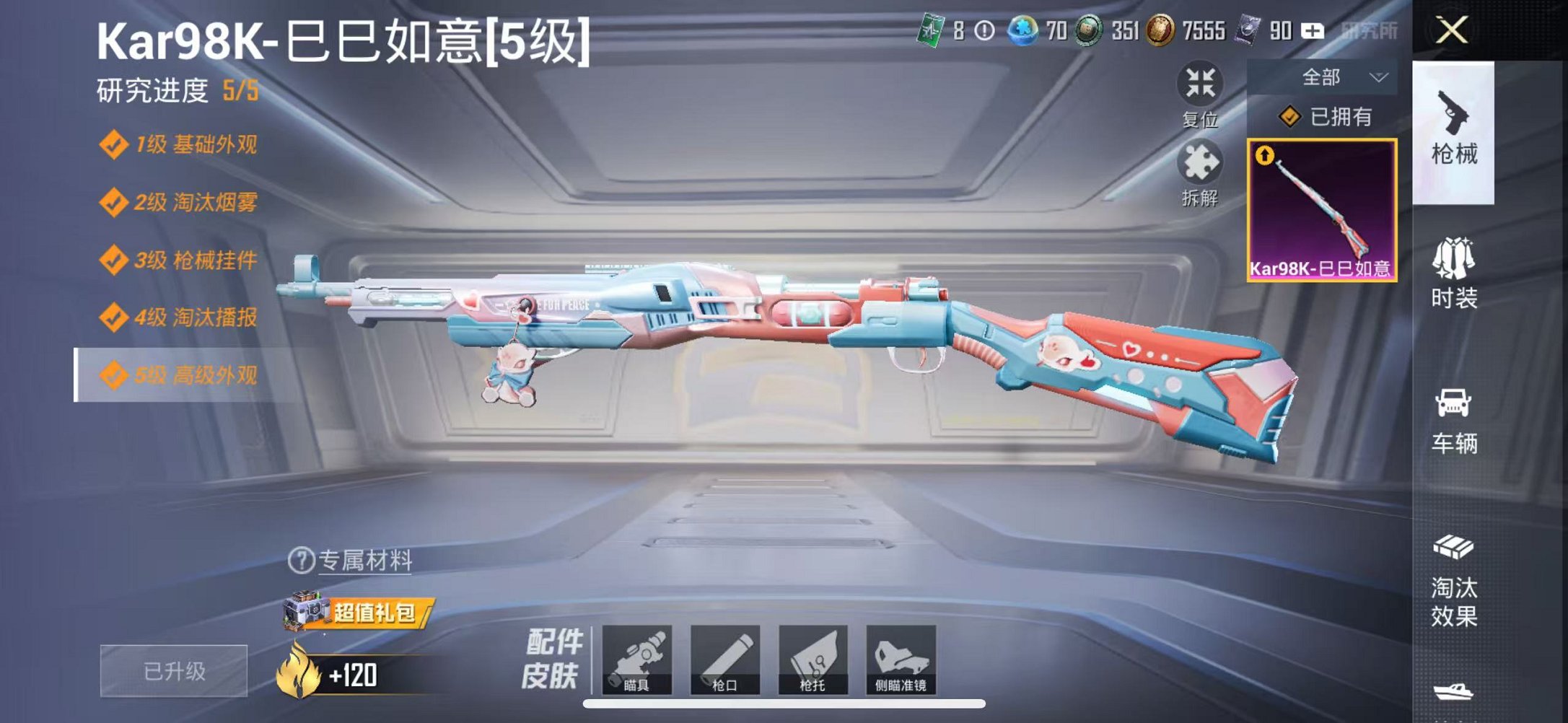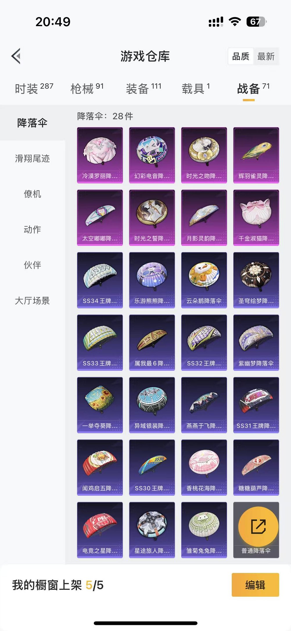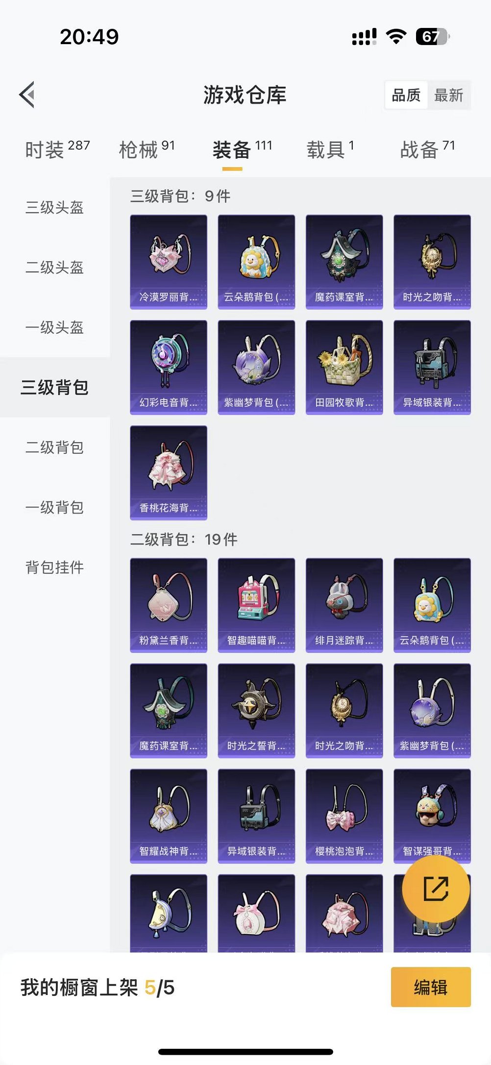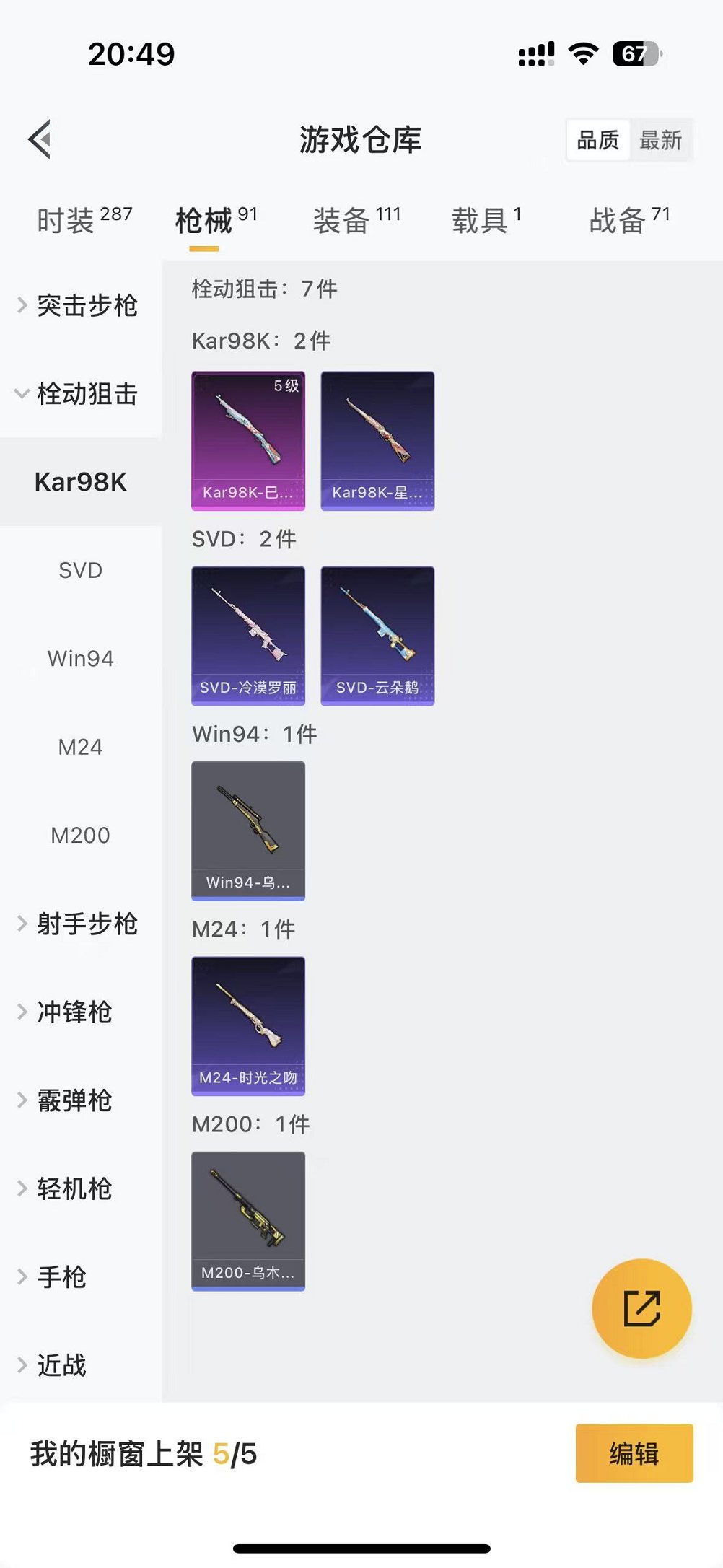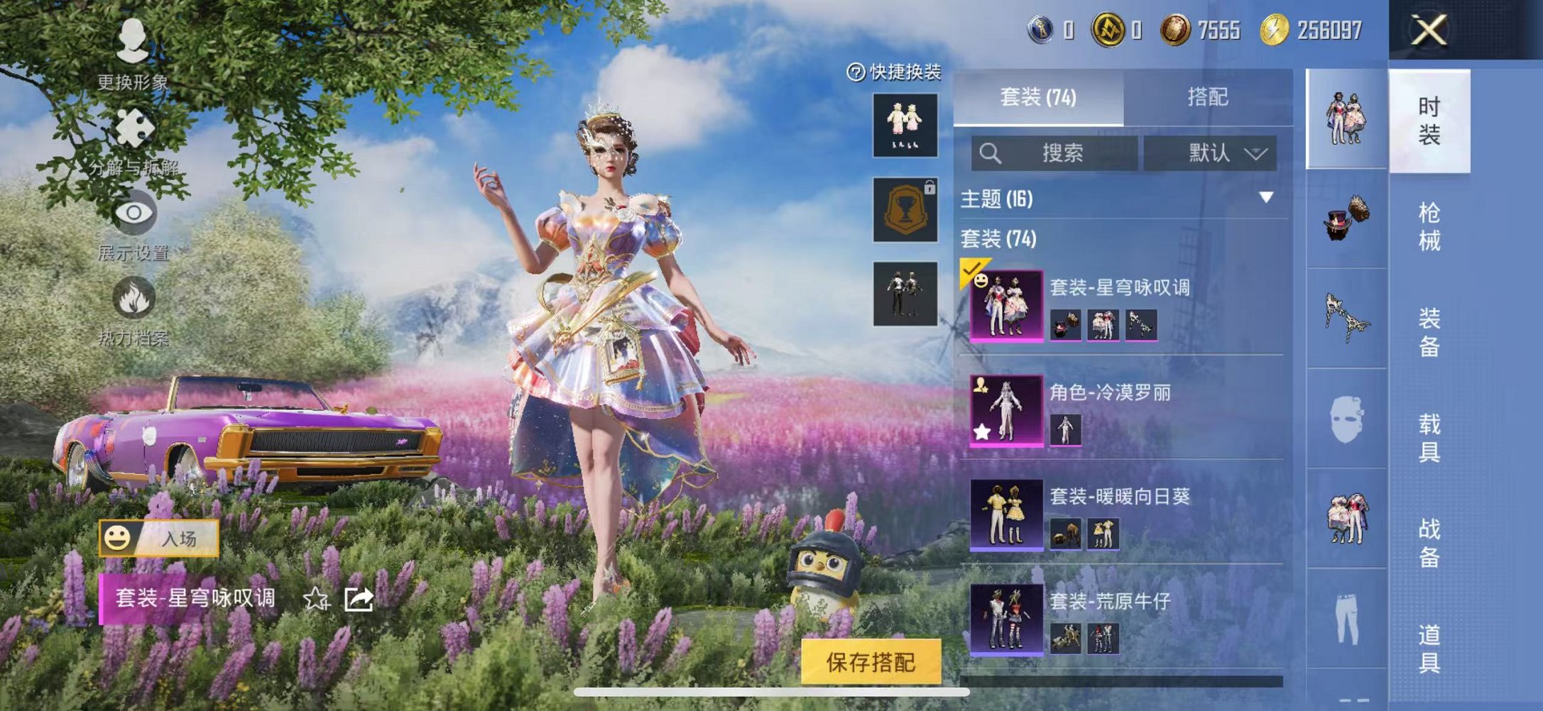 【2粉装1特效呛1载具可秒换绑】 苹果q区-24271热力值-5印记-74套装-91呛皮 【1载具】 虚妄之影炫耀紫【2粉装】 星穹咏叹调 角色-冷漠罗丽【1特效呛】 kar98k-巳巳如意5级【7热门】 长空猛禽 破蛋小黄鸡 白色伏地魔 m762-天降萌叽 ump45-蓝色火焰 dbs-彩虹符号 mg3-幻世战舞者【1飞行器】 粉色滑翔尾迹 营地id:985847008