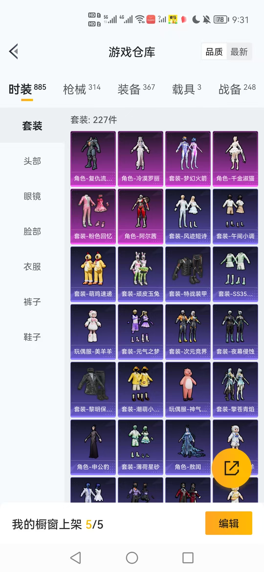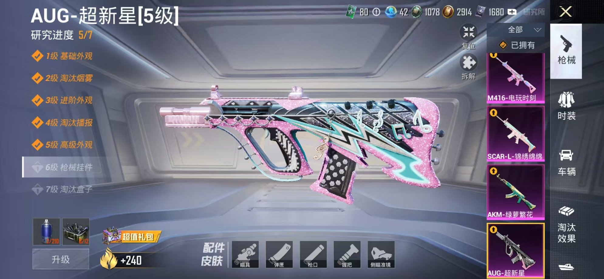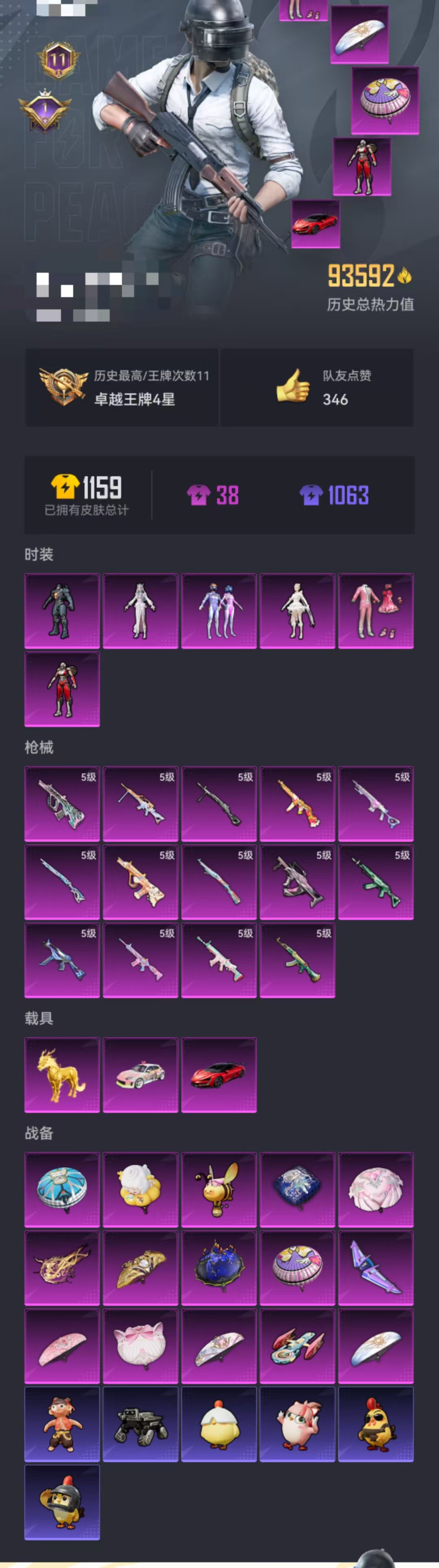 可二次【梦幻火箭蓝粉螳螂6粉装14特效呛3载具可秒换绑】 安卓q区-93592热力值-11印记-227套装-314呛皮 【3载具】 仰望u9赤霞丹朱 羁绊之心 护世瑞兽【3稀有】 8号机 mark.06 星河浪客【6粉装】 梦幻火箭 阿尔茜 复仇流浪者 粉色回忆 角色-冷漠罗丽 角色-千金淑猫【14特效呛】 scar-l-锦绣绵绵5级 aug-超新星5级 akm-绿萝繁花5级 s