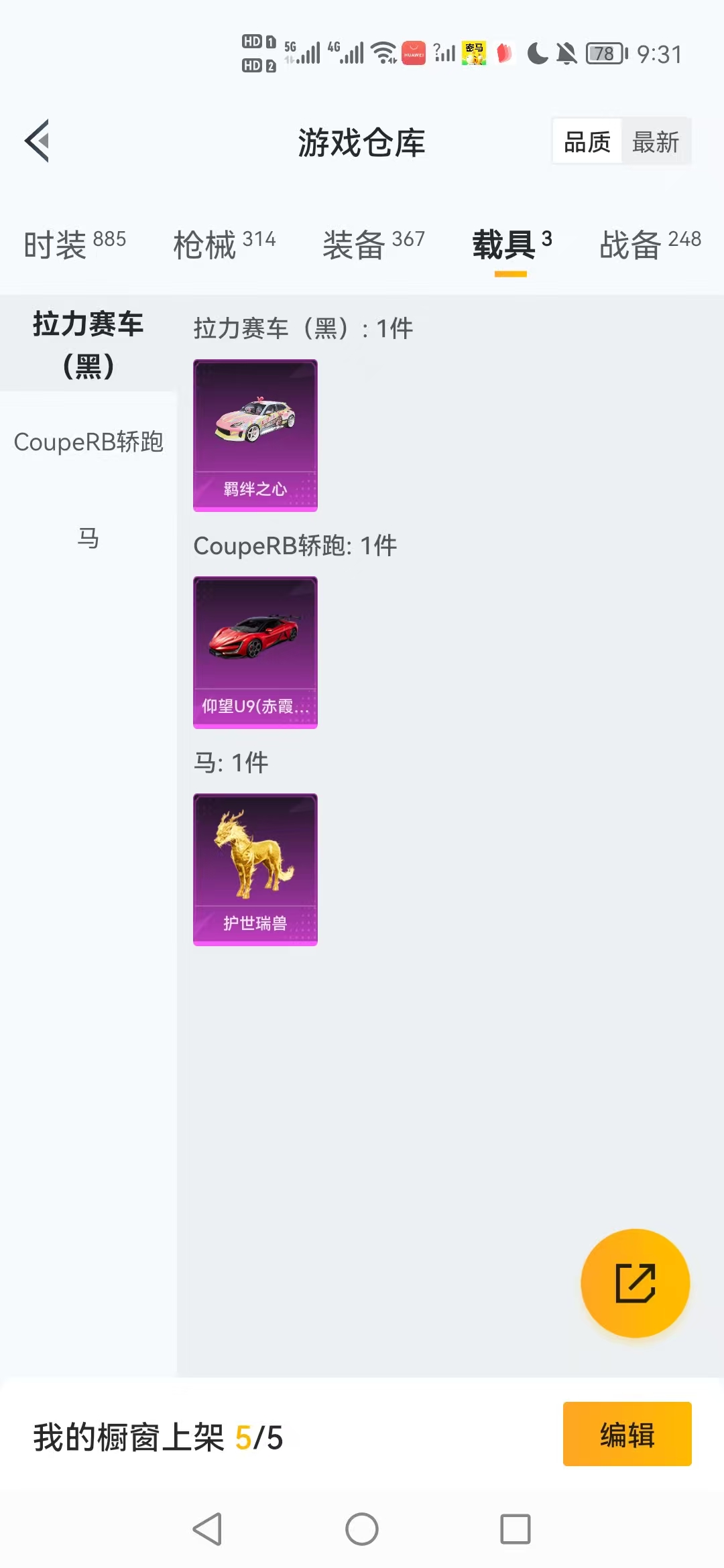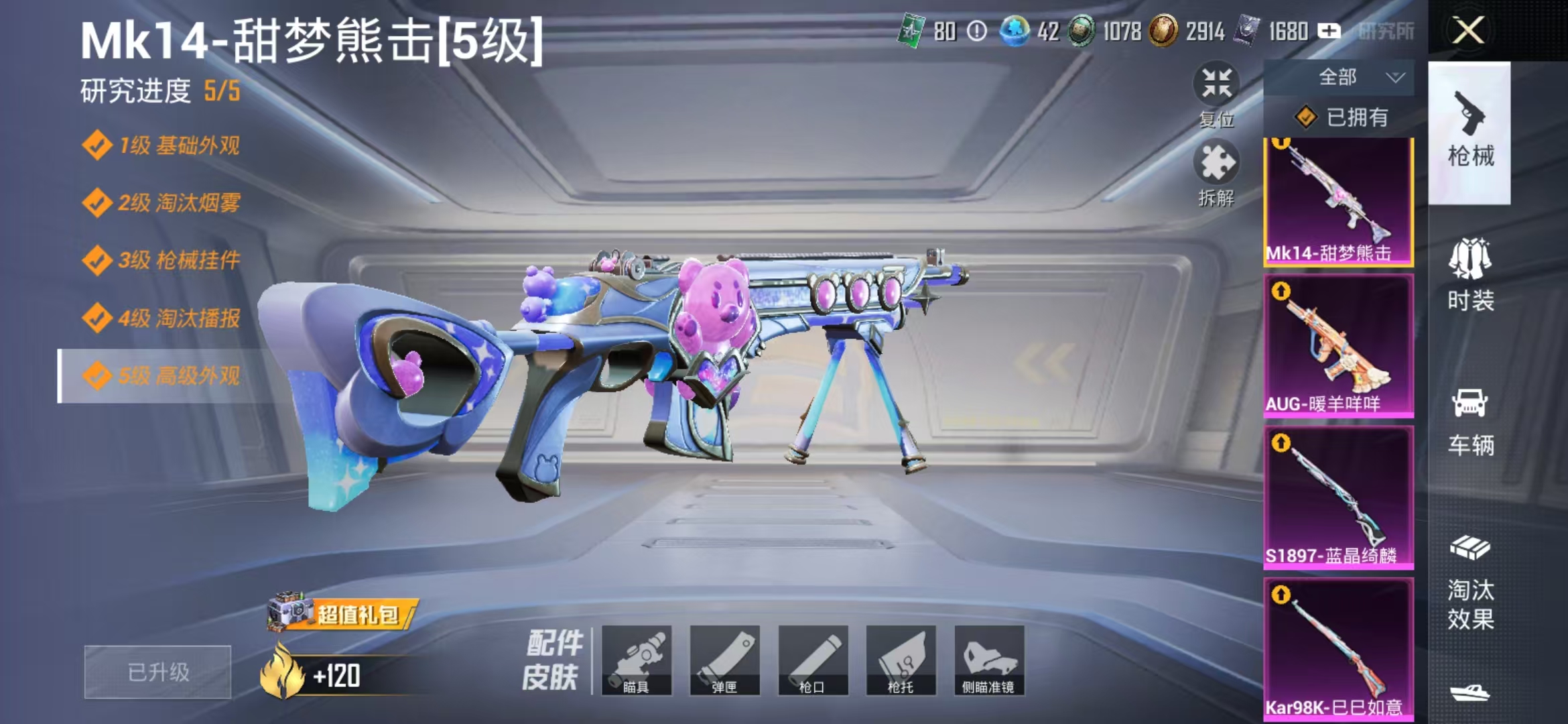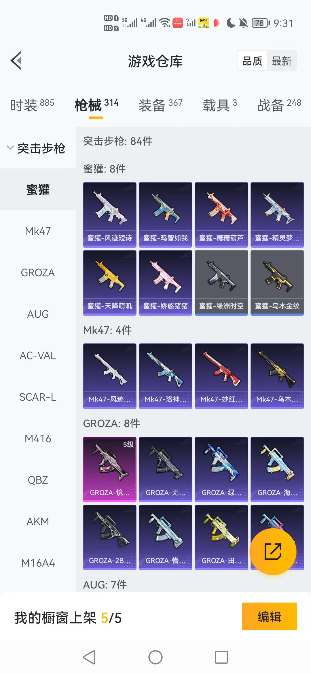 可二次【梦幻火箭蓝粉螳螂6粉装14特效呛3载具可秒换绑】 安卓q区-93592热力值-11印记-227套装-314呛皮 【3载具】 仰望u9赤霞丹朱 羁绊之心 护世瑞兽【3稀有】 8号机 mark.06 星河浪客【6粉装】 梦幻火箭 阿尔茜 复仇流浪者 粉色回忆 角色-冷漠罗丽 角色-千金淑猫【14特效呛】 scar-l-锦绣绵绵5级 aug-超新星5级 akm-绿萝繁花5级 s