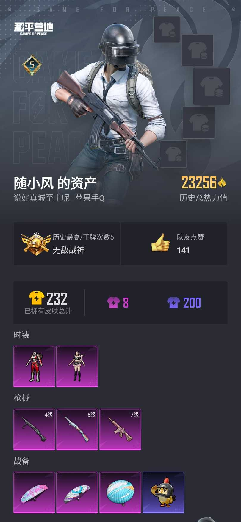 【和平精英】【lyhp16947】无敌战神 2粉3特 满级m4心之恋语 2粉装,3特效呛,0载具,历史最高段位:无敌战神 王牌印记5次 热力值:23256,63套装,72呛械,57装备,28战备;套装:角色-阿尔茜,角色-白兰星,套装-青年教官,套装-红色运动,套装-黄色伏地魔,套装-白色伏地魔,套装-黑色伏地魔,套装-竞技名士,套装-酒红色名流,套装-湖蓝色名流,套装-猛禽,套装-长空猛禽,套装-雨林探路者,套装-六六大吉,套装-贵族骑装,套装-龙腾端午,套装-沙漠毒蛇,套装-完美偶像,套装-街头潮人,套装-蓝彩潮人,套装-魅力单车,套装-绮丽涂鸦,套装-破晓战魂,套装-幻世战舞者,套装-金耀舞者,套装-弄潮海豚,套装-深海小丑鱼,套装-缤纷果语,套装-滨海厨神,套装-风暴特警,套装-破蛋小黄鸡,套装-霓虹街区,套装-萌黄之夏,套装-战术大师,套装-ss18特训,套装-耀粉歌者,套装-ss17特训,套装-ss19特训,套装-ss20特训,套装-ss21特训,套装-ss23特训,套装-妙红点点,套装-幻彩翩翩,套装-王牌教练,套装-柠萌假日,套装-龟仙人,套装-ss25特训,套装-惊鸿侠骨,套装-锦衣飞扬,套装-龙的传人,套装-ss26特训,套装-快闪甜心,套装-春光漫游,套装-空岛之星,套装-ss27特训,套装-老实芭蕉,角色-银尘,套装-ss33特训,套装-巳巳如意,套装-元气之梦,套装-ss34特训,套装-ss35特训,套装-萌鸡速递;呛皮:m762-绯红前夜,m762-奇异狩猎者,m762-天降萌叽,g36c-乌木金纹,akm-缤纷海域,akm-涂鸦街区,akm-彩虹符号,akm-龙的传人,akm-霓彩脉冲,7级m416-心之恋语,m416-蓝色火焰,m416-糯团青竹,ac-val-乌木金纹,ac-val-快闪甜心,scar-l-夜灯,aug-耀粉歌者,aug-紫晶流影,mk47-乌木金纹,mk47-妙红点点,m16a4-幻世战舞者,famas-乌木金纹,amr-妙红点点,amr-鸡智如我,amr-乌木金纹,win94-乌木金纹,m24-乌木金纹,莫辛纳甘-乌木金纹,5级kar98k-巳巳如意,kar98k-彩虹符号,kar98k-乌木金纹,m200-惊鸿侠骨,mk14-乌木金纹,mk14-猪猪侠,mk14-薄荷星砂,sks-糯团青竹,m417-惊鸿侠骨,mini14-鸡智如我,mk20-h-快闪甜心,mp5k-乌木金纹,p90-快闪甜心,p90-玩趣呆呆,p90-乌木金纹,uzi-啾咪啾咪,uzi-炫彩糖果,aks-74u-乌木金纹,汤姆逊-天降萌叽,野牛-乌木金纹,s12k-幻世战舞者,s12k-霓彩脉冲,dbs-第五大道,dbs-乌木金纹,spas-12-田园牧歌,spas-12-乌木金纹,s686-生命誓言,mg3-乌木金纹,mg3-妙红点点,mg3-惊鸿侠骨,m249-彩虹符号,m249-妙红点点,m249-莲影清波,4级dp-28-豹影疾电,蝎式手呛-闲梦青缨,沙墨之鹦-快闪甜心,平底锅-妙红点点,平底锅-惊鸿侠骨,平底锅-快闪甜心,平底锅-空岛之星,撬棍-幻世战舞者,破片手留单-呆爆全场,破片手留单-拽到爆炸,铝热弹-炫彩糖果,爆炸猎弓-惊鸿侠骨;降落伞:异域银装飞行器; 详情看图