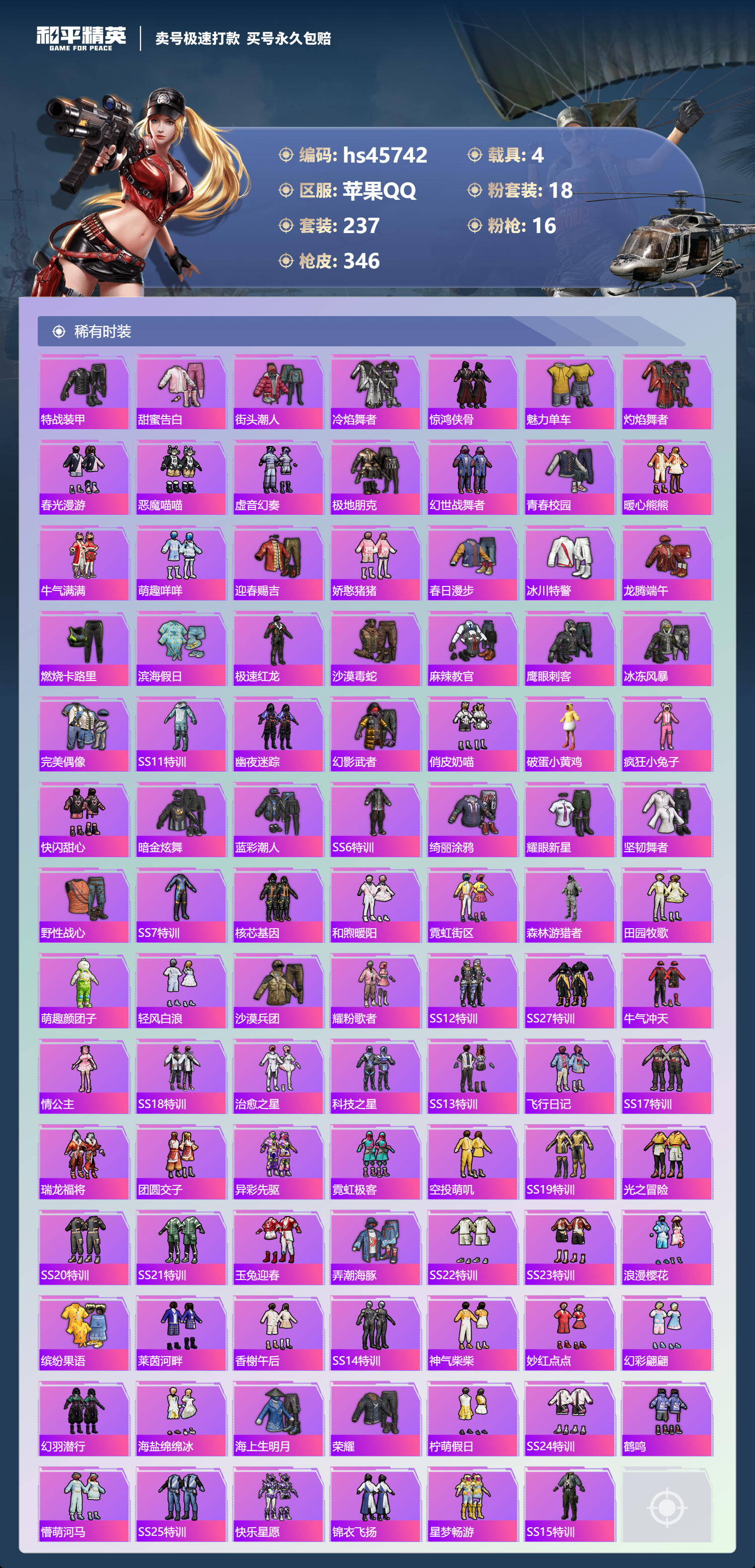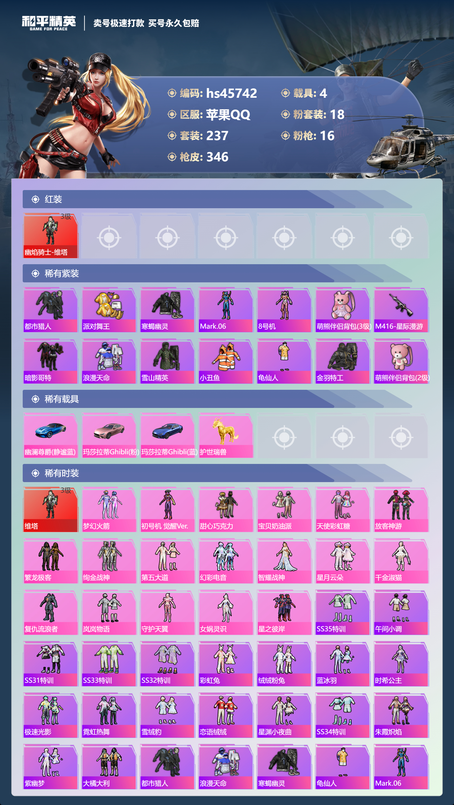 hs45742 苹果手q-13王牌印记-18粉装-16特效呛-4载具-热力值-237套装-346呛皮-5卓越印记-5传奇印记 【18粉装】梦幻火箭初号机 觉醒ver.甜心巧克力宝