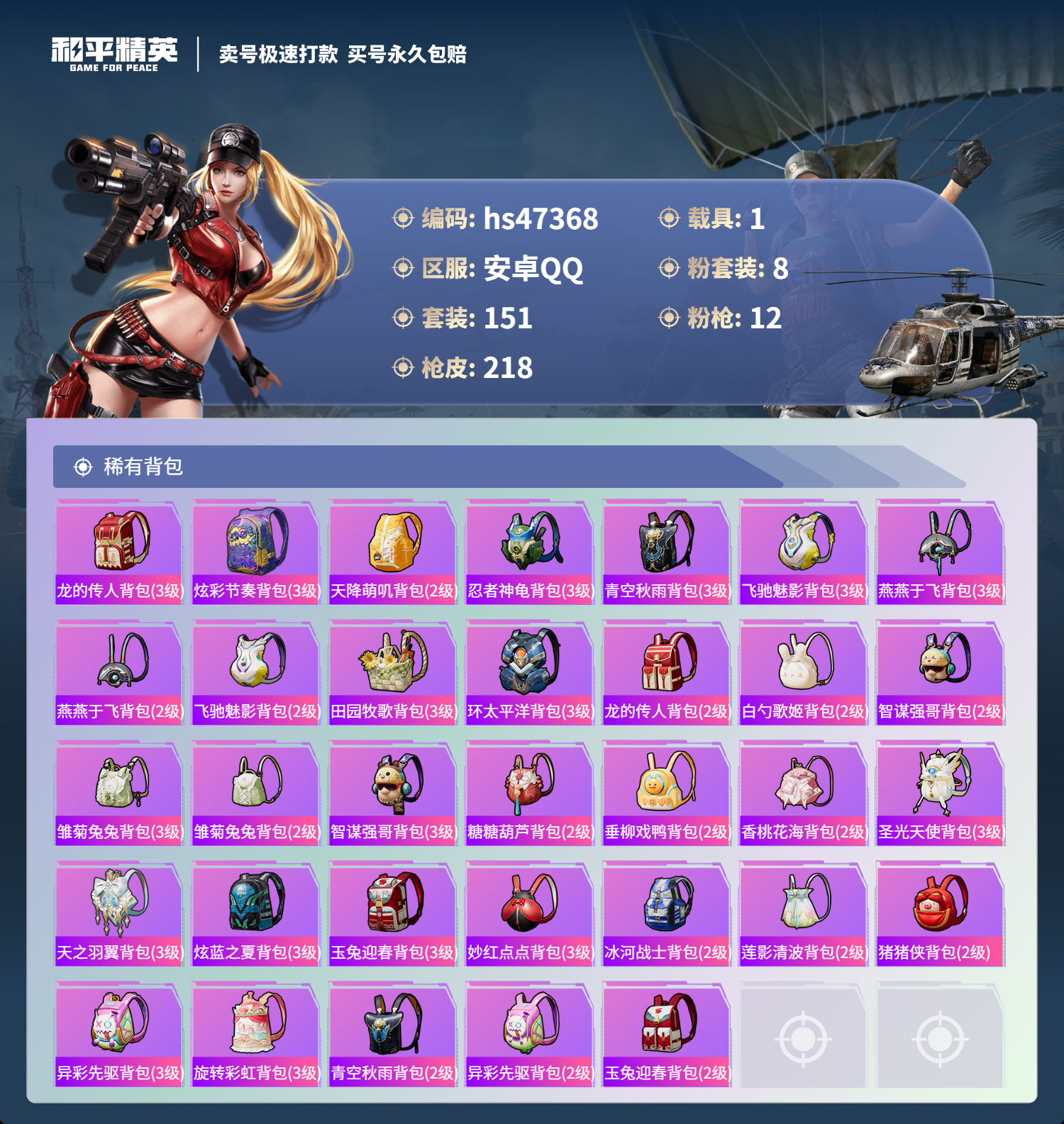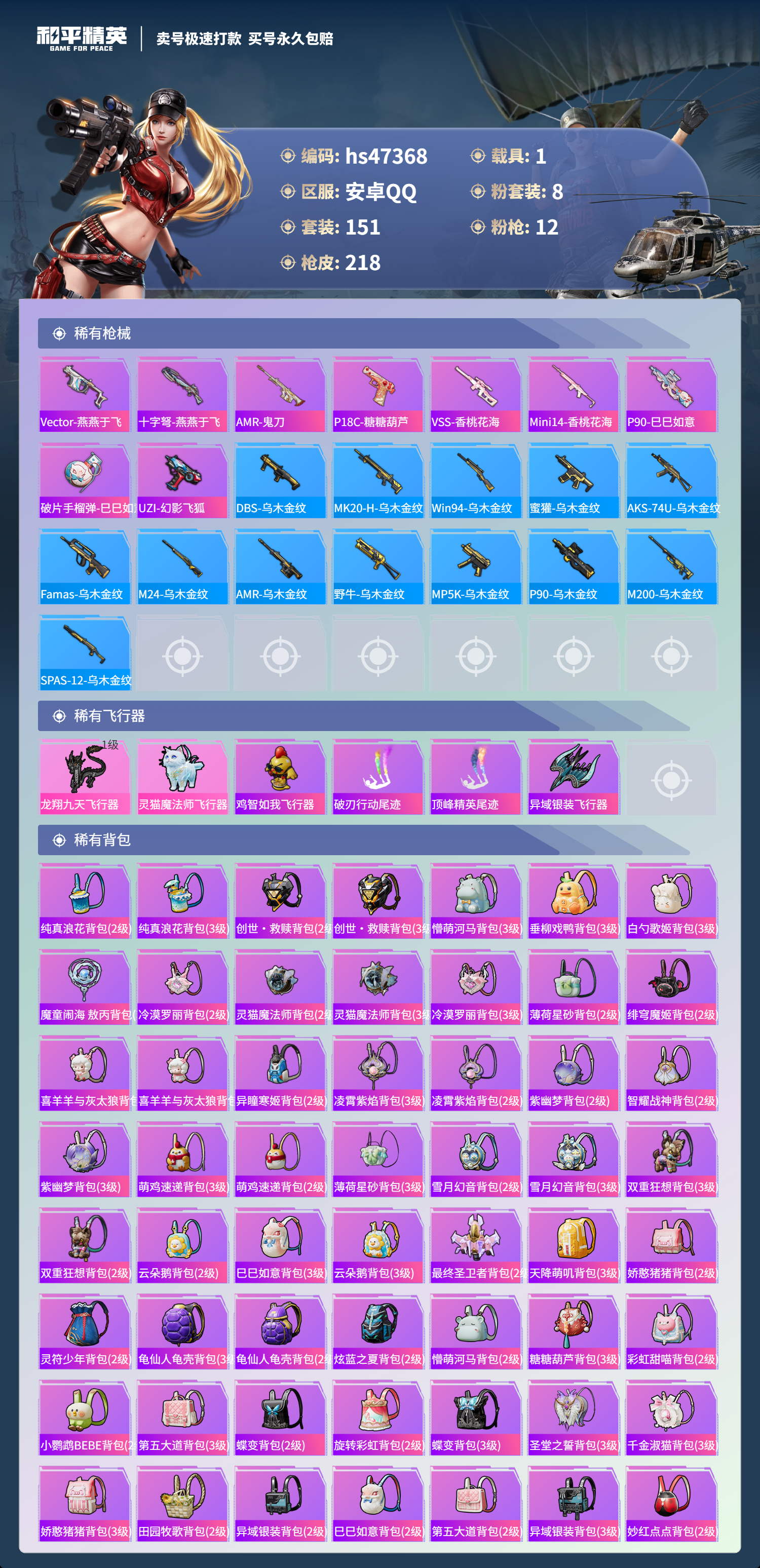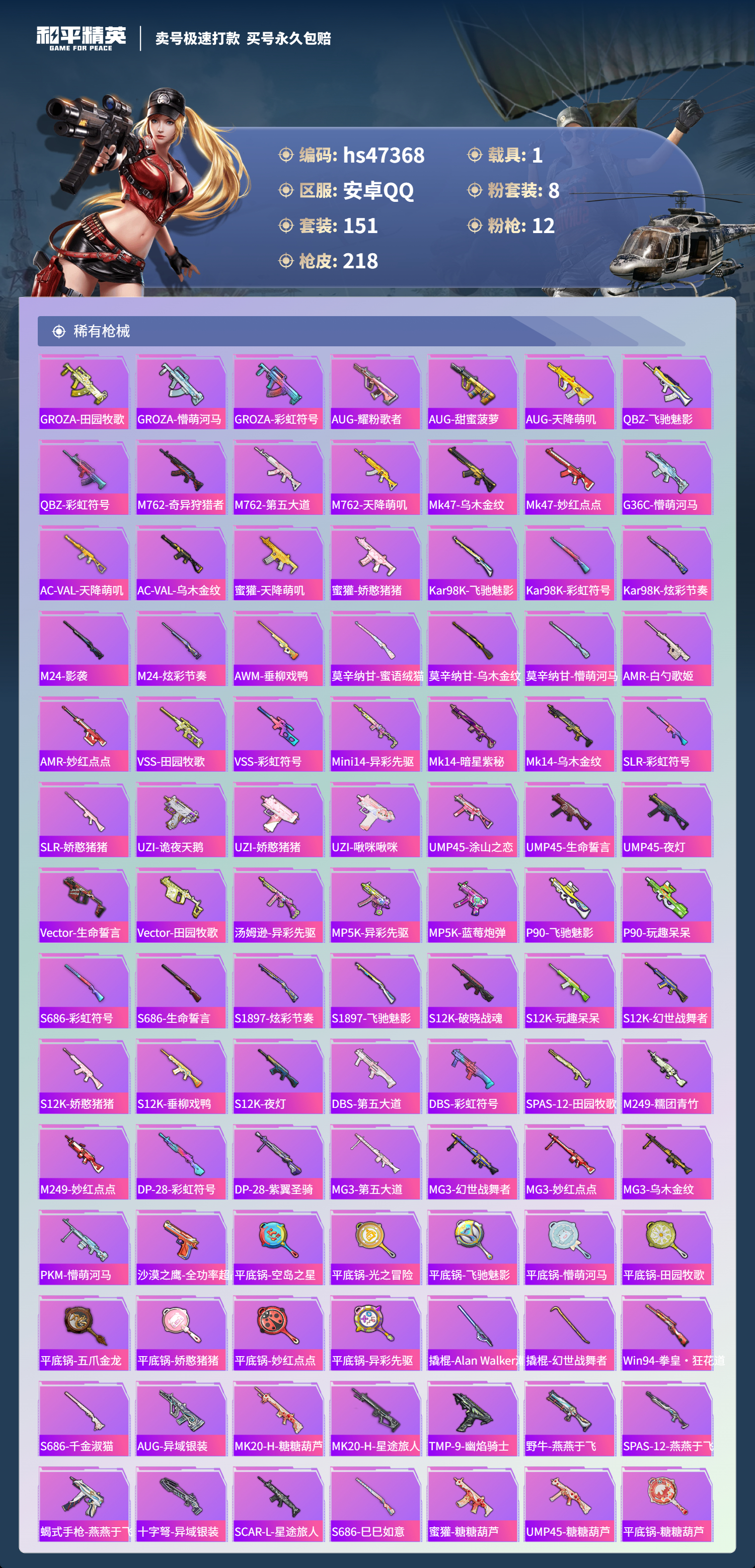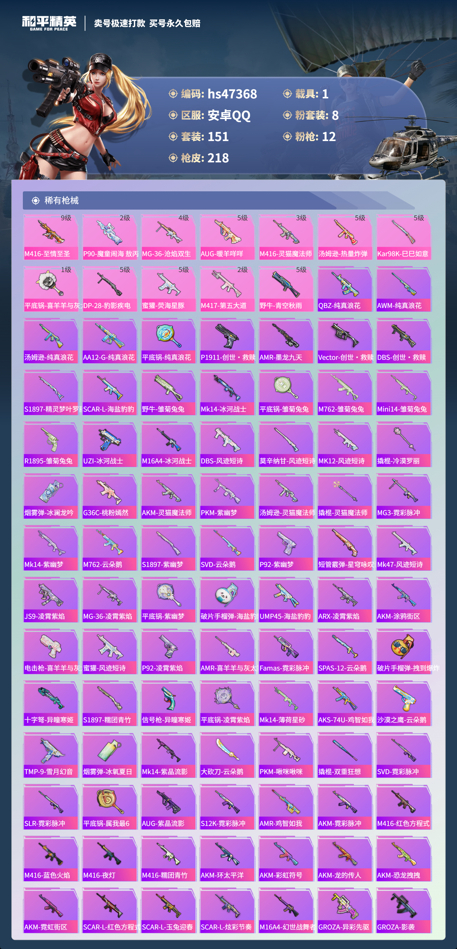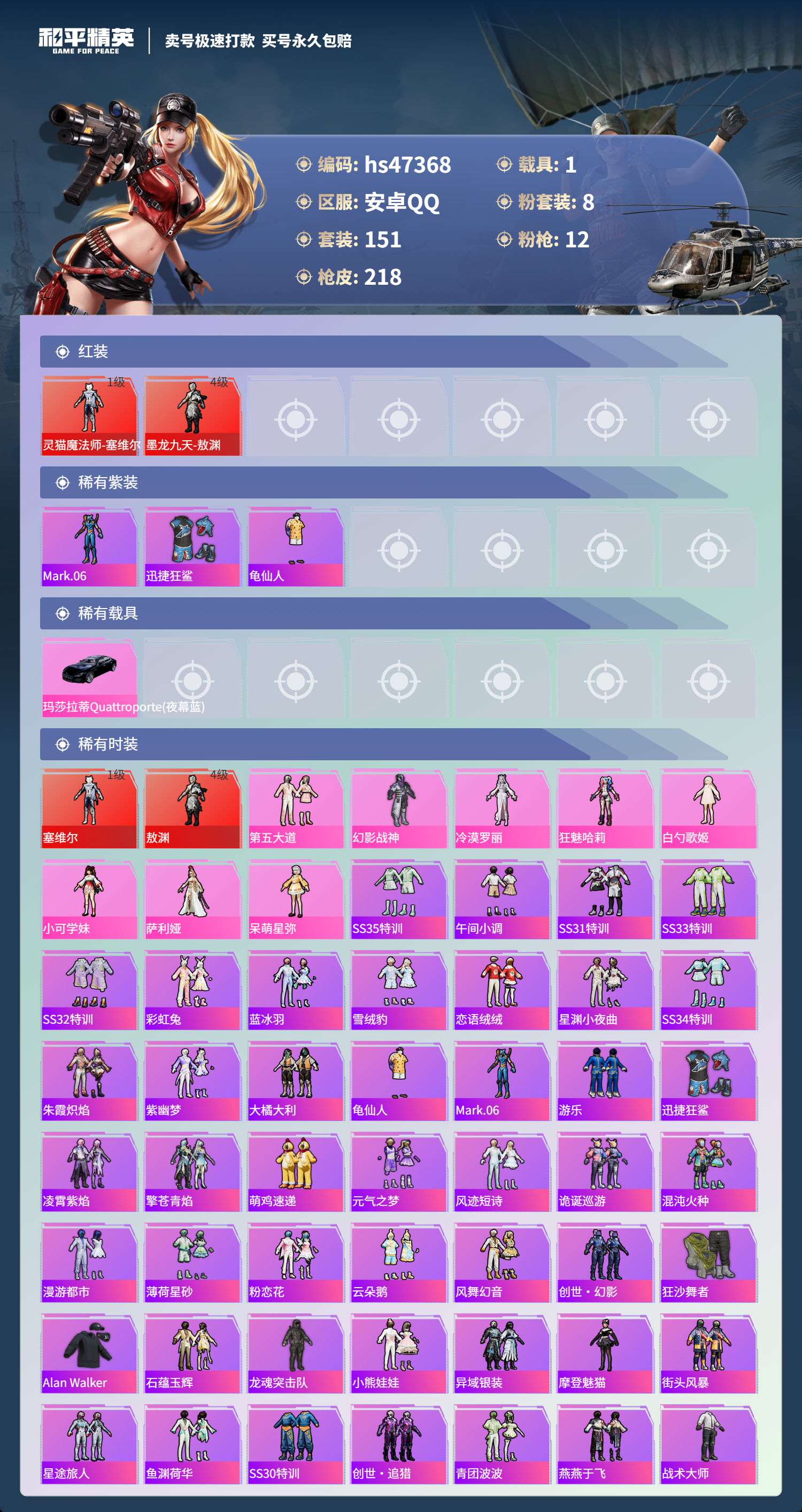 hs47368 安卓手q-14王牌印记-8粉装-12特效呛-1载具-73777热力值-151套装-218呛皮-1卓越印记-0传奇印记 【8粉装】第五大道幻影战神冷漠罗丽狂魅哈莉白勺歌姬小
