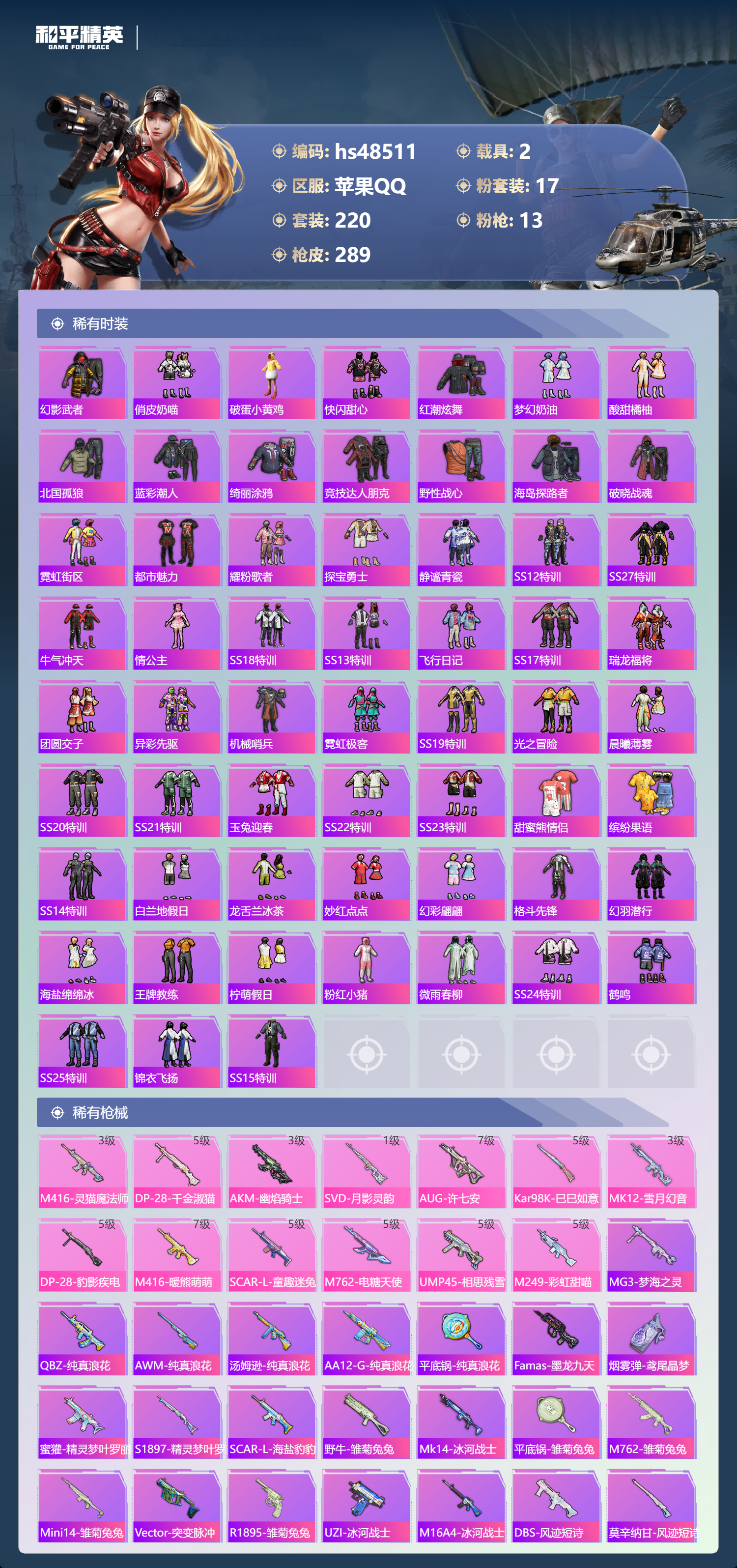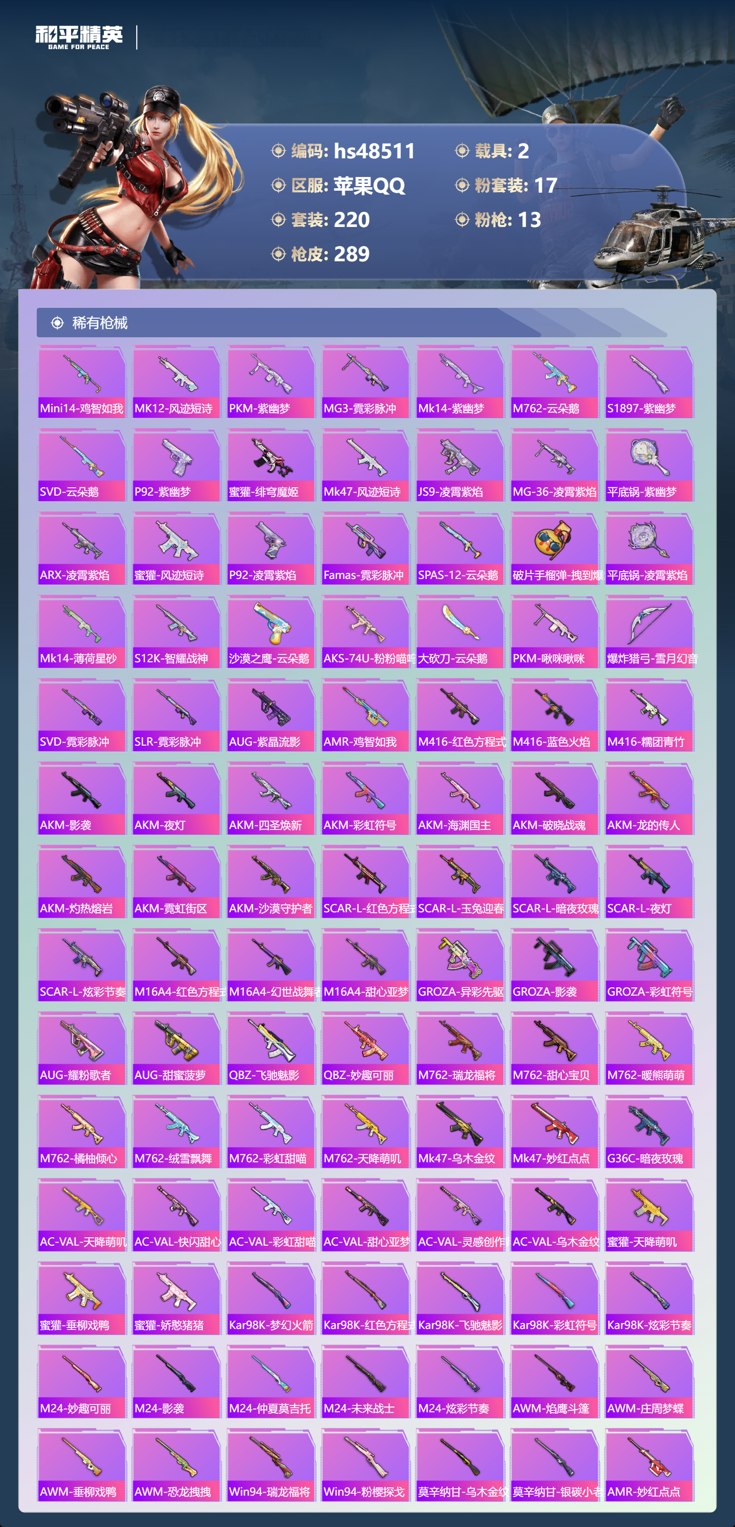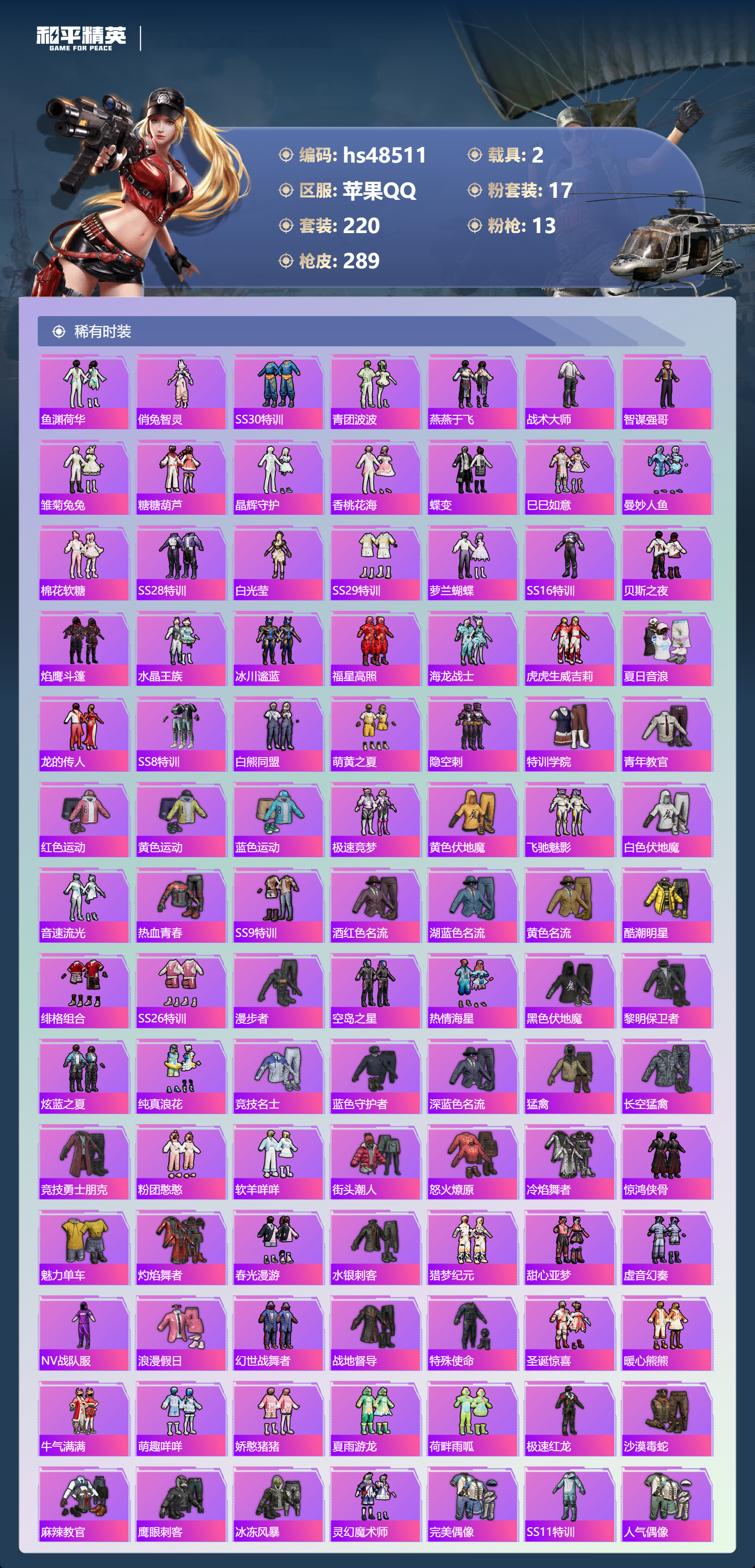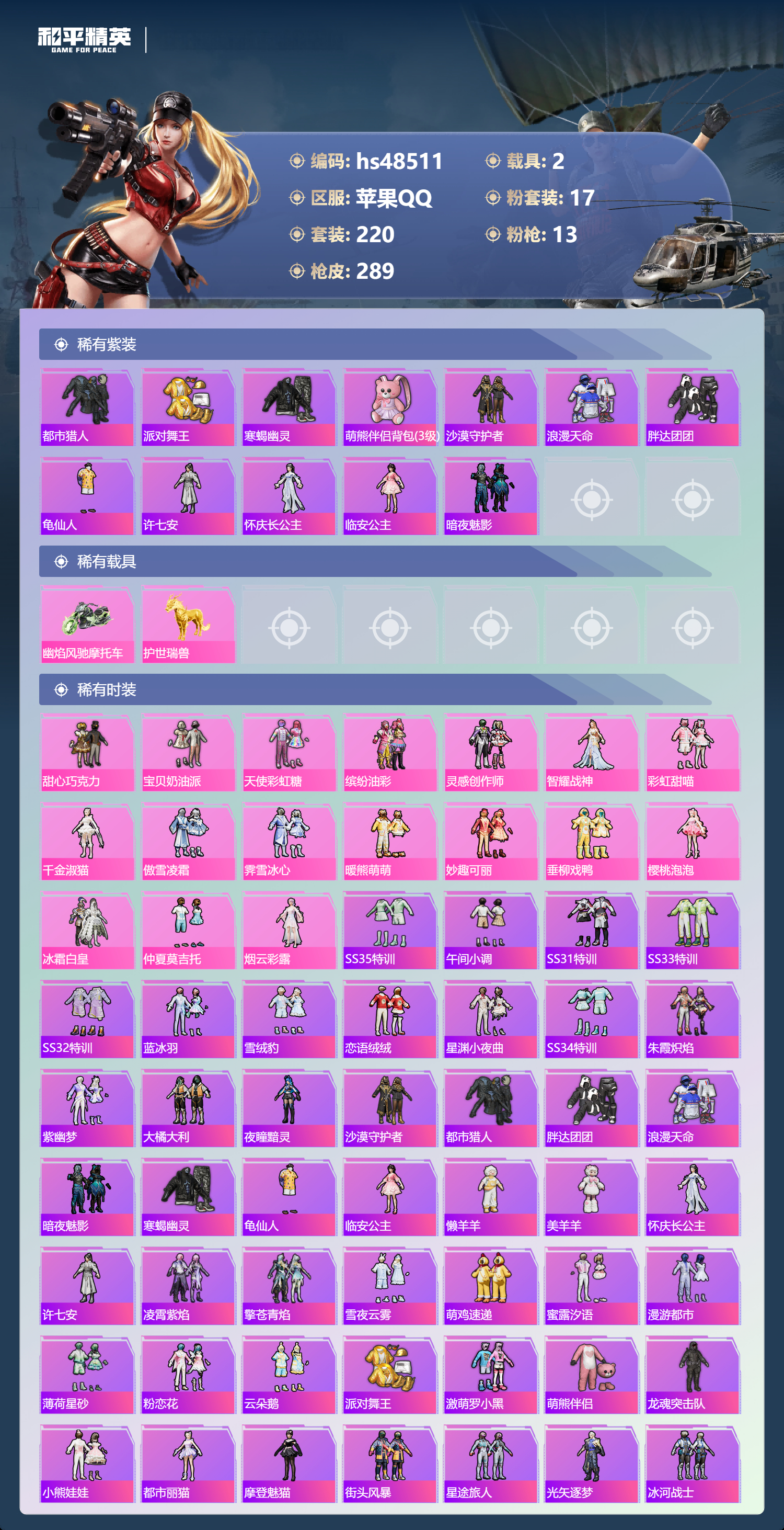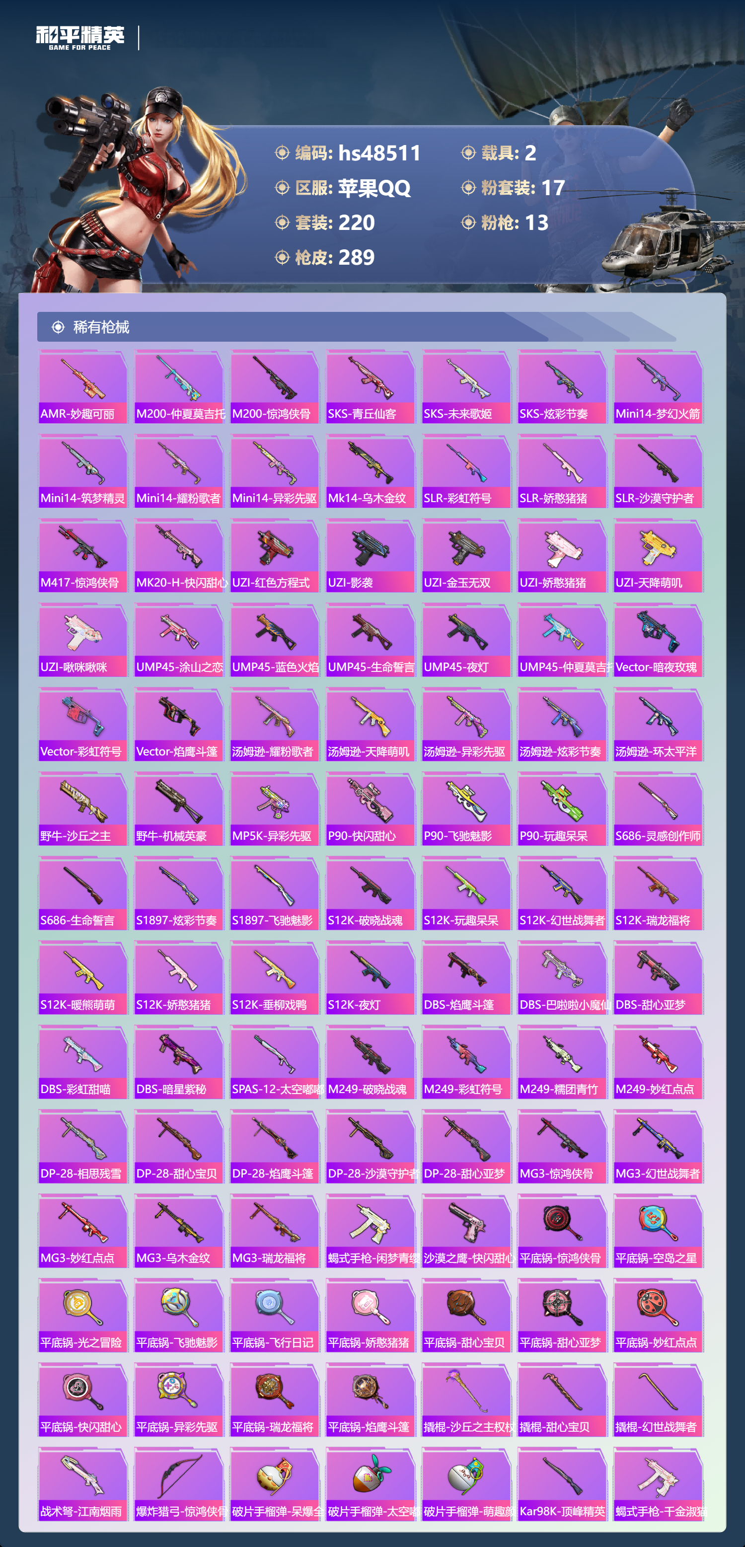 hs48511 苹果手q-16王牌印记-17粉装-13特效呛-2载具-热力值-220套装-289呛皮-1卓越印记-1传奇印记 【17粉装】套装-甜心巧克力套装-宝贝奶油派套装-天使彩虹