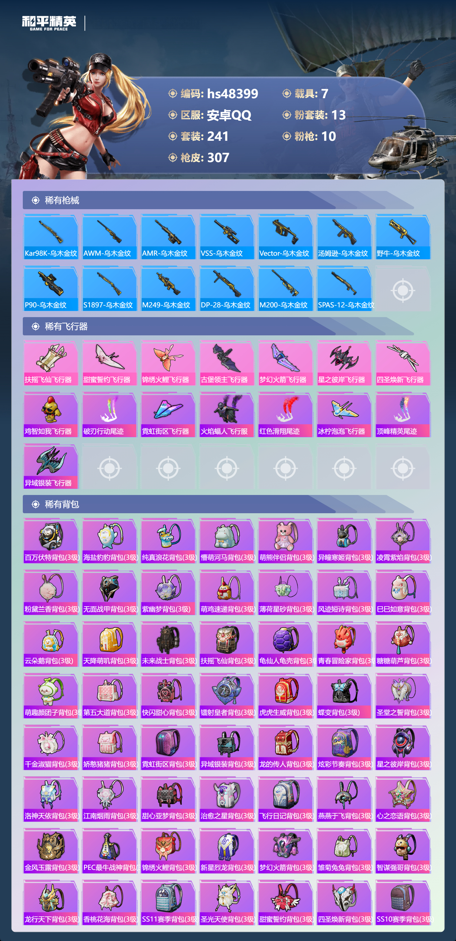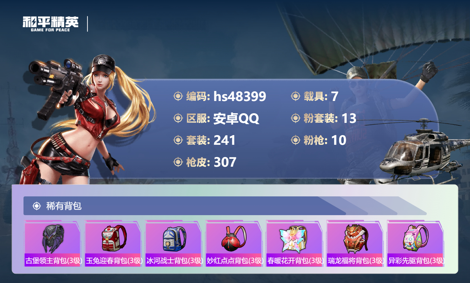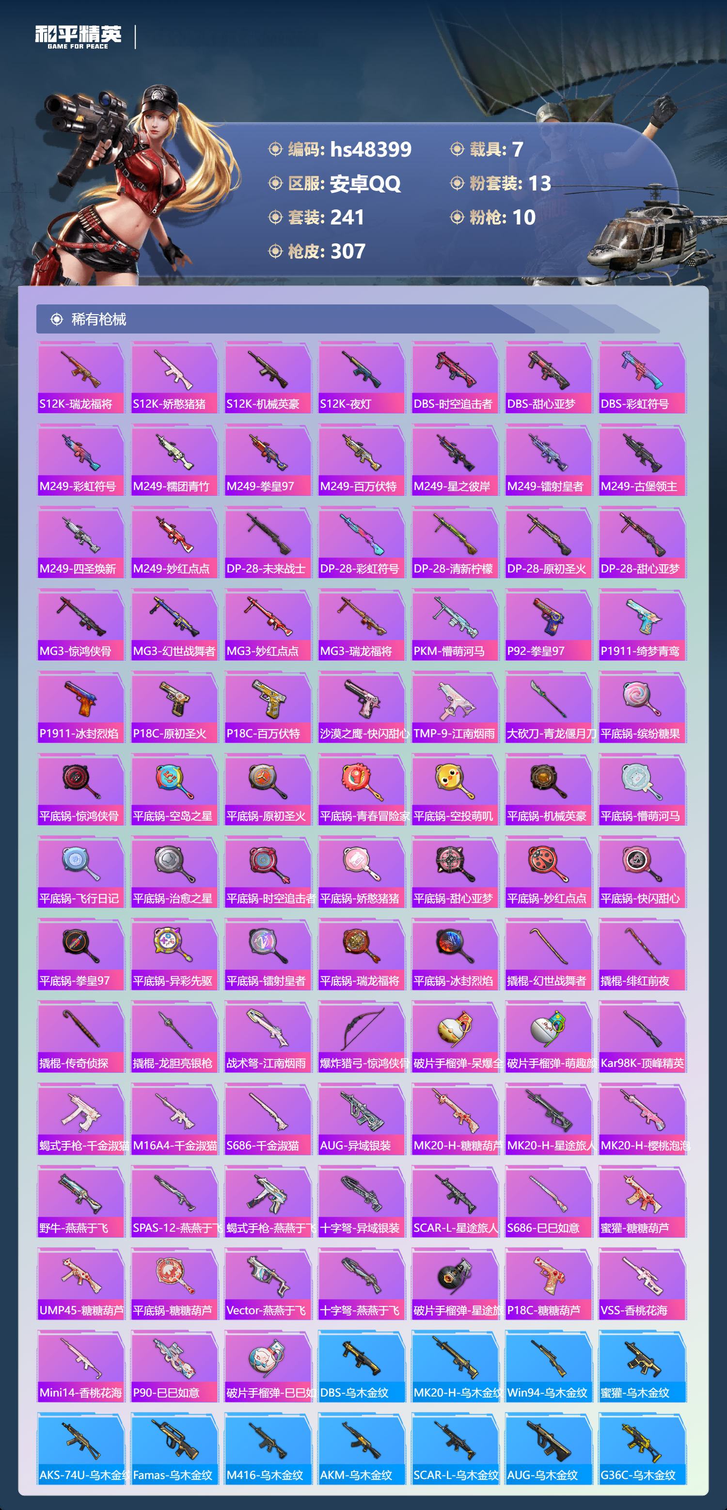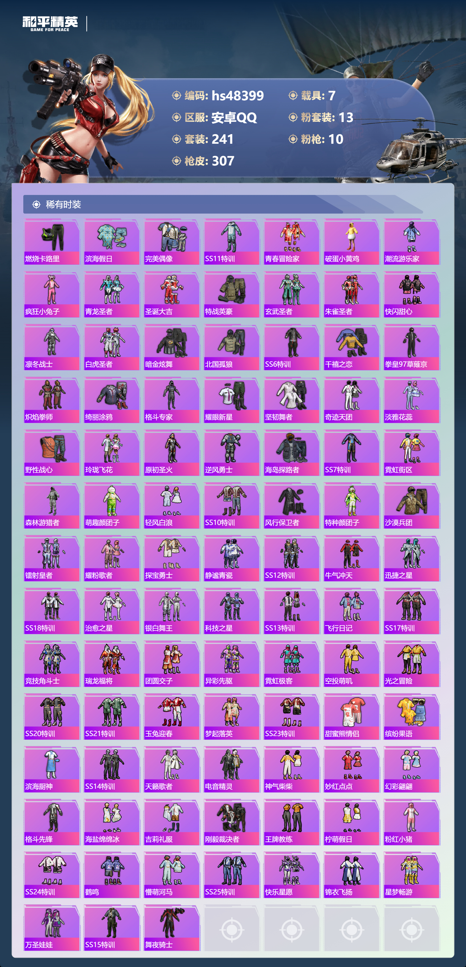 hs48399 安卓手q-21王牌印记-1红装-13粉装-10特效呛-7载具-热力值-241套装-307呛皮-7卓越印记-3传奇印记 【1红装】角色-银呛赵云/5级 【13粉装】套装-古堡