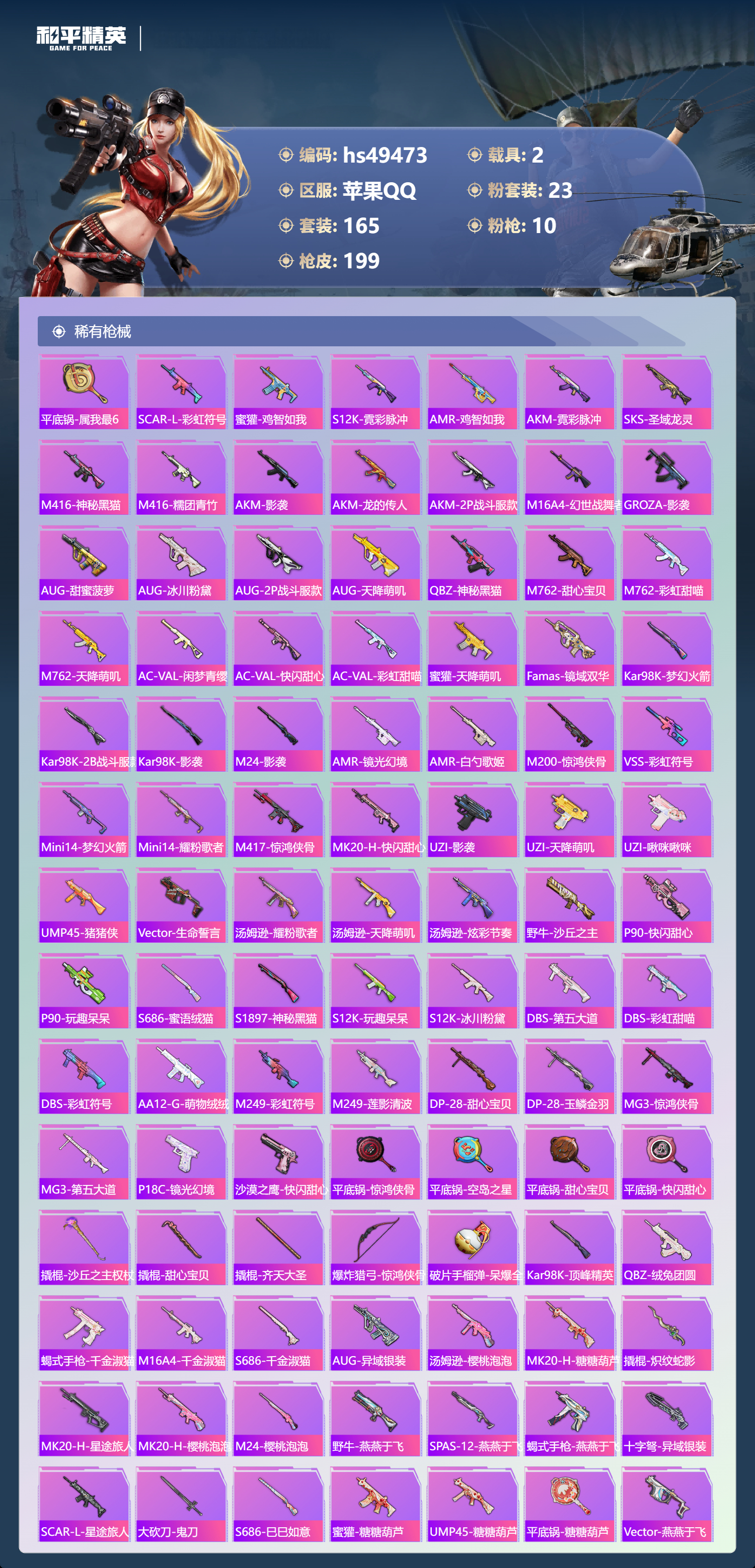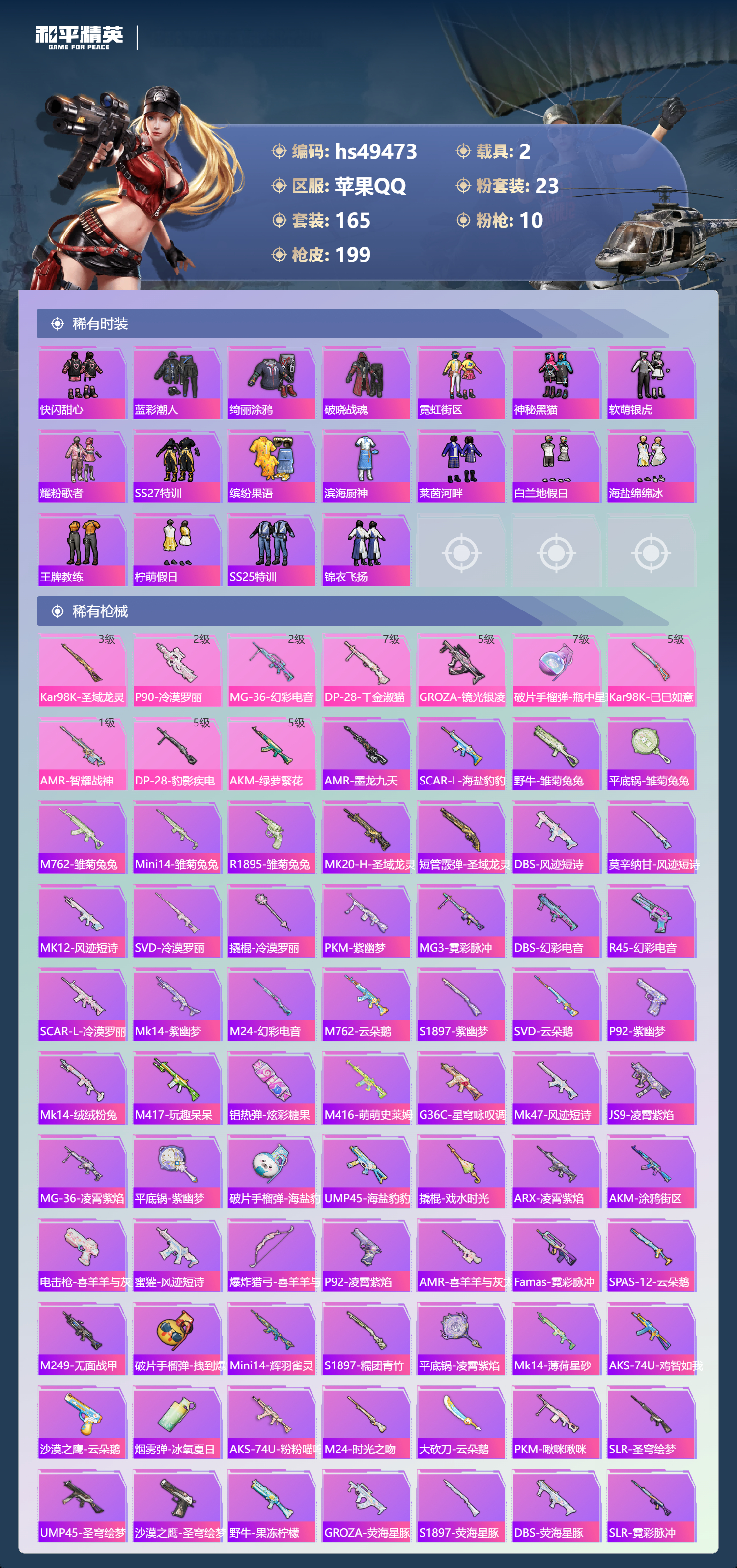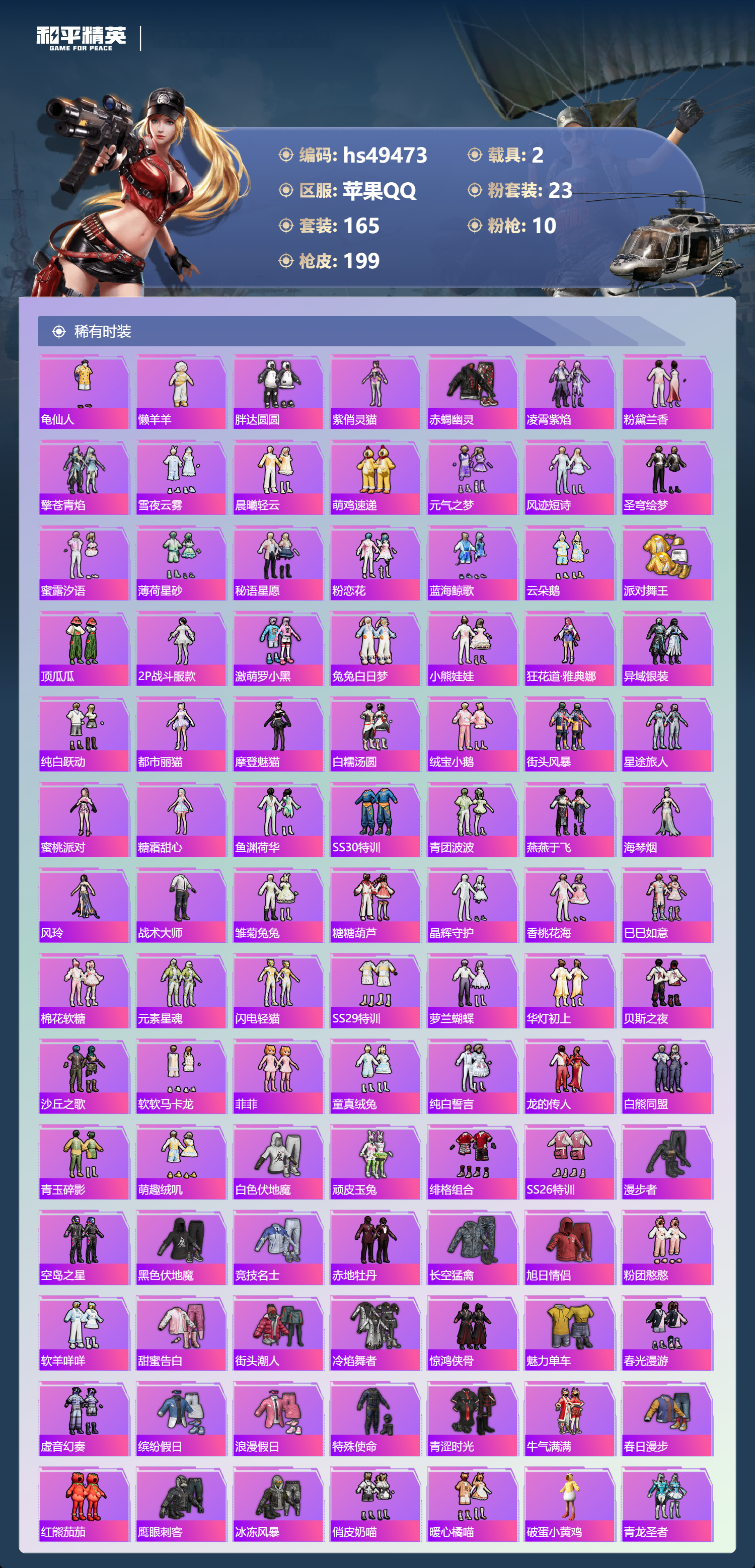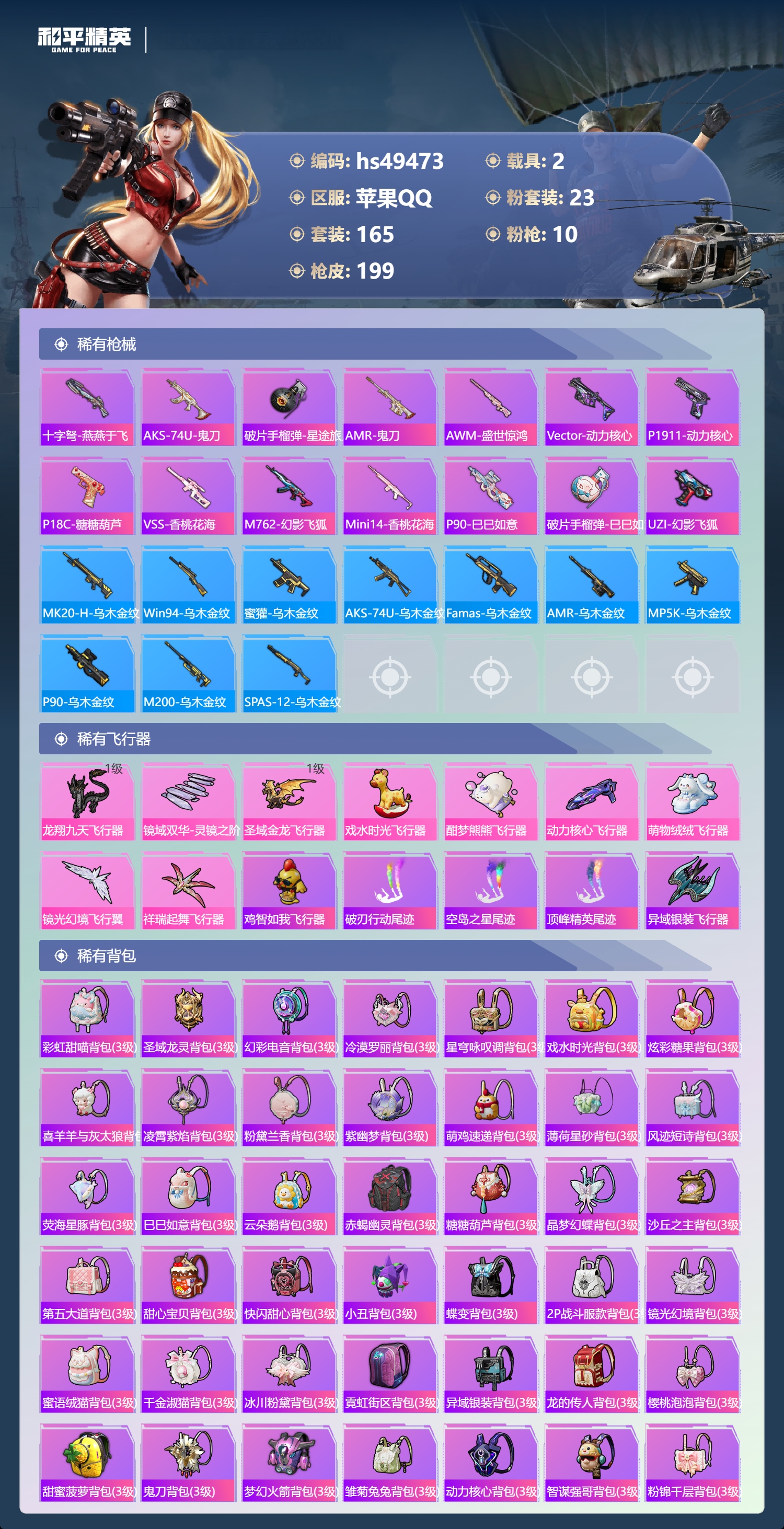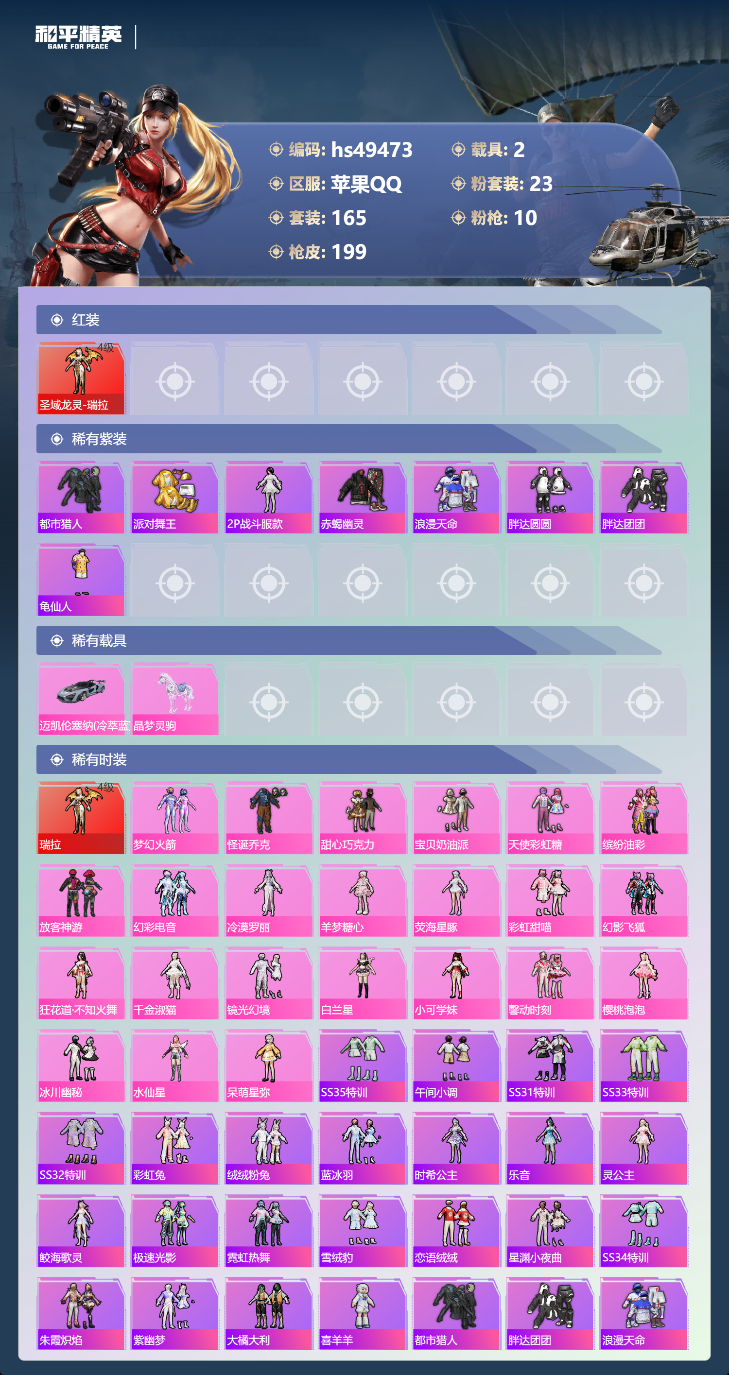hs49473 苹果手q-9王牌印记-1红装-23粉装-10特效呛-2载具-78121热力值-165套装-199呛皮-3卓越印记-1传奇印记【1红装】圣域龙灵-瑞拉/4级【23粉装】套装-缤纷油彩角色-冷漠罗丽套装-馨动时刻角色-小可学妹套装-彩虹甜喵角色-樱桃泡泡套装-怪诞乔克套装-甜心巧克力角色-羊梦糖心套装-梦幻火箭套装-镜光幻境角色-狂花道·不知火舞套装-宝贝奶
