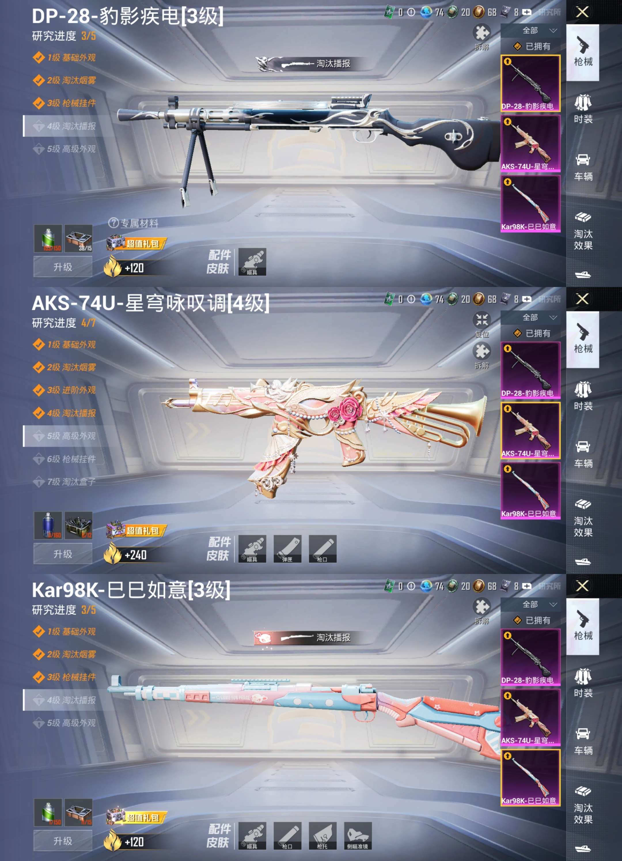 qy372 极品素材号1太阳3特效呛 地铁满天赋 aks-74u-星穹咏叹调 4级 【有24小时小黑屋打24小时海岛恢复正常】安卓q区-3特效呛-8642热力值-1王牌印记-36套装-30呛皮【特效呛等级】:kar98k-巳巳如意三级kar98k-巳巳如意 aks-74u-星穹咏叹调 (4级) dp-28-豹影疾电 (3级) 【优质武器皮肤】 kar98k-巳巳如意【稀有武器皮肤】: k