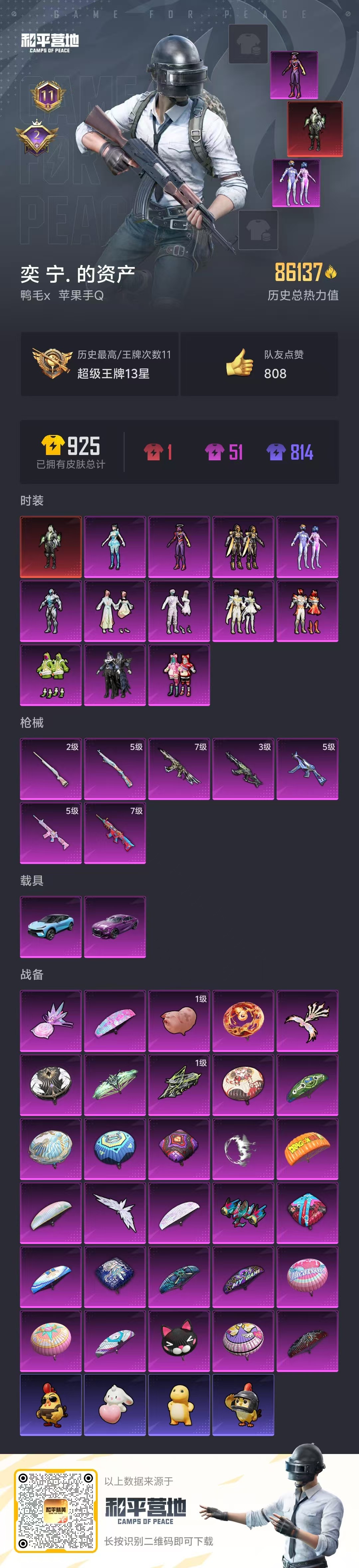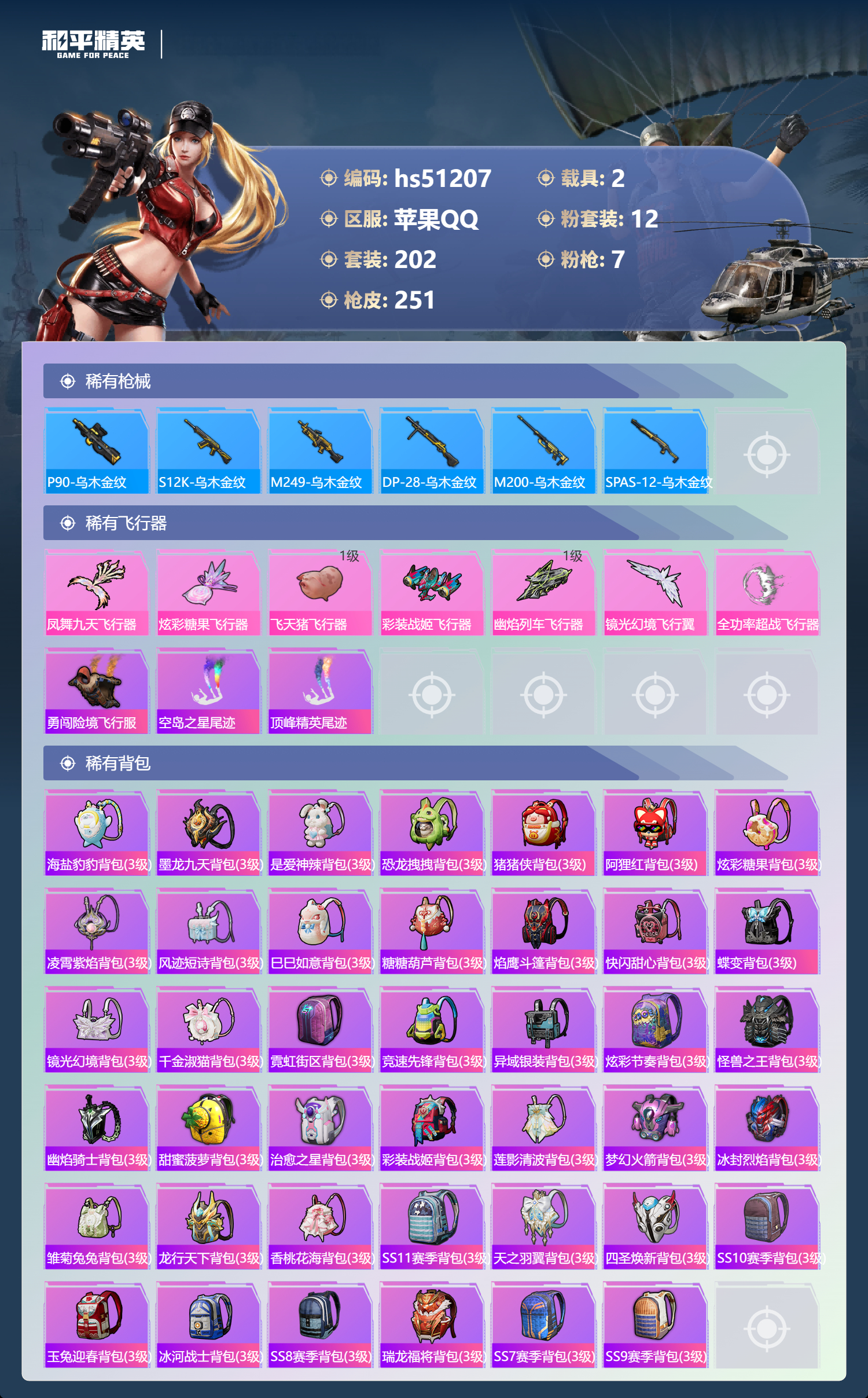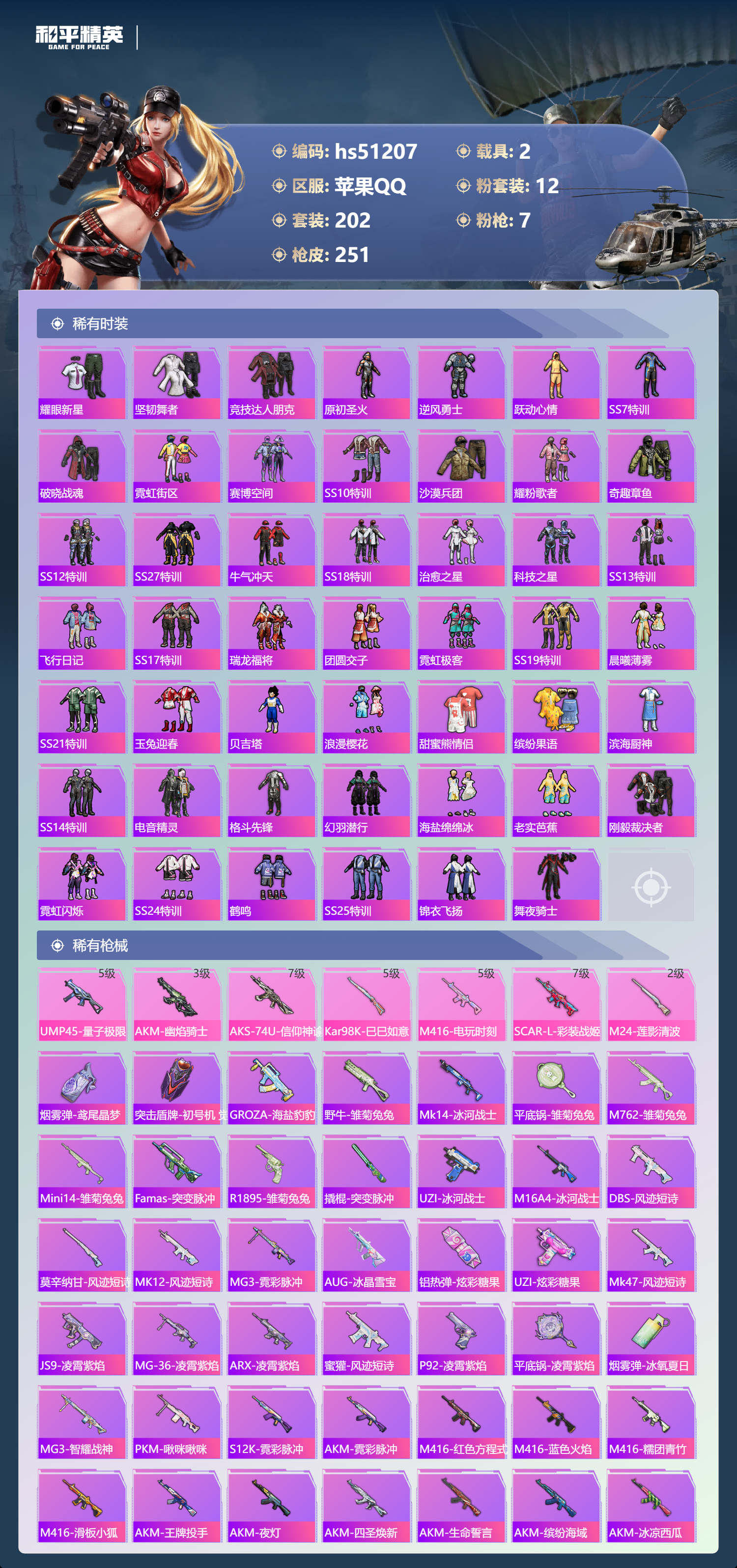 hs51207 苹果手q-11王牌印记-1红装-12粉装-7特效呛-2载具-86137热力值-202套装-251呛皮-2卓越印记【1红装】幽焰骑士-维塔/3级【12粉装】角色-冰炎战车角色-初号机 觉醒ver.套装-镜光幻境套装-莲影清波套装-恐龙拽拽角色-异瞳寒姬套装-暗翼战神套装-创世·救赎套装-梦幻火箭套装-霞光圣骑套装-圣光天使套装-俏皮狐尾【7特效呛】scar