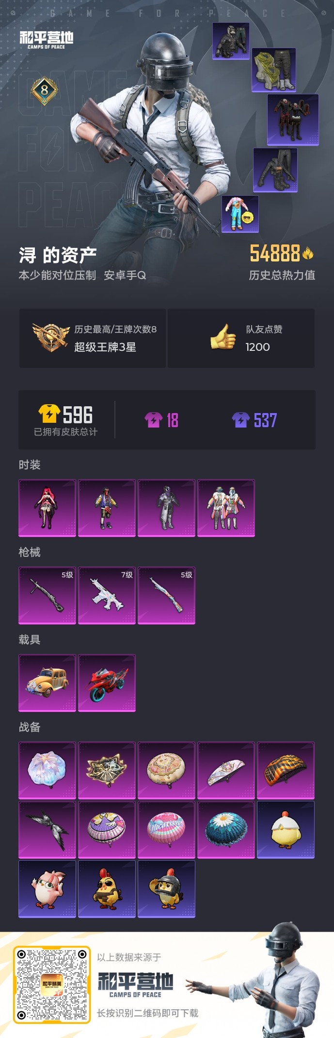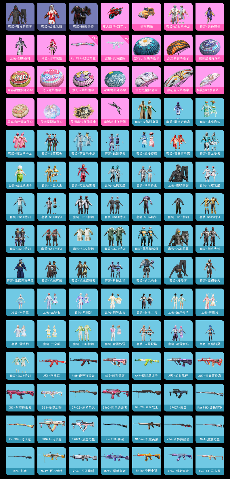 【和平精英】【txhp4328】4粉装,3特效呛,2载具,历史最高段位:超级王牌3星 王牌印记8次 热力值:54888,127套装,164呛械,200装备,82战备;套装:套装-幻影战神,套装-天禅智恒,套装-幻彩马卡龙,角色-绯穹魔姬,套装-特训学院,套装-猎鹰,套装-青年教官,套装-橘黑制服,套装-红色运动,套装-黄色运动,套装-蓝色运动,套装-黄色伏地魔,套装-白色伏地魔,套装-黑色伏地魔,套装-冰川格斗者,套装-竞技名士,套装-深蓝色名流,套装-湖蓝色名流,套装-黄色名流,套装-猛禽,套装-长空猛禽,套装-漫步者,套装-黎明保卫者,套装-海岛探路者,套装-旭日情侣,套装-冷焰舞者,套装-灰色格斗者,套装-龙腾端午,套装-鹰眼刺客,套装-冰冻风暴,套装-完美偶像,套装-人气偶像,套装-幻影武者,套装-神秘领域,套装-魅力单车,套装-绮丽涂鸦,套装-耀眼新星,套装-竞技达人朋克,套装-朋克治安官,套装-野性战魂,套装-狂沙舞者,套装-热血青春,套装-酷潮明星,套装-奇异狩猎者,套装-向日葵先生,套装-暗影哥特,套装-缤纷果语,套装-龙魂突击队,套装-冰川特警,套装-海上生明月,套装-麻辣教官,套装-机械英豪,套装-机械征服者,套装-金鼠迎春,套装-军械专家,套装-鹤鸣,套装-夏日音浪,套装-安第斯皇冠,套装-ag战队服,套装-粉甜马卡龙,套装-蓝甜马卡龙,套装-牛气满满,套装-白糯汤圆,套装-ss11特训,套装-怪笑疯兔,套装-青春冒险家,套装-潮流游乐家,套装-青龙圣者,套装-诡谋托雷基亚,套装-原初圣火,套装-逆风勇士,套装-初火先锋,套装-萌趣颜团子,套装-战术大师,套装-ss12特训,套装-牛气冲天,套装-ss18特训,套装-闪金天王,套装-镭射皇者,套装-银白舞王,套装-迅捷之星,套装-治愈之星,套装-科技之星,套装-飞行日记,套装-ss13特训,套装-冰爽海盐,套装-浪漫樱花,套装-ss14特训,套装-吉莉礼服,套装-ss15特训,套装-ss16特训,套装-暴风机械师,套装-时空追击者,套装-ss17特训,套装-福星高照,套装-ss19特训,套装-炫蓝之夏,套装-ss21特训,套装-玉兔迎春,套装-ss22特训,套装-光之冒险,套装-冰河战士,套装-恋语绒绒,角色-冰公主,套装-白辉玉蕊,套装-街头风暴,套装-蝶变,套装-星途旅人,套装-ss30特训,角色-夜瞳黯灵,套装-ss31特训,套装-鱼渊荷华,套装-燕燕于飞,套装-紫幽梦,套装-ss33特训,套装-云朵鹅,套装-ss32特训,套装-彩虹兔,套装-蓝冰羽,套装-雪绒豹,套装-大橘大利,套装-蜜露汐语,套装-ss34特训,套装-朱霞炽焰,套装-凌霄紫焰,套装-薄荷星砂,套装-ss35特训;呛皮:ac-val-天降萌叽,m762-牛气冲天,m762-镭射皇者,m762-彩虹符号,m762-云朵鹅,aug-幻影战神,aug-耀粉歌者,aug-青春冒险家,aug-异域银装,aug-冰晶雪宝,mk47-青春冒险家,mk47-乌木金纹,g36c-时空追击者,g36c-乌木金纹,scar-l-黄金龙骨,scar-l-夜灯,scar-l-炫彩节奏,scar-l-玉兔迎春,scar-l-星途旅人,scar-l-乌木金纹,arx-凌霄紫焰,m16a4-机械英豪,m16a4-幻世战舞者,m16a4-千金淑猫,groza-影袭,groza-生命誓言,groza-马卡龙,groza-治愈之星,groza-彩虹符号,groza-荧海星豚,q-原初圣火,q-赛罗,q-彩虹符号,akm-灼热熔岩,akm-奇异狩猎者,akm-破晓战魂,akm-夜灯,akm-阿狸红,akm-萌趣颜团子,akm-极光猎影,m416-蓝色火焰,m416-红色方程式,m416-滑板小狐,m416-乌木金纹,7级蜜獾-荧海星豚,蜜獾-天降萌叽,蜜獾-乌木金纹,famas-乌木金纹,5级kar98k-巳巳如意,kar98k-王子的夏天,kar98k-影袭,kar98k-终极赛罗,kar98k-马卡龙,kar98k-彩虹符号,kar98k-炫彩节奏,kar98k-乌木金纹,svd-云朵鹅,m24-影袭,m24-奇异狩猎者,m24-治愈之星,m24-乌木金纹,m200-次元竞界,m200-乌木金纹,win94-夏日绵绵冰,win94-机械英豪,win94-乌木金纹,awm-乌木金纹,mini14-原初圣火,mini14-马卡龙,mini14-旋转彩虹,mini14-香桃花海,mini14-绯穹魔姬,qbu-青春冒险家,mk20-h-星途旅人,mk20-h-乌木金纹,mk14-治愈之星,mk14-冰河战士,mk14-紫幽梦,sks-心之恋语,sks-炫彩节奏,sks-时空追击者,vss-繁花小夜曲,vss-镭射皇者,vss-星之彼岸,vss-香桃花海,vss-乌木金纹,ump45-蓝色火焰,ump45-生命誓言,ump45-电音之王,ump45-粉色回忆,ump45-时空追击者,ump45-乌木金纹,汤姆逊-耀粉歌者,汤姆逊-乌木金纹,uzi-红色方程式,uzi-影袭,uzi-逆行者qq,uzi-炫彩节奏,uzi-天降萌叽,uzi-冰河战士,野牛-机械英豪,野牛-青春冒险家,野牛-燕燕于飞,野牛-乌木金纹,vect-生命誓言,vect-夜灯,vect-彩虹符号,vect-治愈之星,vect-燕燕于飞,aks-74u-乌木金纹,js9-凌霄紫焰,s1897-镭射皇者,s1897-炫彩节奏,s1897-精灵梦叶罗丽,s1897-紫幽梦,s1897-糯团青竹,s1897-荧海星豚,s1897-乌木金纹,spas-12-燕燕于飞,spas-12-云朵鹅,spas-12-乌木金纹,s12k-机械英豪,dbs-时空追击者,dbs-彩虹符号,dbs-圣堂之誓,dbs-荧海星豚,s686-生命誓言,5级dp-28-豹影疾电,dp-28-未来战士,dp-28-原初圣火,dp-28-乌木金纹,mg3-幻世战舞者,mg3-乌木金纹,mg3-霓彩脉冲,m249-百万伏特,m249-破晓战魂,m249-四圣焕新,m249-镭射皇者,m249-乌木金纹,mg-36-凌霄紫焰,pkm-啾咪啾咪,pkm-紫幽梦,p92-紫幽梦,p92-凌霄紫焰,p18c-百万伏特,p18c-原初圣火,沙墨之鹦-云朵鹅,蝎式手呛-燕燕于飞,平底锅-机械英豪,平底锅-原初圣火,平底锅-镭射皇者,平底锅-荧光虫舞,平底锅-治愈之星,平底锅-青春冒险家,平底锅-时空追击者,平底锅-光之冒险,平底锅-紫幽梦,平底锅-凌霄紫焰,大砍刀-云朵鹅,十子怒-燕燕于飞,十子怒-异域银装,破片手留单-萌趣颜团子,盐雾蛋-冰氧夏日,爆炸猎弓-虚空骇客;载具:萌喵橘座,双人摩托-双刃魅影红;降落伞:暗翼战神飞行器,粉色滑翔尾迹,红色滑翔尾迹,异域银装飞行器,顶峰精英尾迹; 详情看