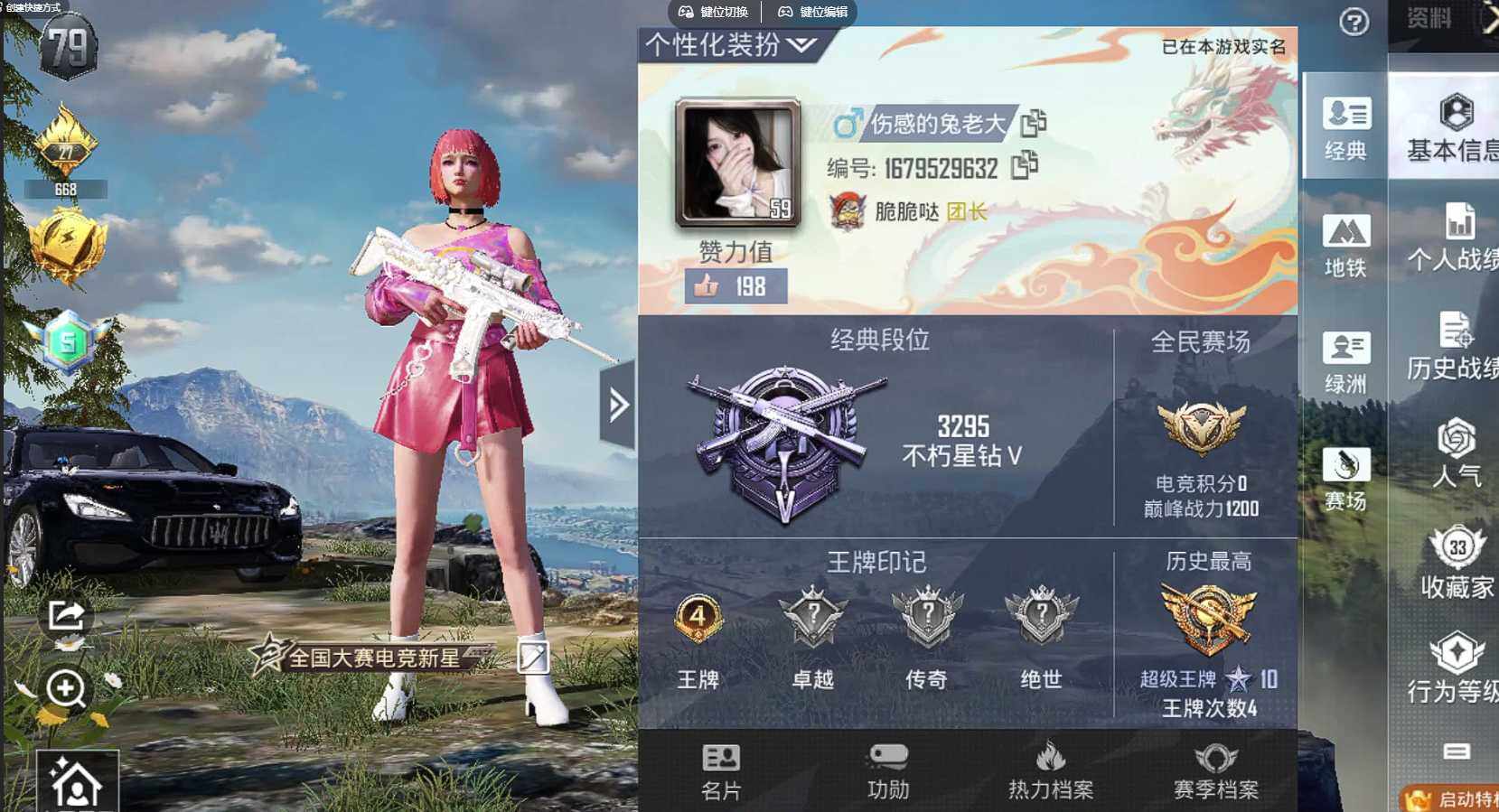 苹果 微信-1粉装-1特效呛-1载具-0粉色飞行器-21347热力值-4王牌印记-48套装-74呛皮 【热门品类】:套装-龟仙人 【粉色载具】:玛莎拉蒂quattropte(夜幕蓝) 【粉色套装】:粉装-飒粉甜心 【粉色呛皮等级】:scar-l-纯梦嫁纱五级 【粉色呛皮】:scar-l-纯梦嫁纱 【粉色降落伞】:伏魔团降落伞,荒漠赏金降落伞,环太平洋降落伞,暗夜鎏金降落伞 【稀有套装】