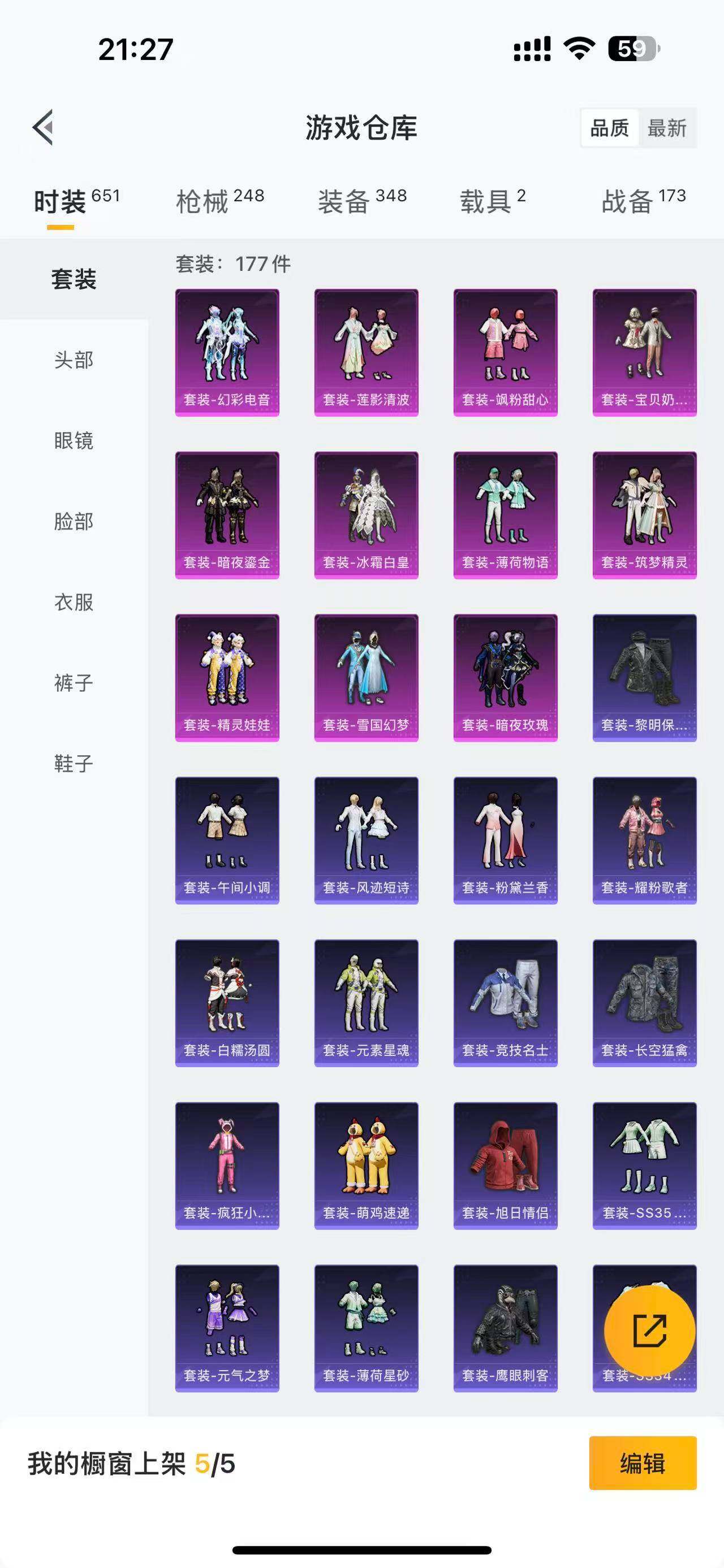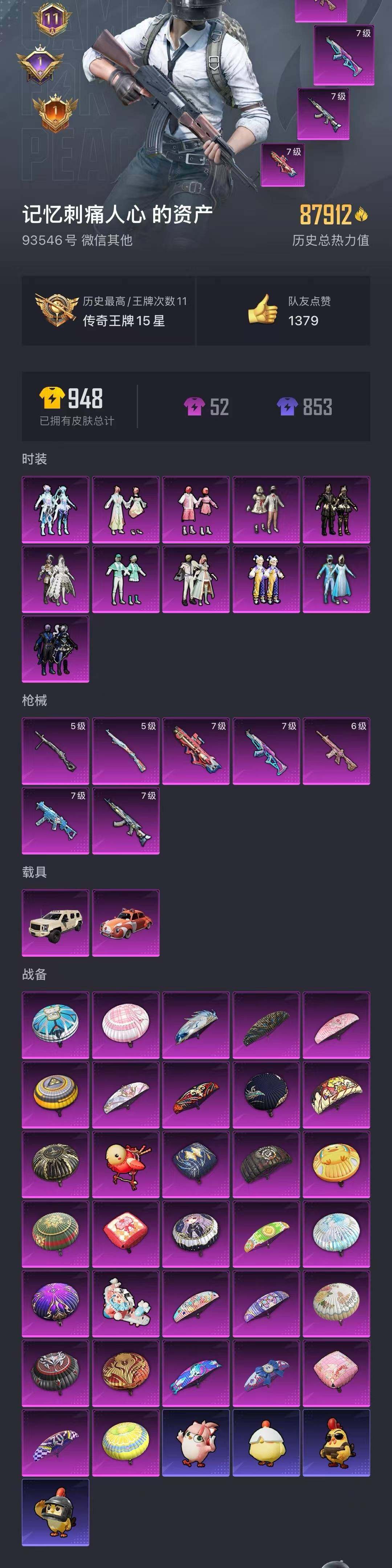 安卓 微信-11粉装-7特效呛-2载具-2粉色飞行器-87912热力值-11王牌印记-177套装-248呛皮 【热门品类】:粉装-雪国幻梦,套装-浪漫天命,套装-深海小丑鱼,套装-龟仙人,套装-暗影哥特 【粉色载具】:乔治巴顿战车(乳石白),俏皮小熊猫 【粉色套装】:粉装-宝贝奶油派,粉装-雪国幻梦,粉装-冰霜白皇,粉装-暗夜玫瑰,粉装-精灵娃娃,粉装-薄荷物语,粉装-筑梦精灵,粉装-暗夜鎏金